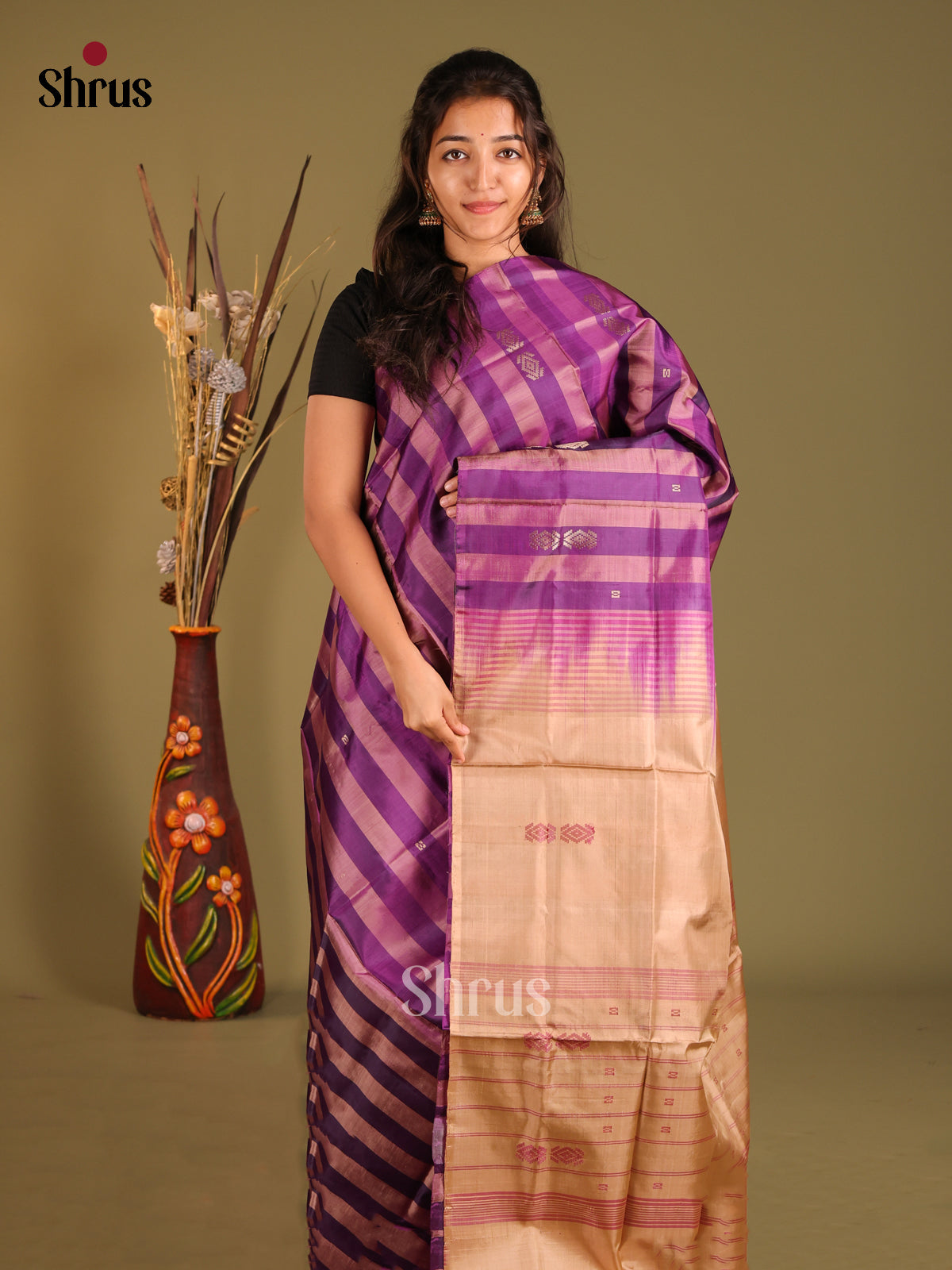 Dusty Brown & Purple - Banana Pith without blouse Saree