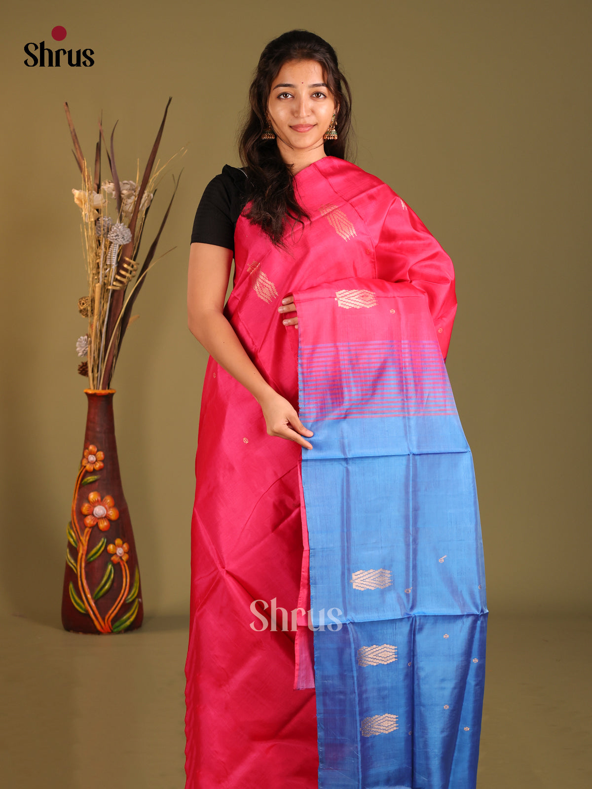 Reddish pInk & Elachi Green - Banana Pith Saree