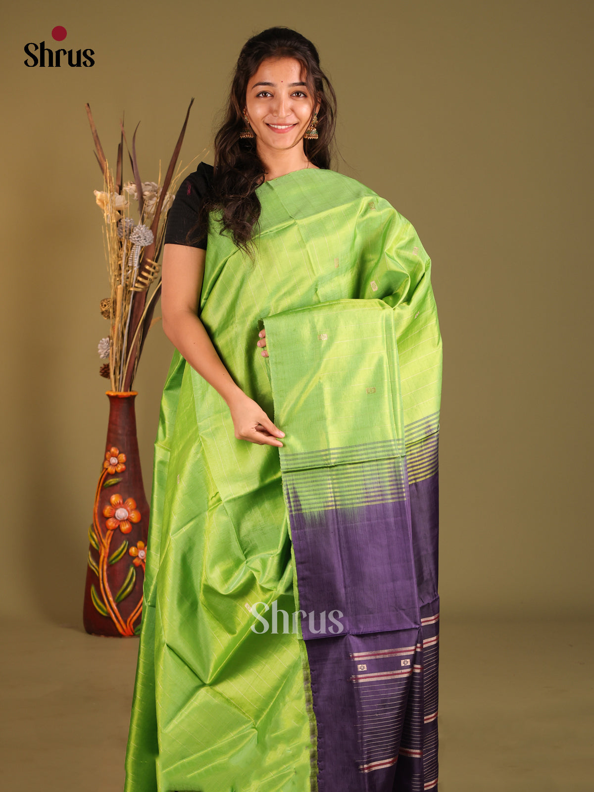 Dark Mustard & Purple- Banana Pith without blouse Saree