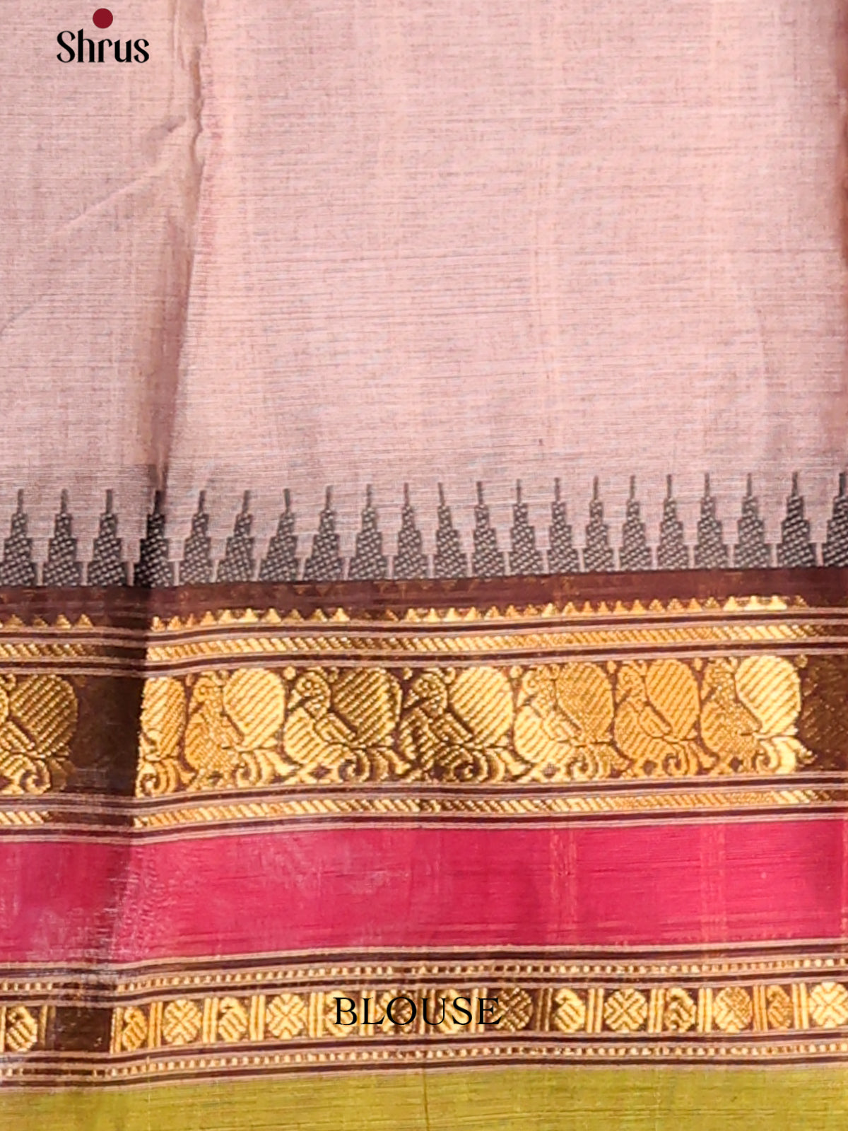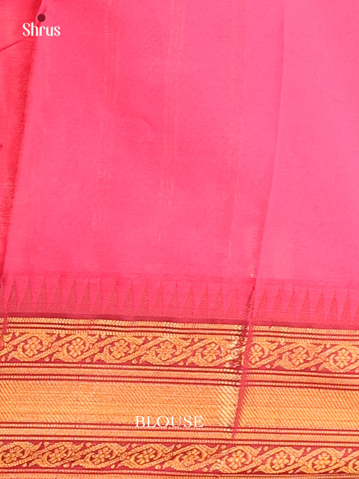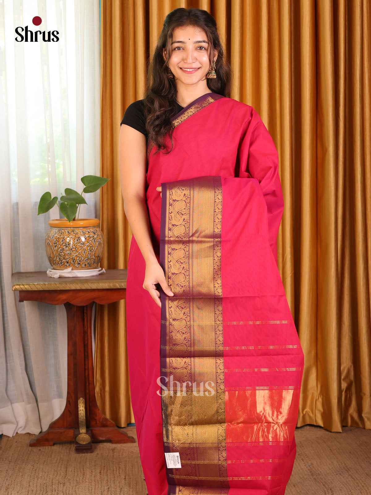 Pink With Green & Maroon - Chettinad Cotton Saree