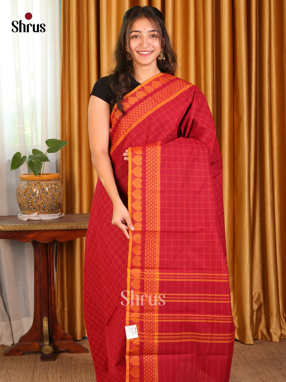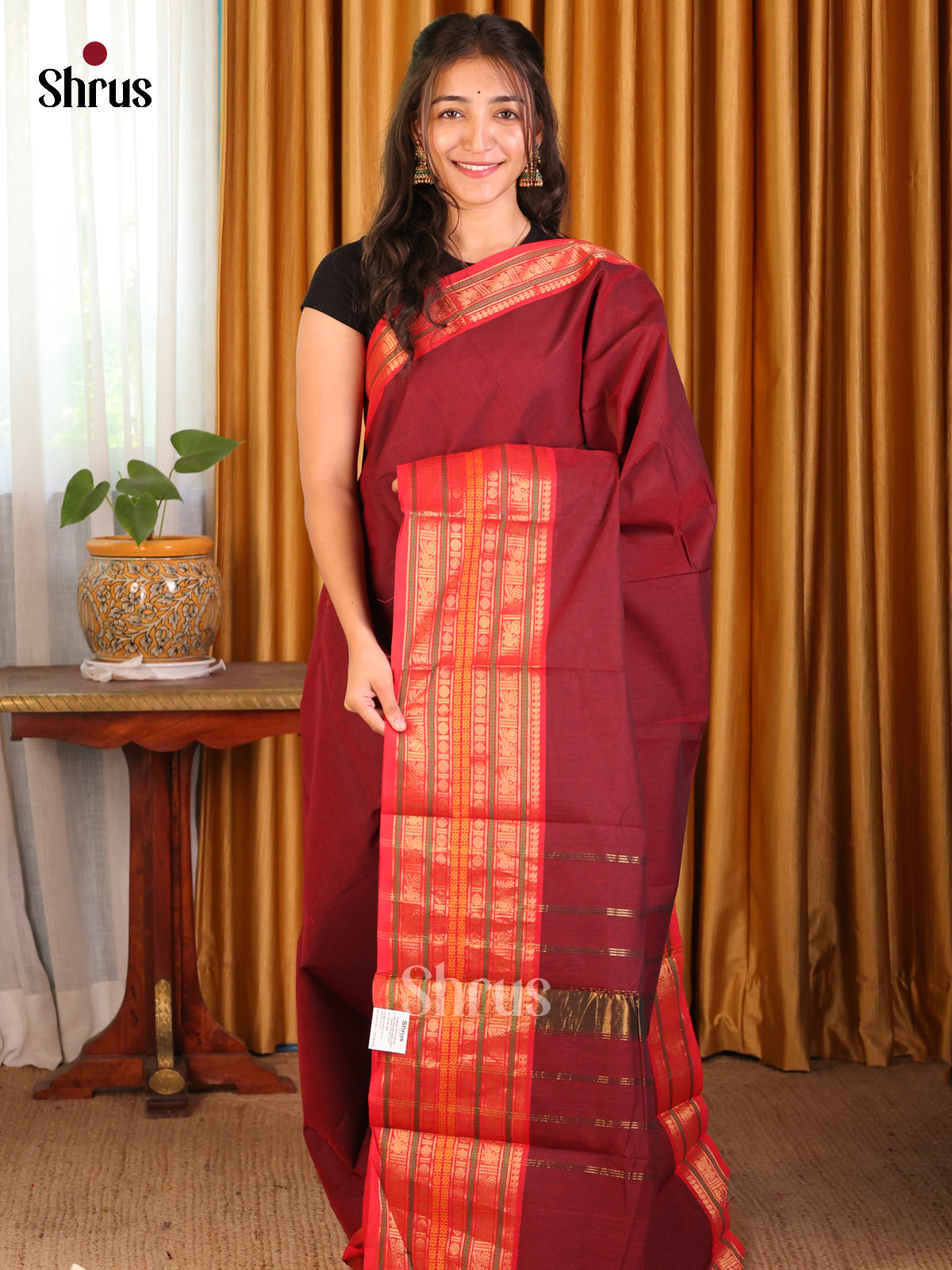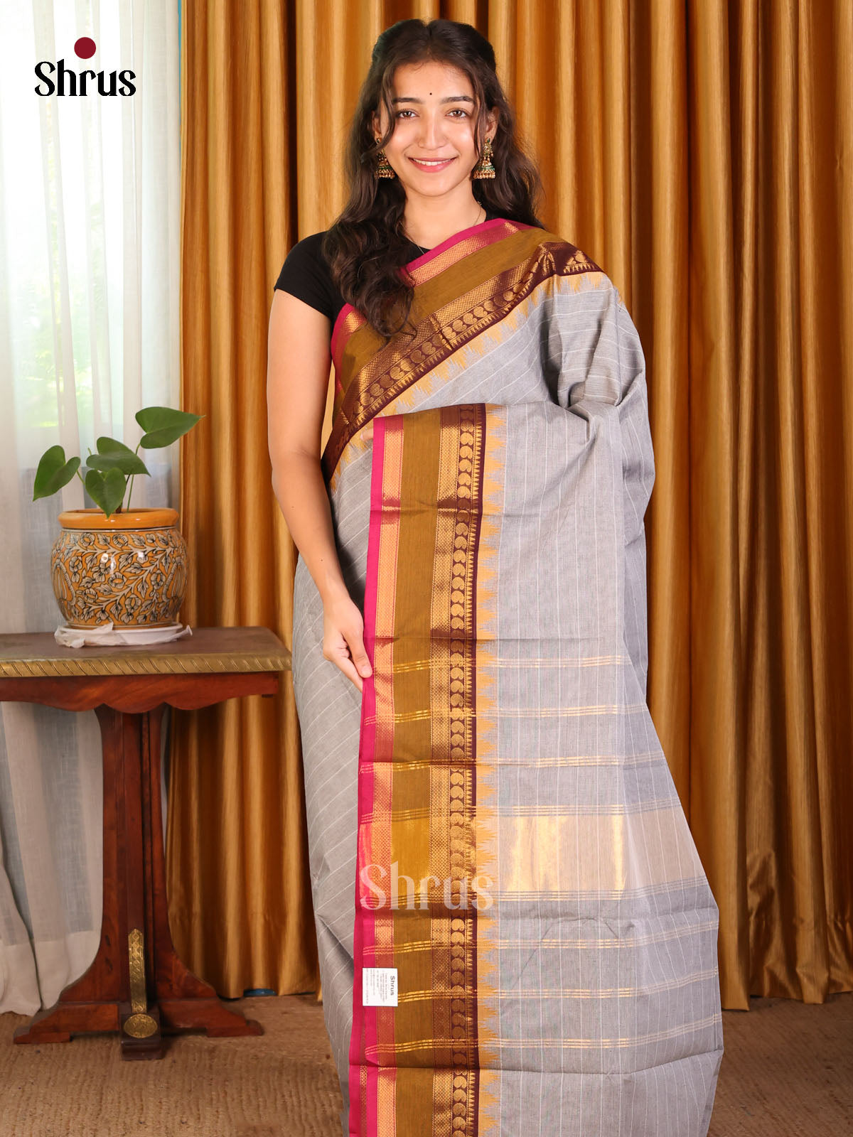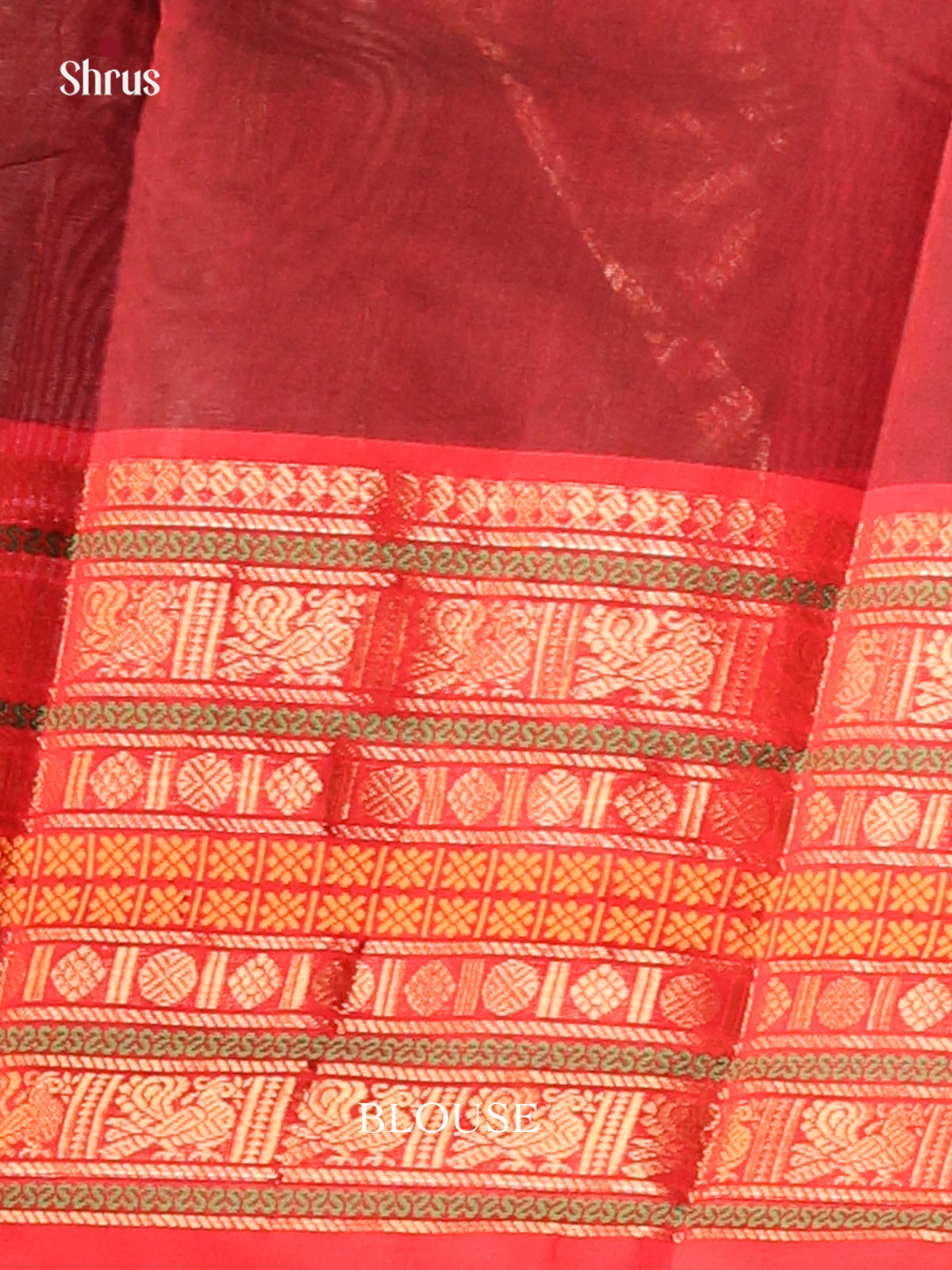 Pink With Green & Maroon - Chettinad Cotton Saree
