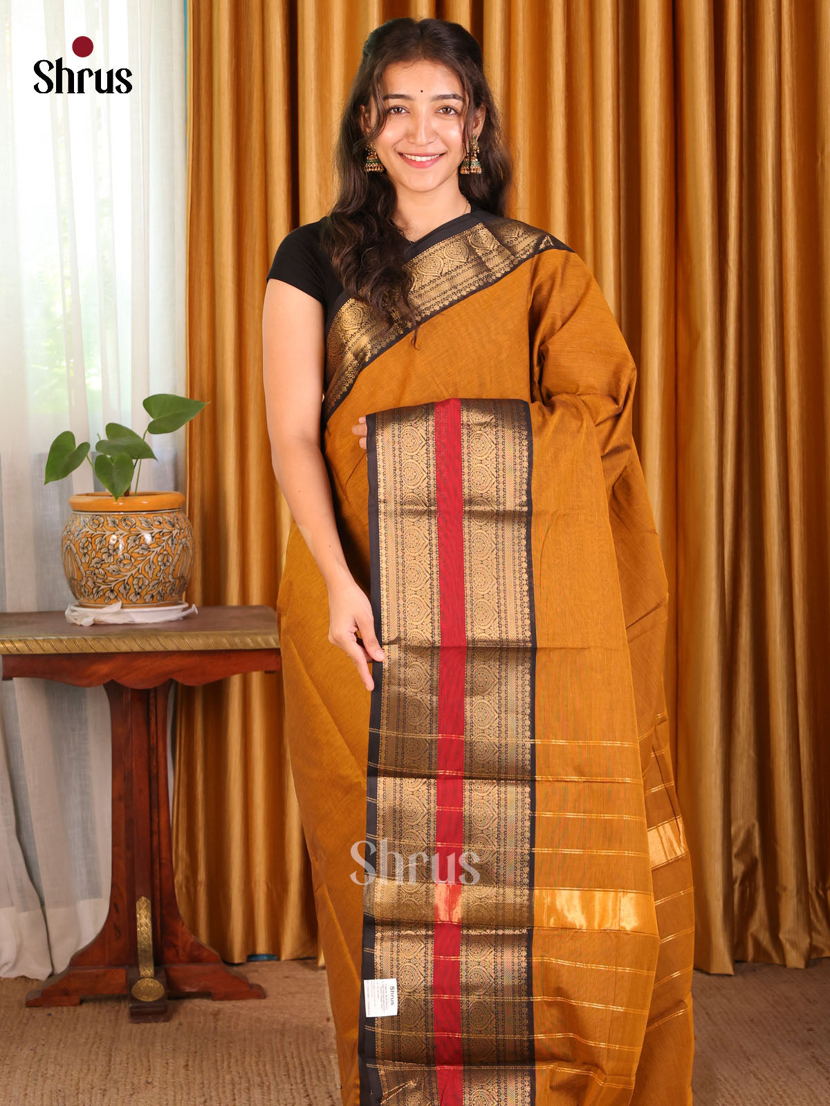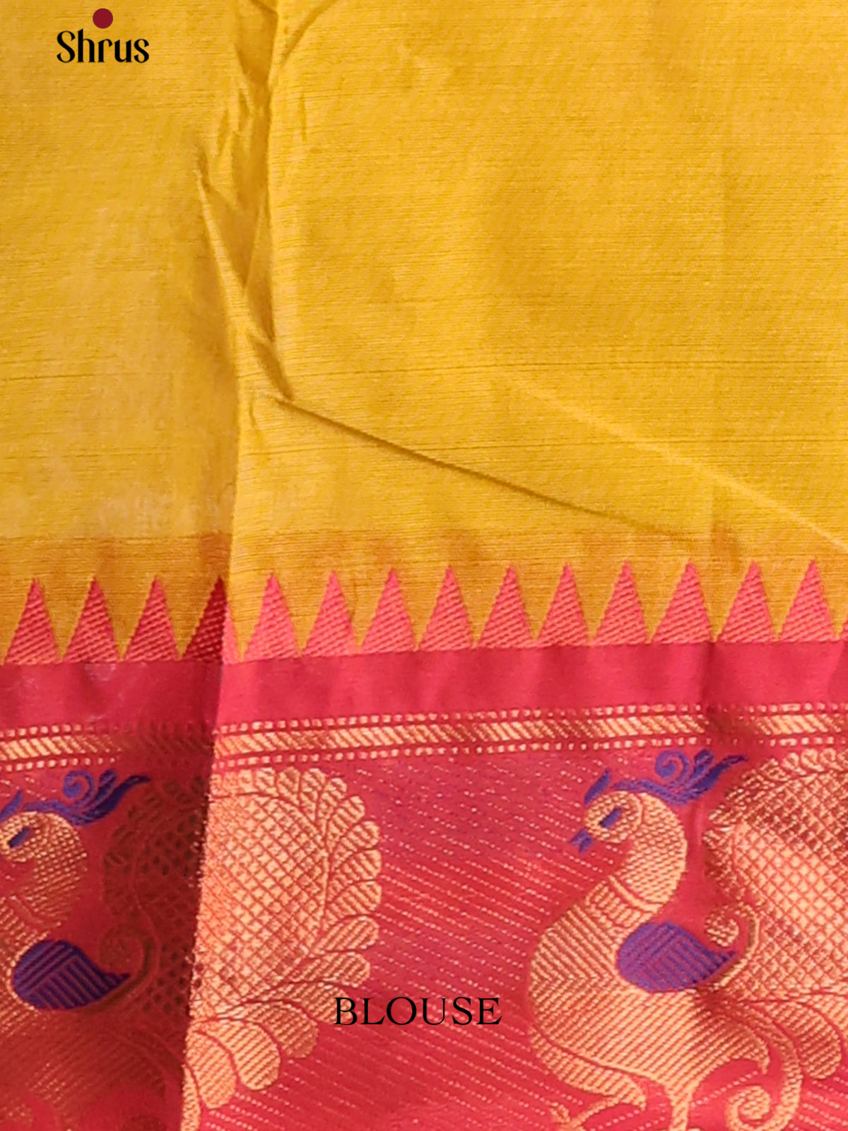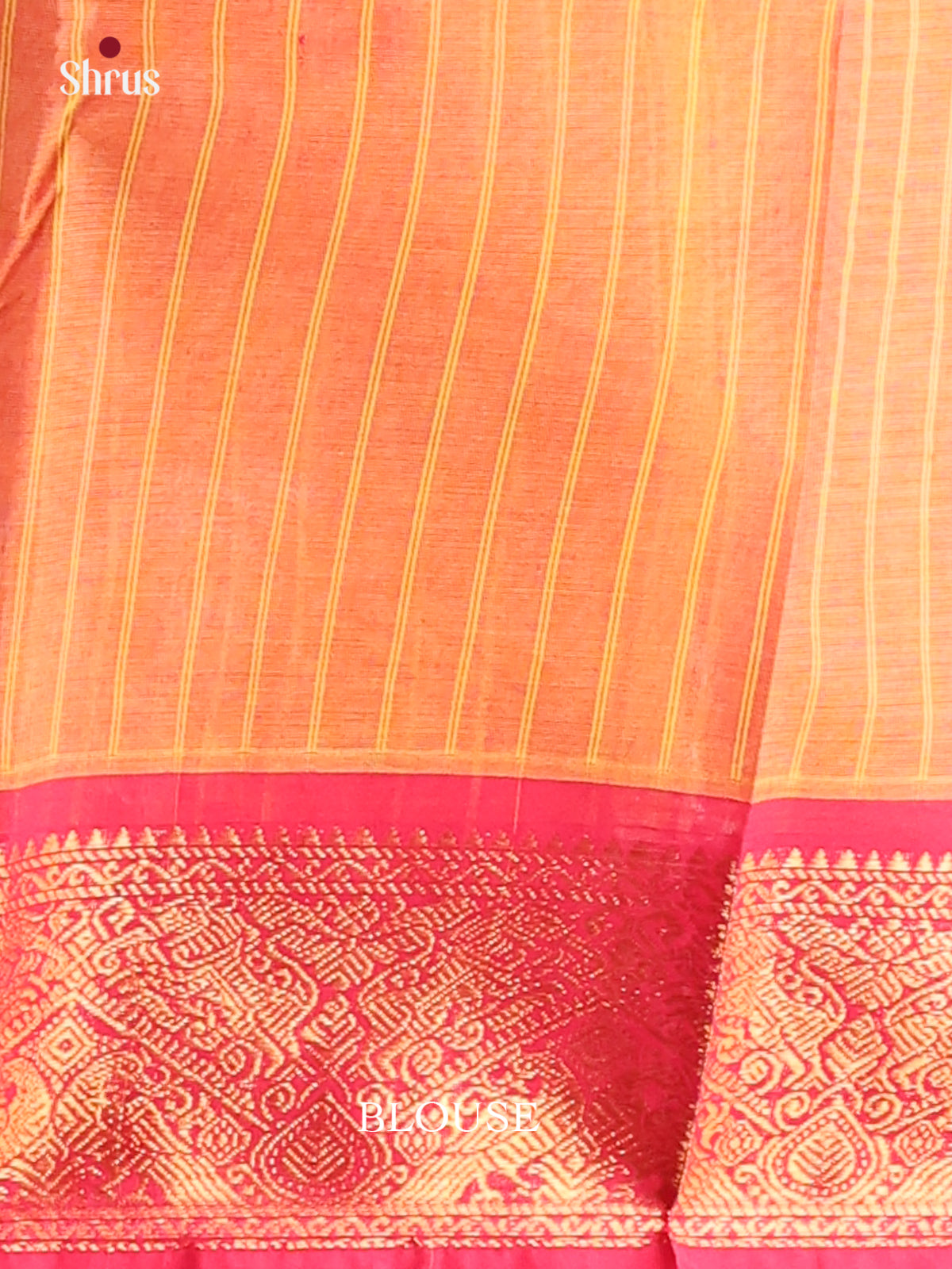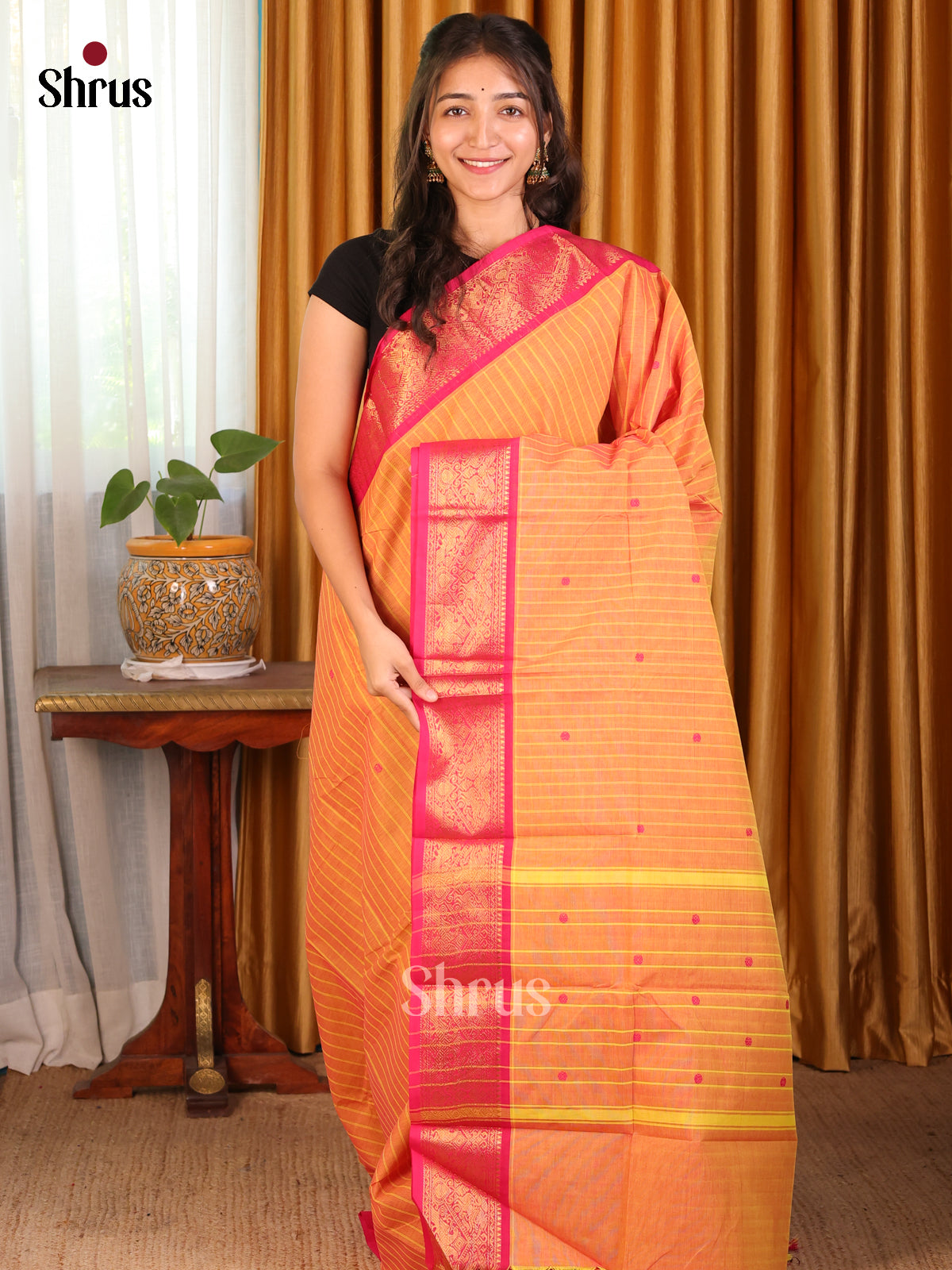 Dual Tone Mustard with pink & violet border - Chettinad Cotton Saree - DDS09319