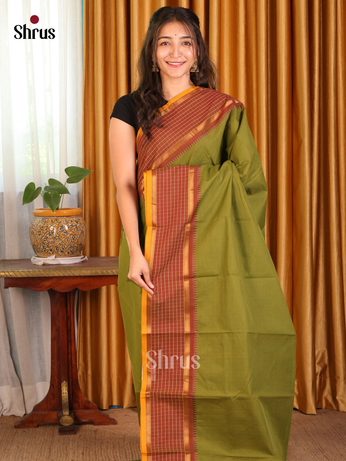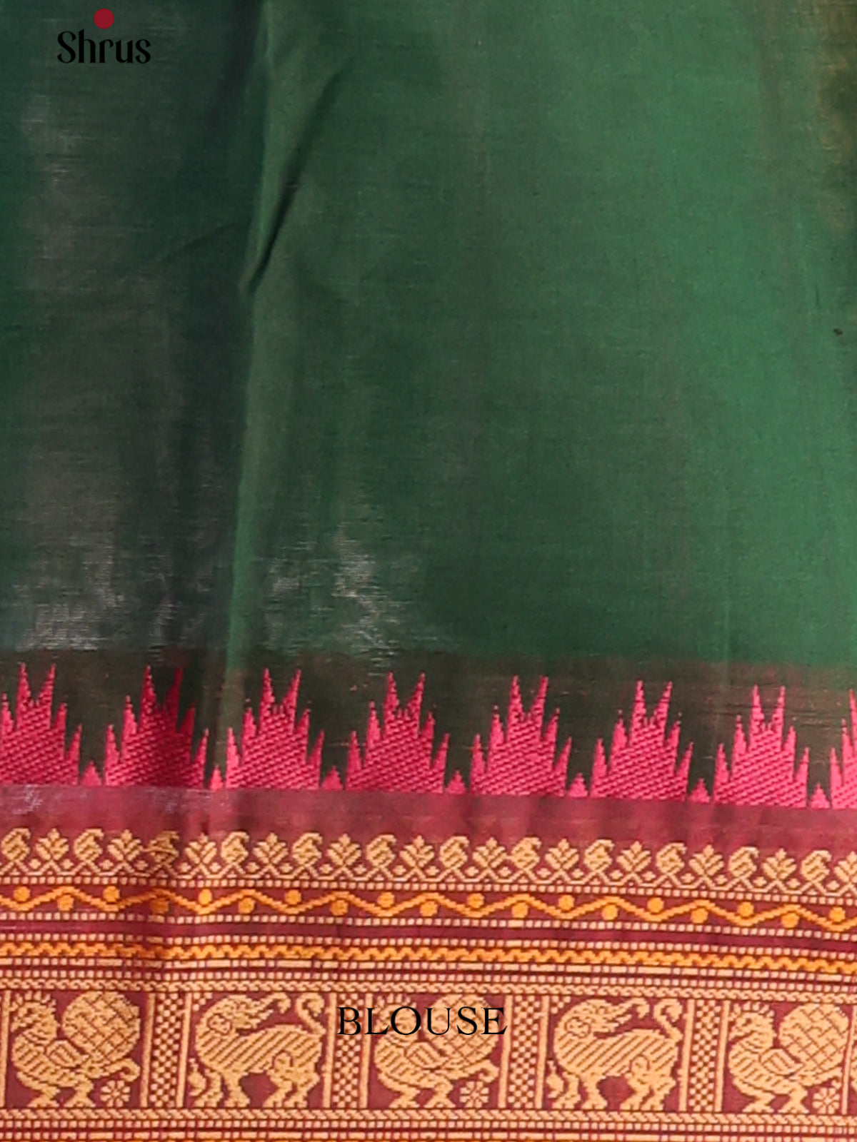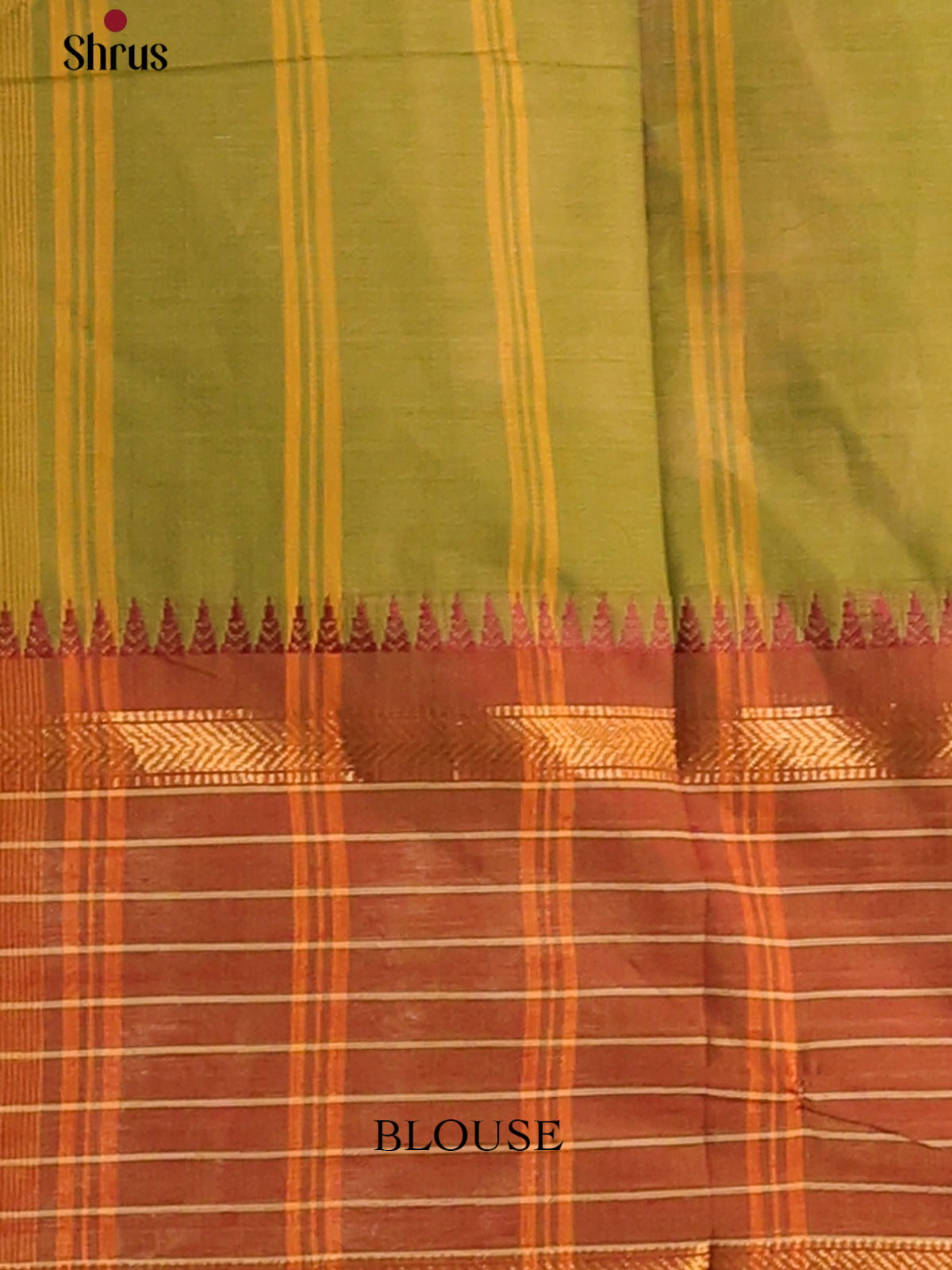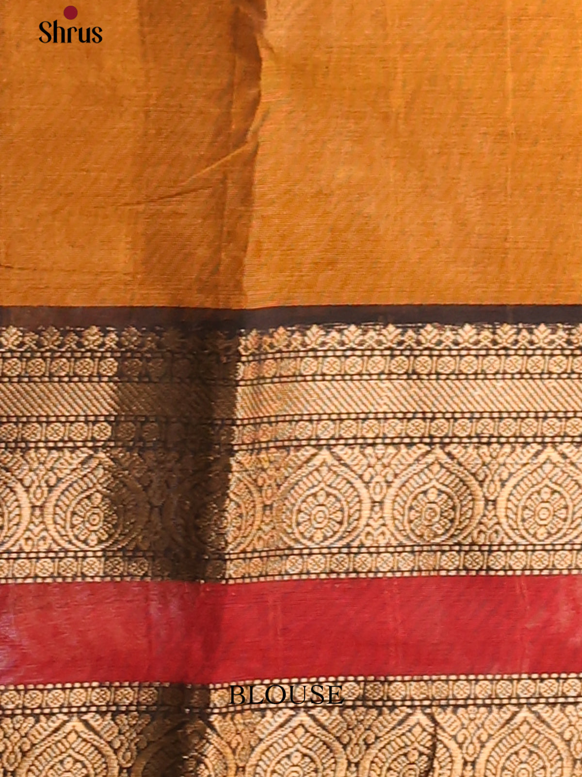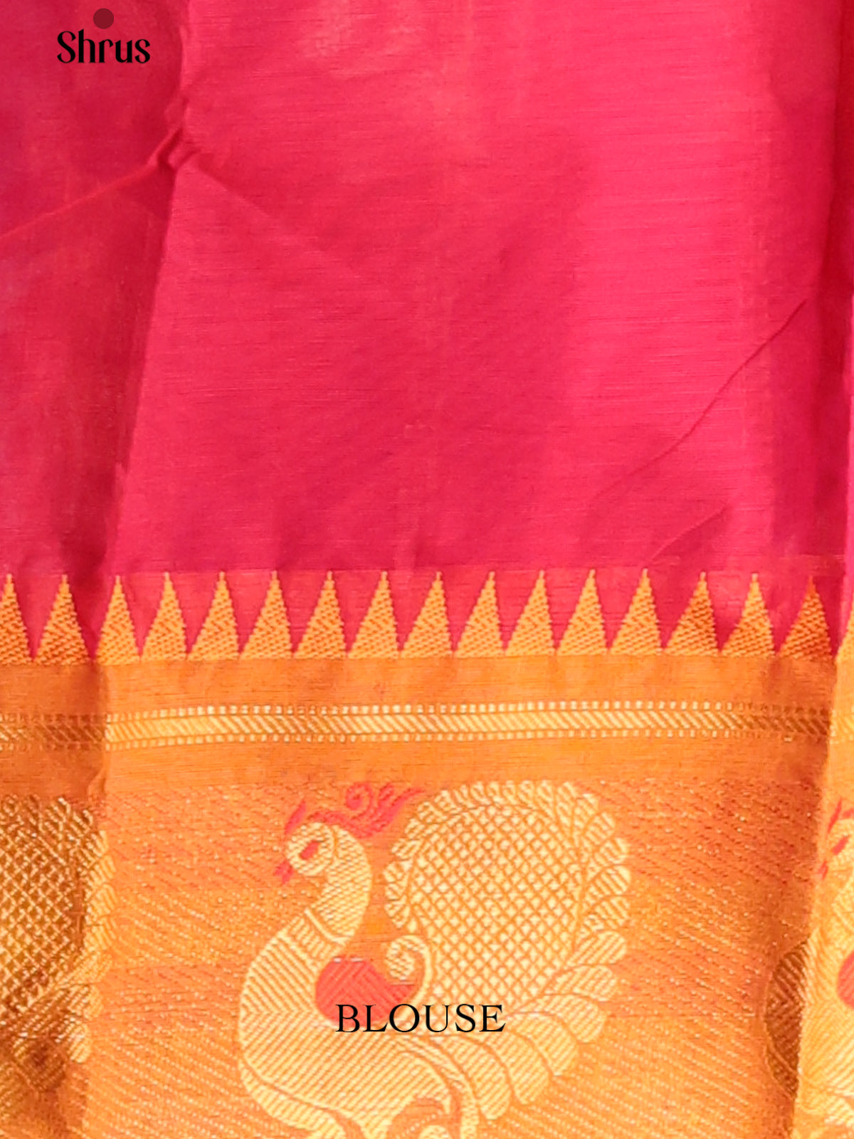 Dual Tone Mustard with pink & violet border - Chettinad Cotton Saree - DDS09319