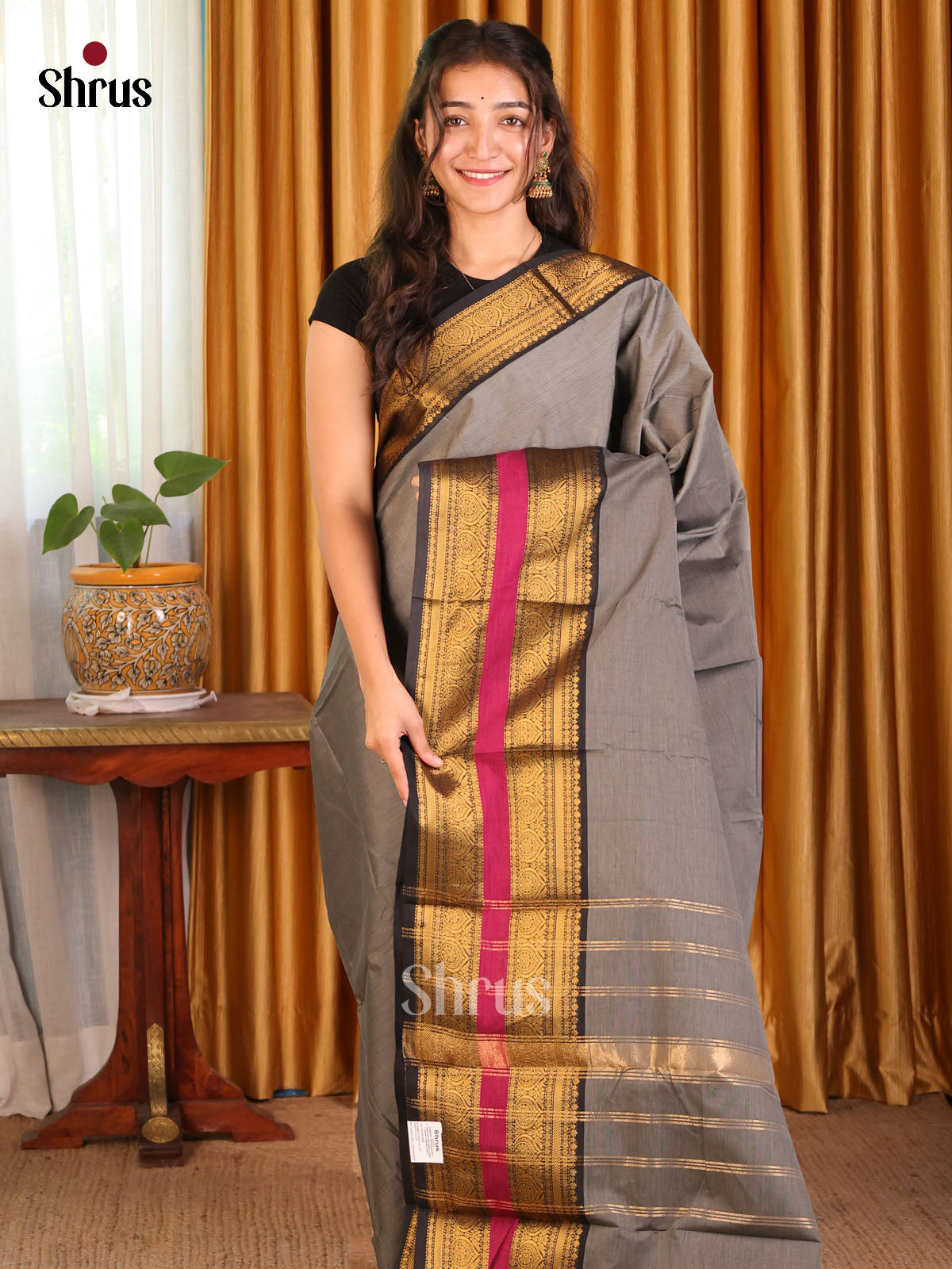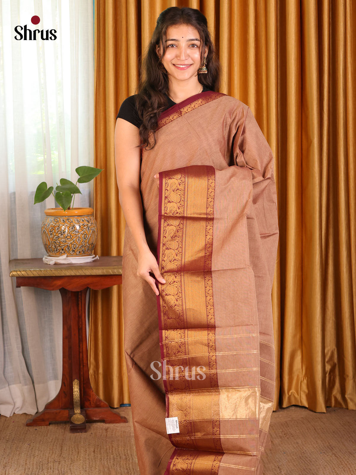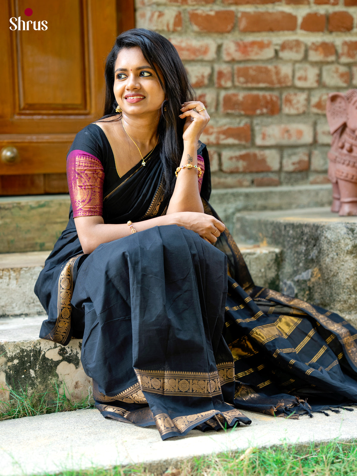 Maroon with Black - Chettinad Cotton Saree - DDS09340