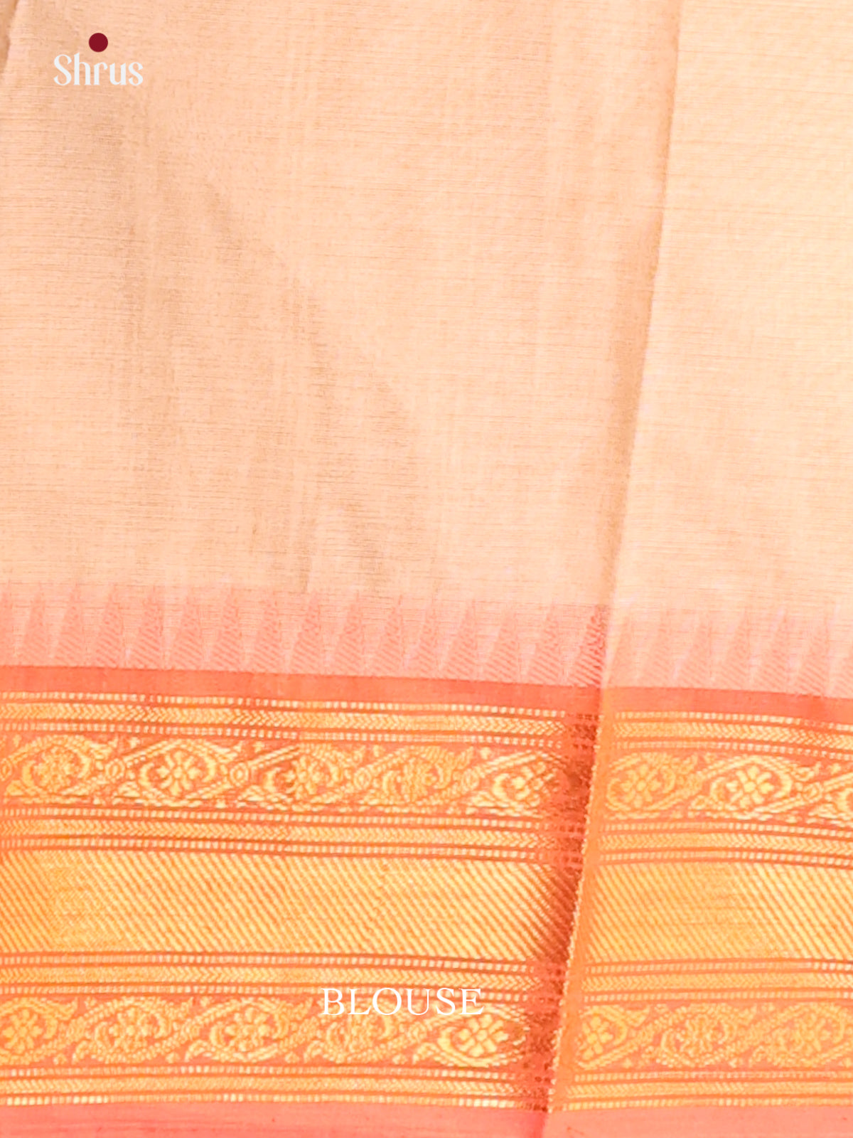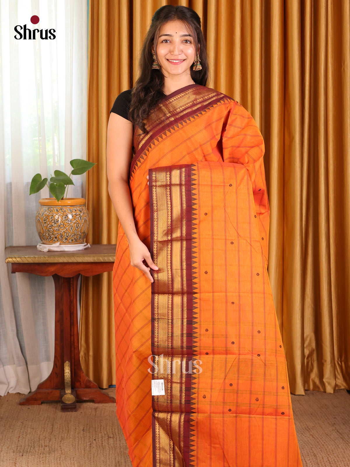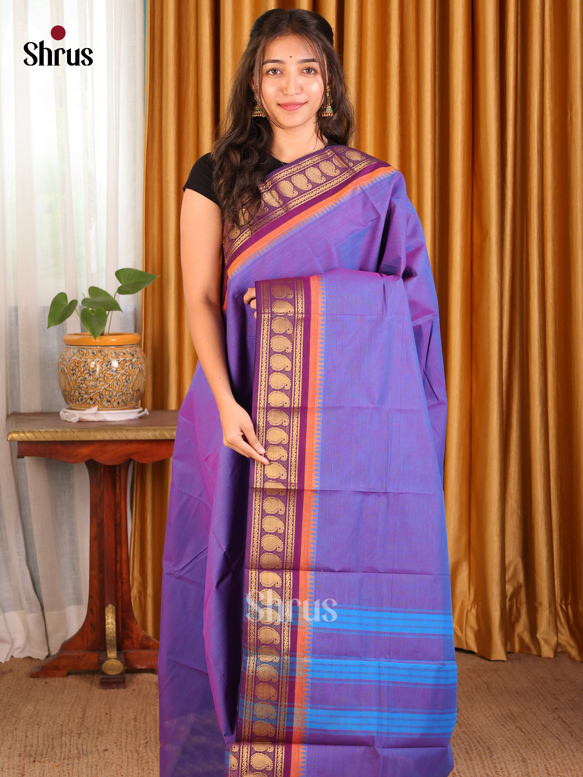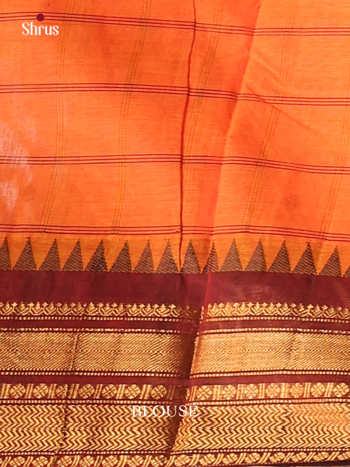 Dual Tone Orange with Pink & Violet Border - Chettinad Cotton Saree - DDS09342