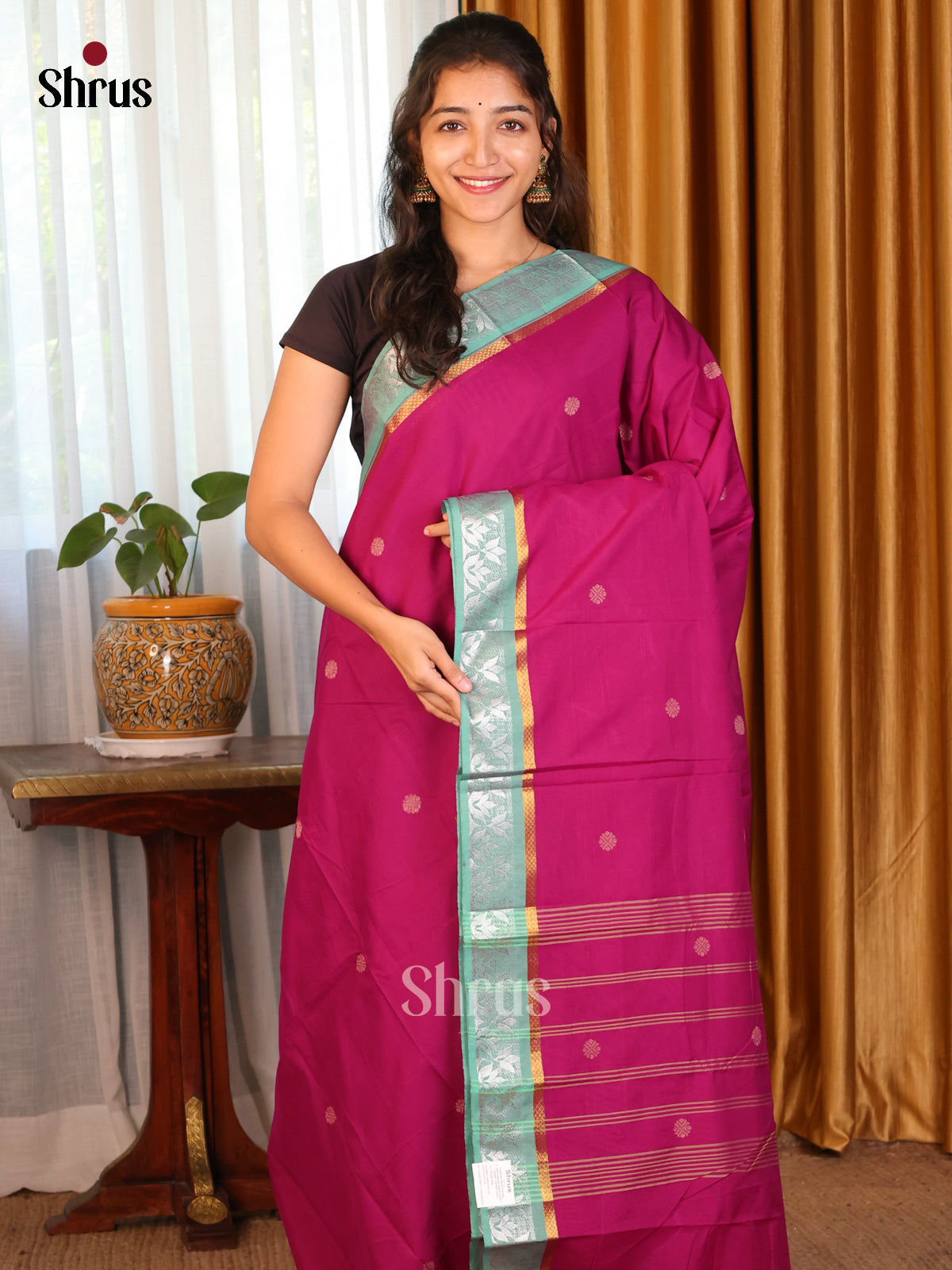 Majenta & Green - Chettinad Mix Cotton-Without Blouse Saree