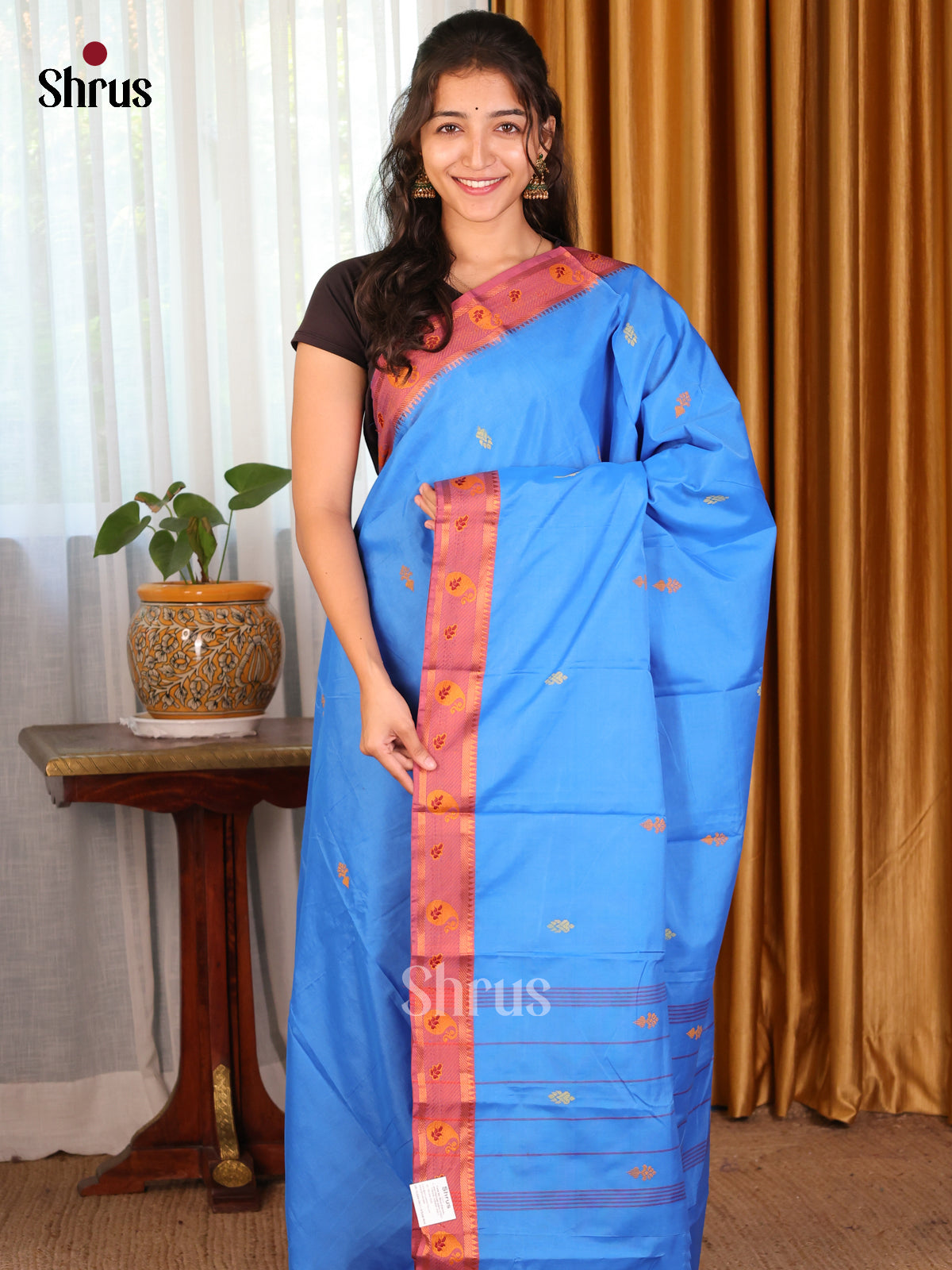 Blue & Pink - Chettinad Mix Cotton-Without Blouse Saree