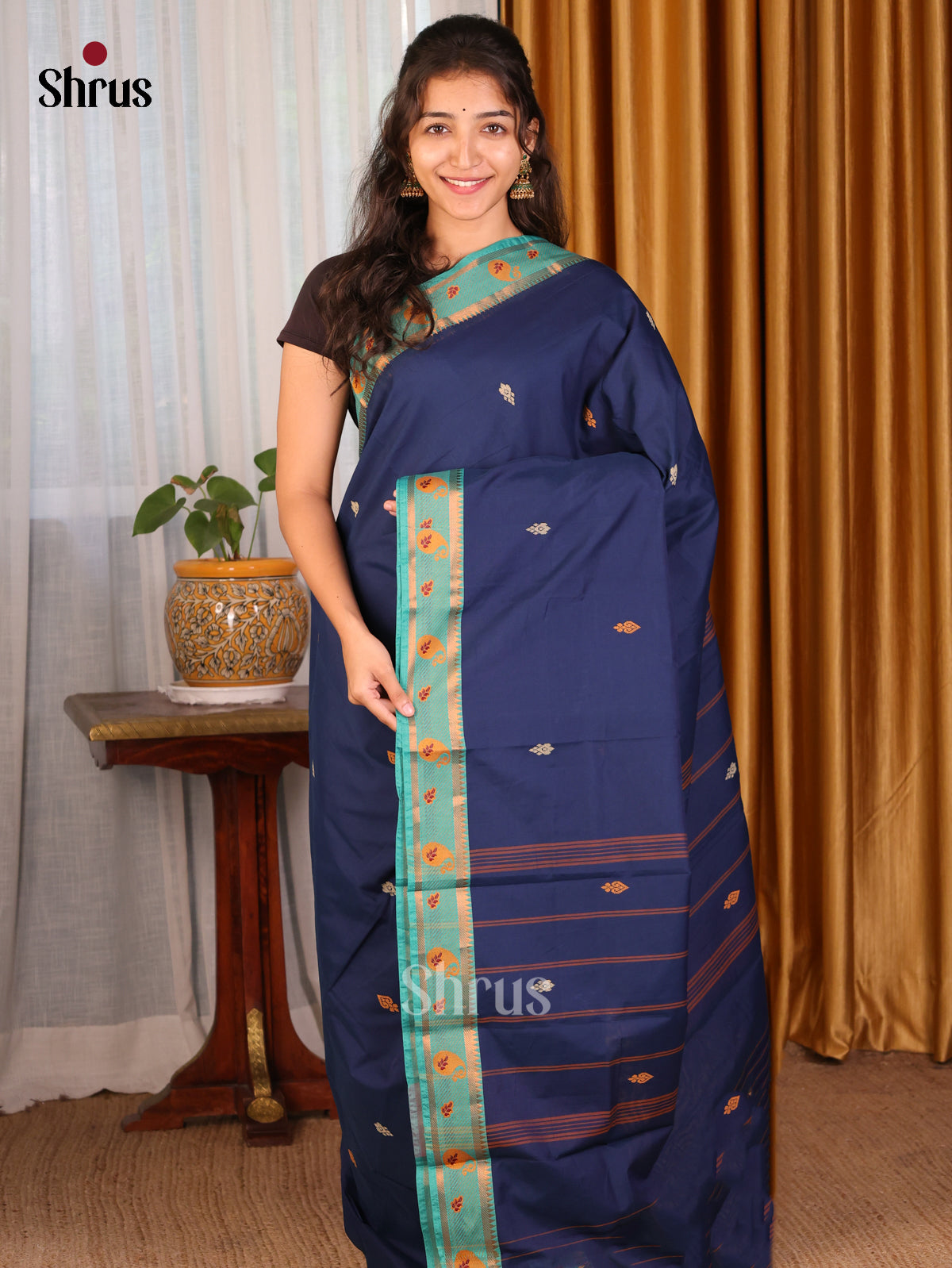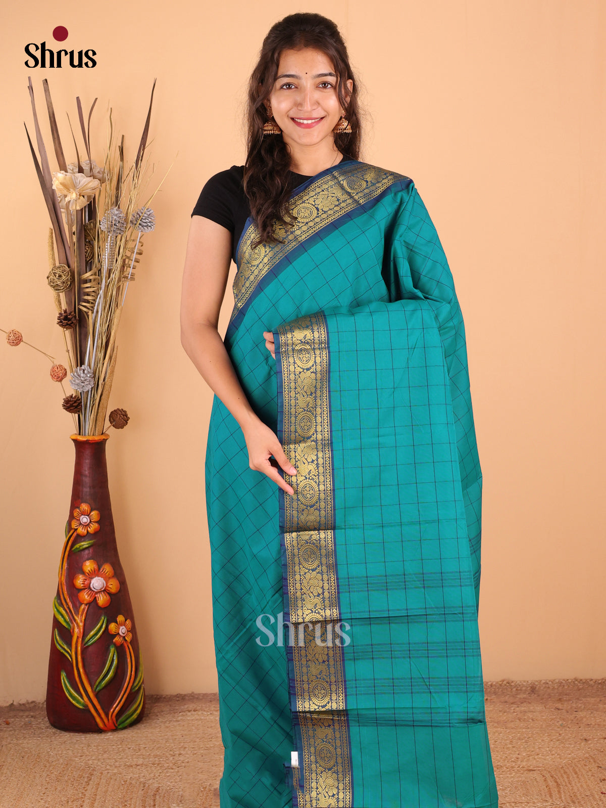 Teal - Chettinad Mix Cotton-Without Blouse Saree