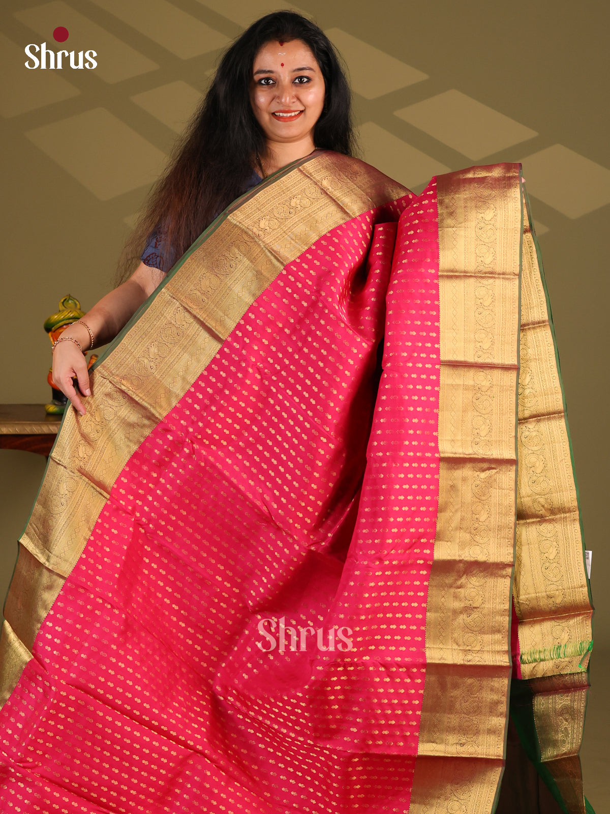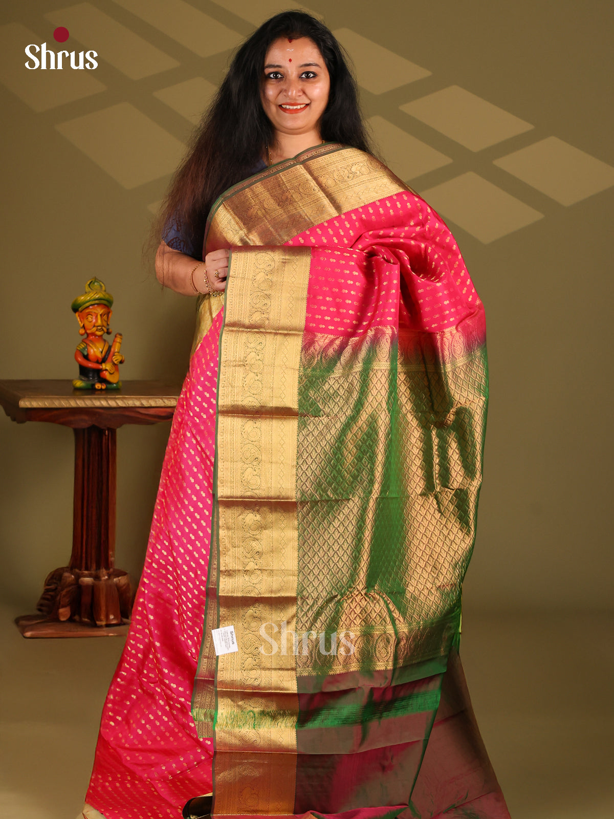 Pink & Dark Green - Kanchipuram-halfpure Saree