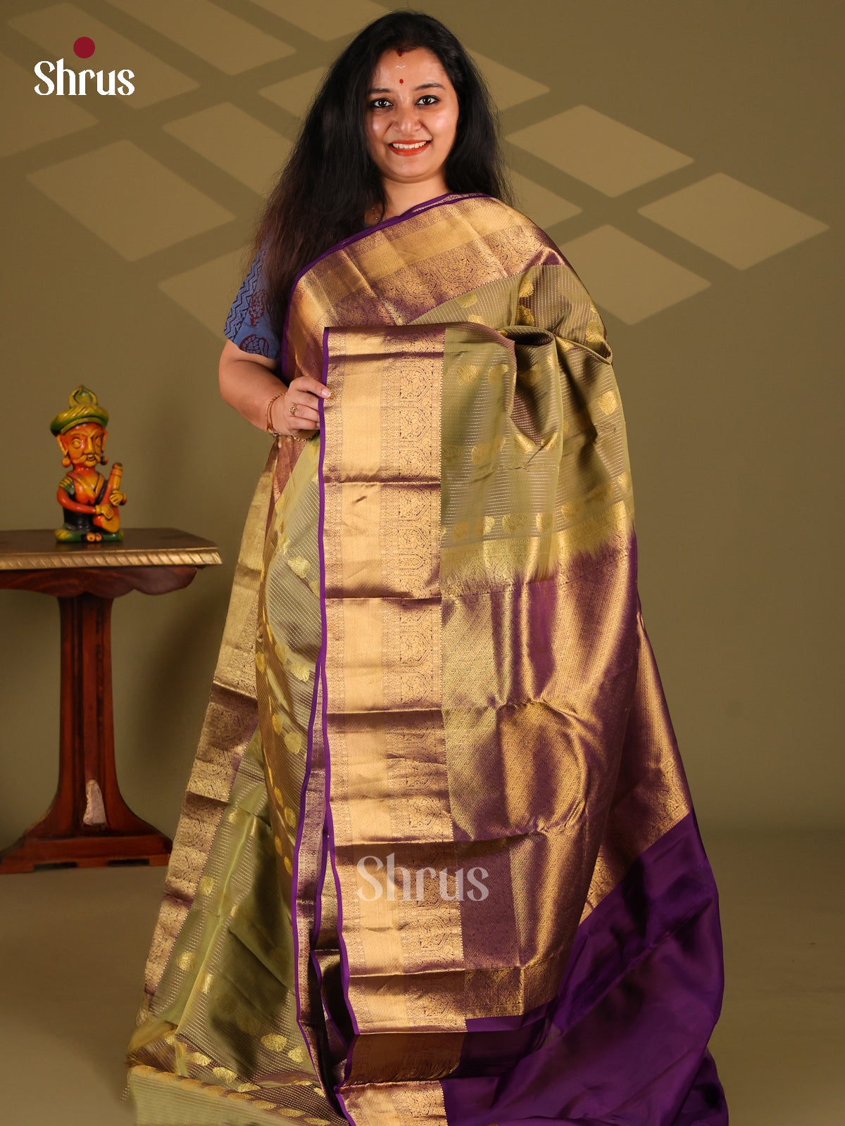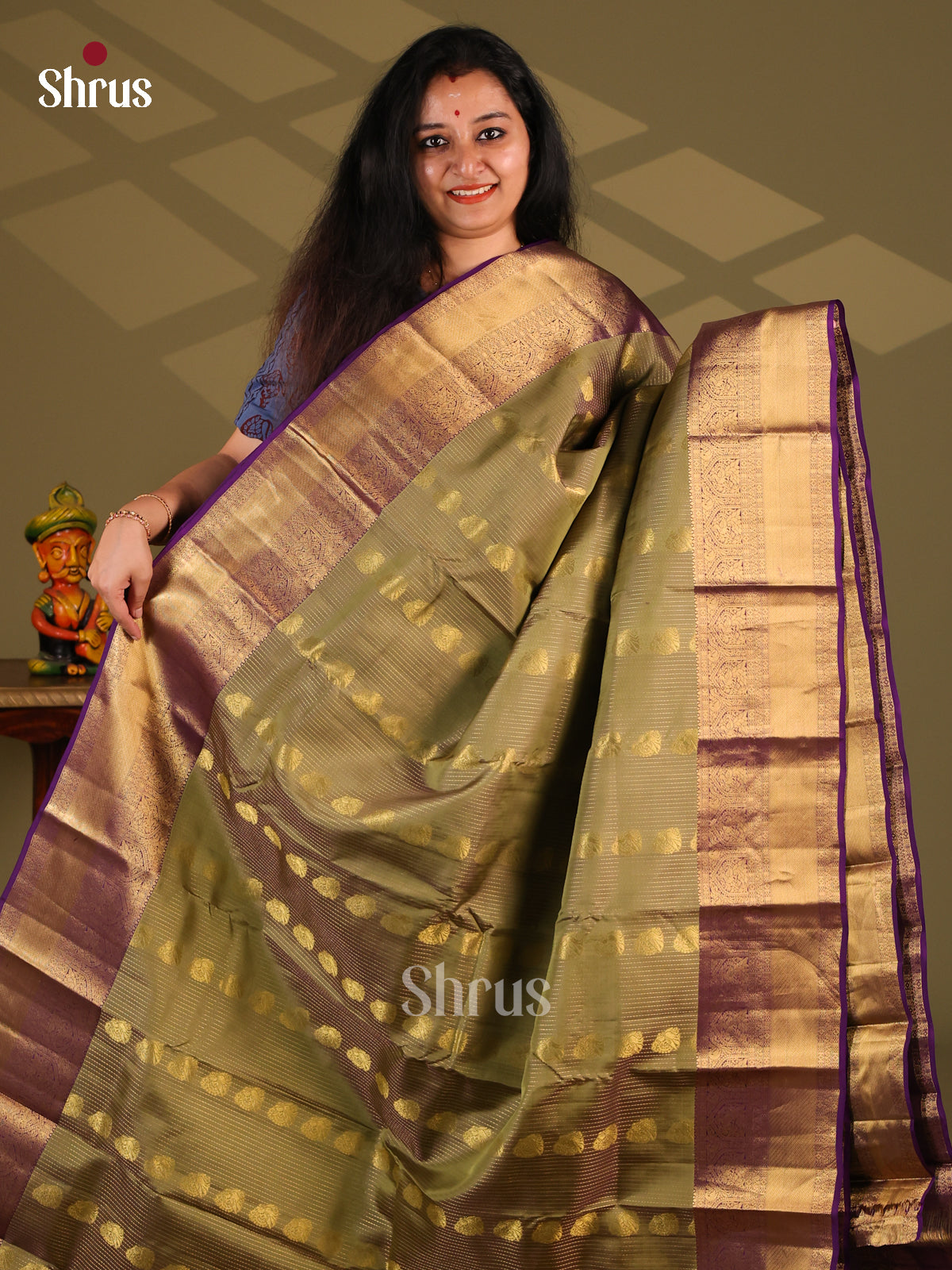 Brown & Green - Kanchipuram-halfpure Saree