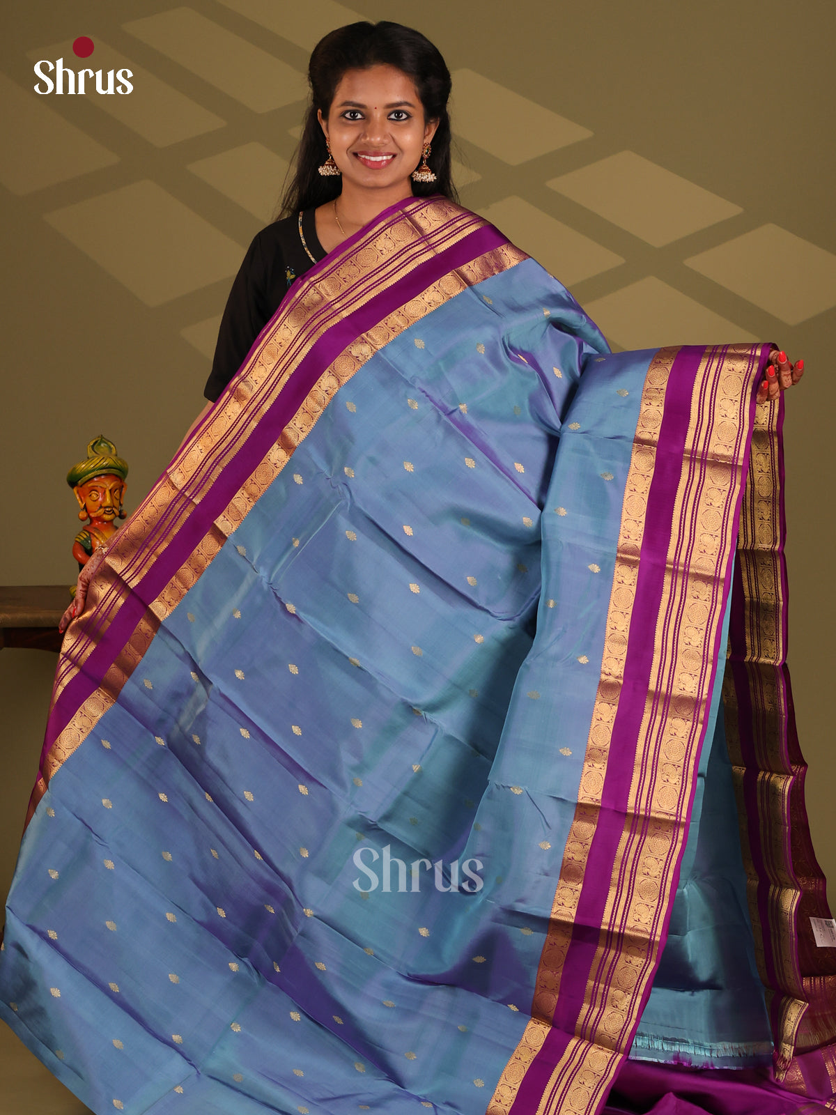 Blue - Kanchipuram-halfpure Saree