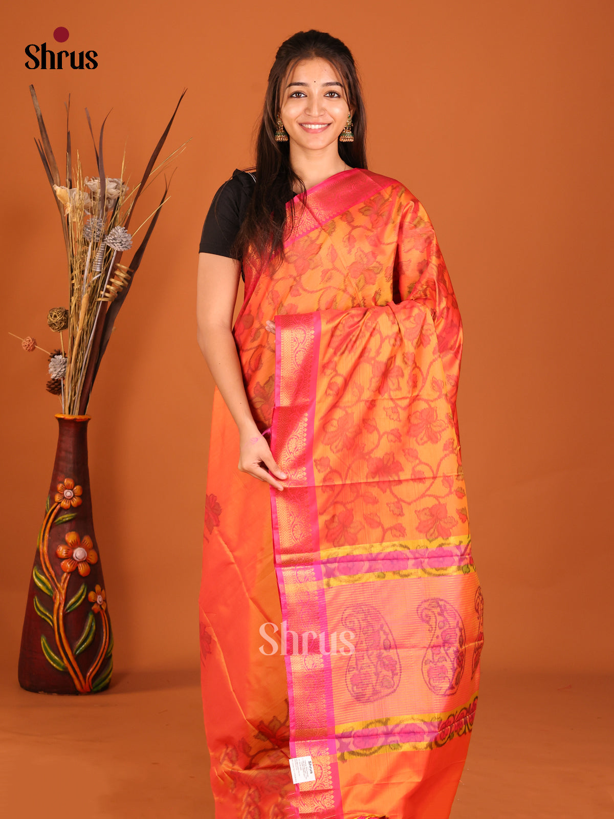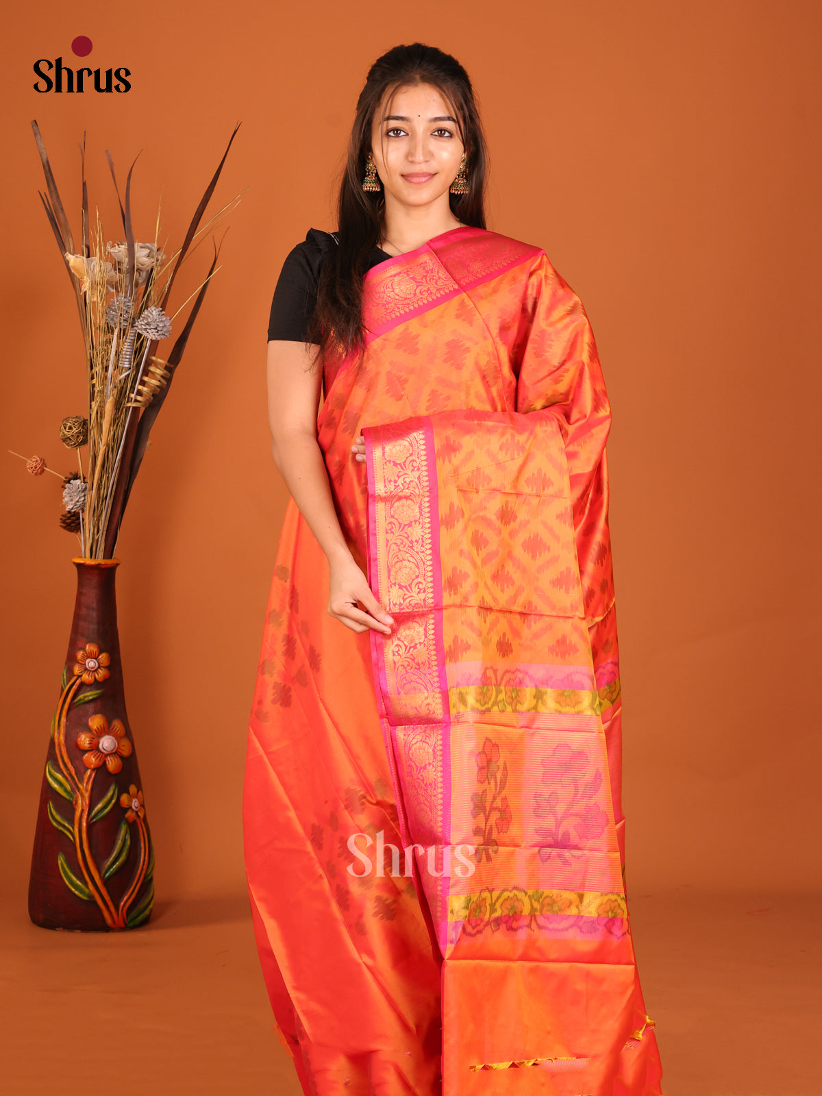Save 10%Pink & Orange - Semi Pochampally SareePink & Orange - Semi Pochampally Saree