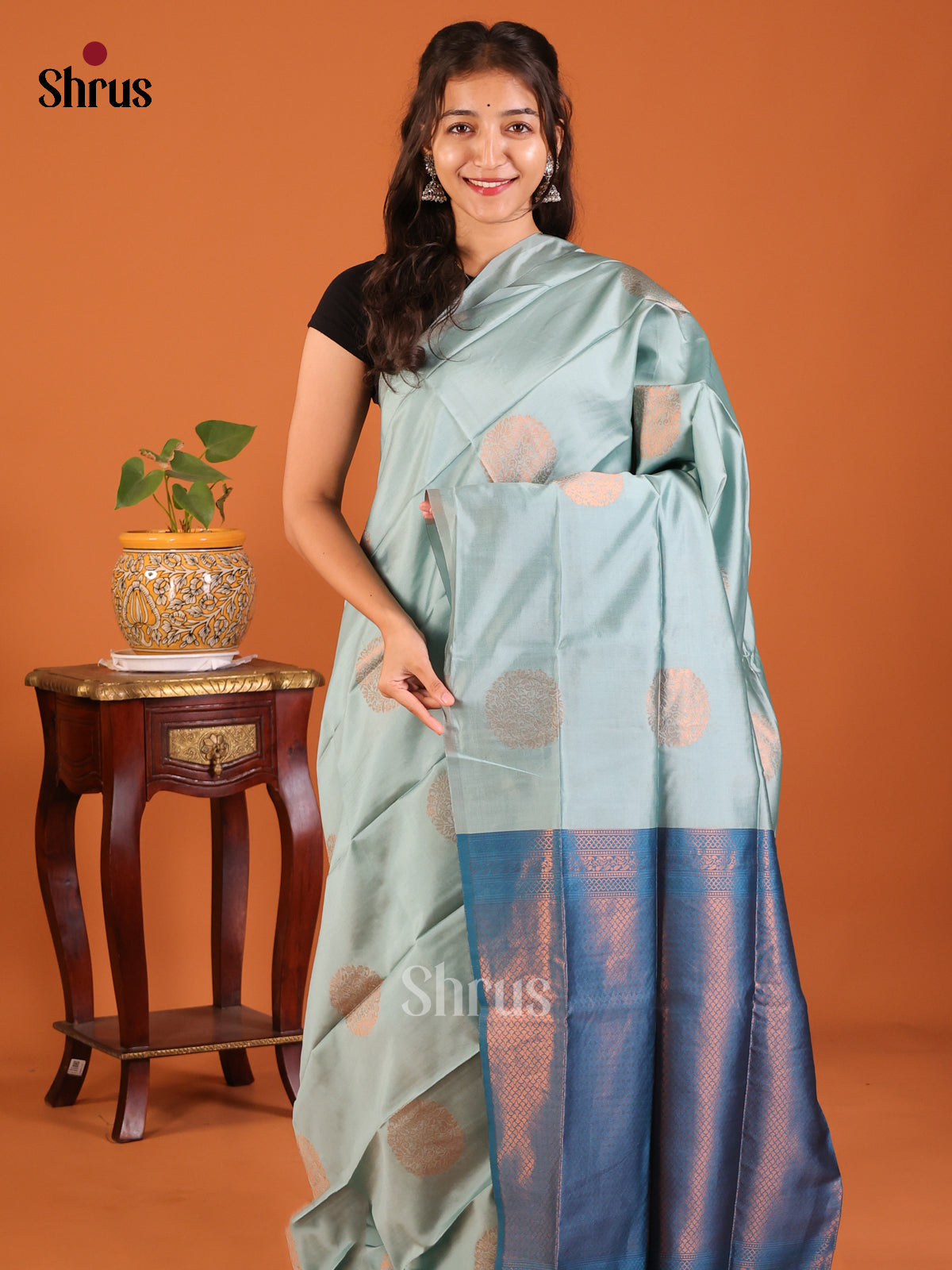 Double Shaded Green & Blue - Semi Softsilk Saree