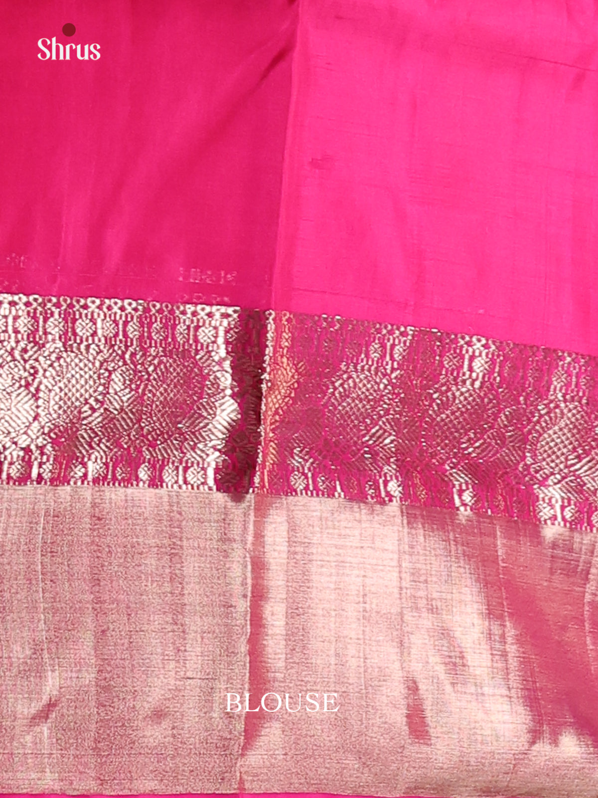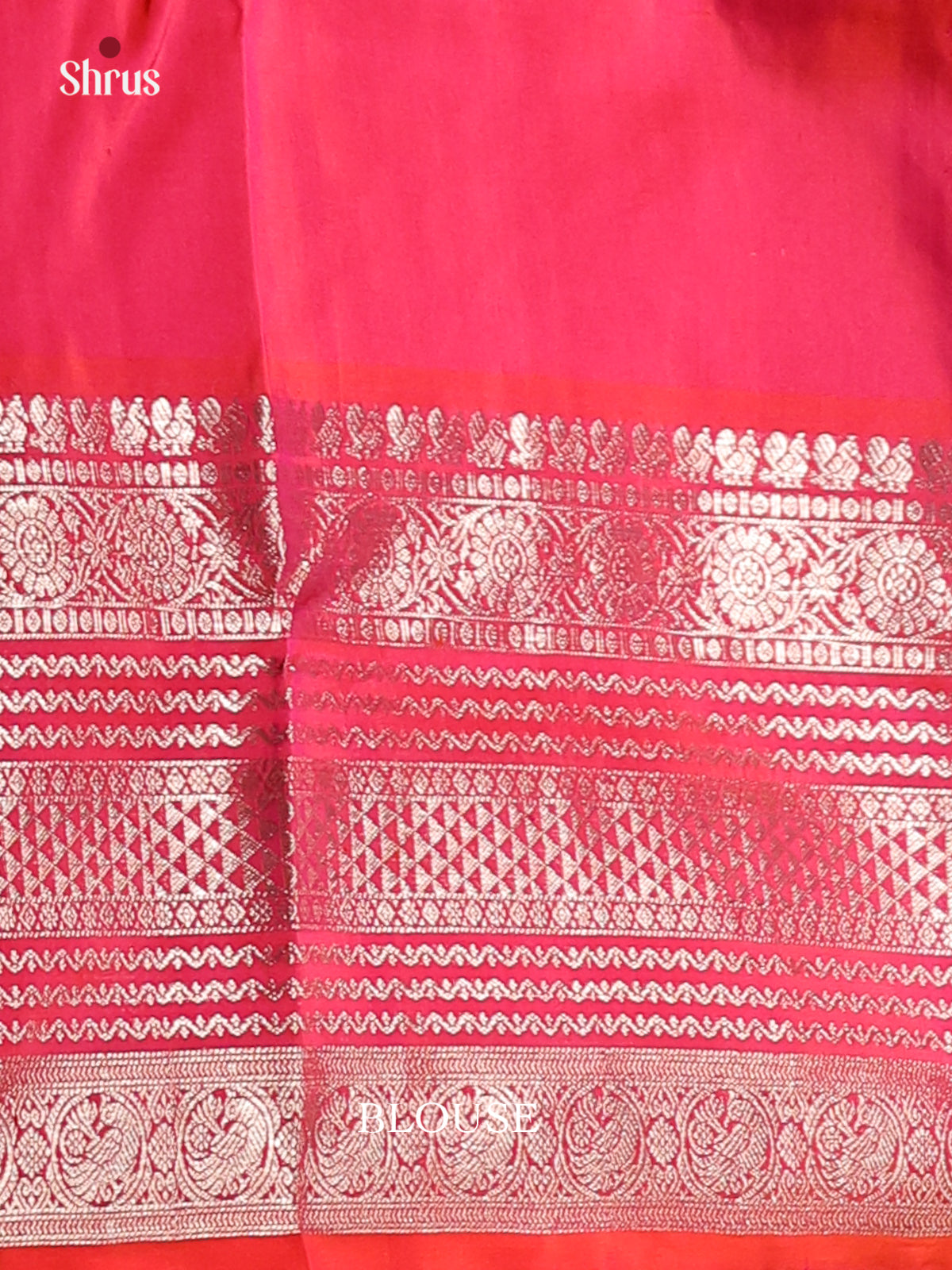 Orangish Pink & Pink Venkatagiri silk Saree gleams with zari peacock buttas