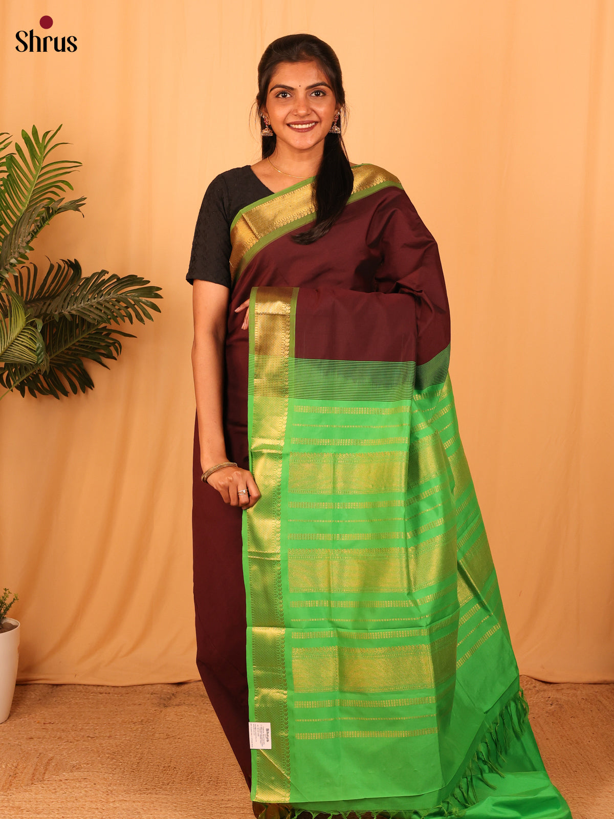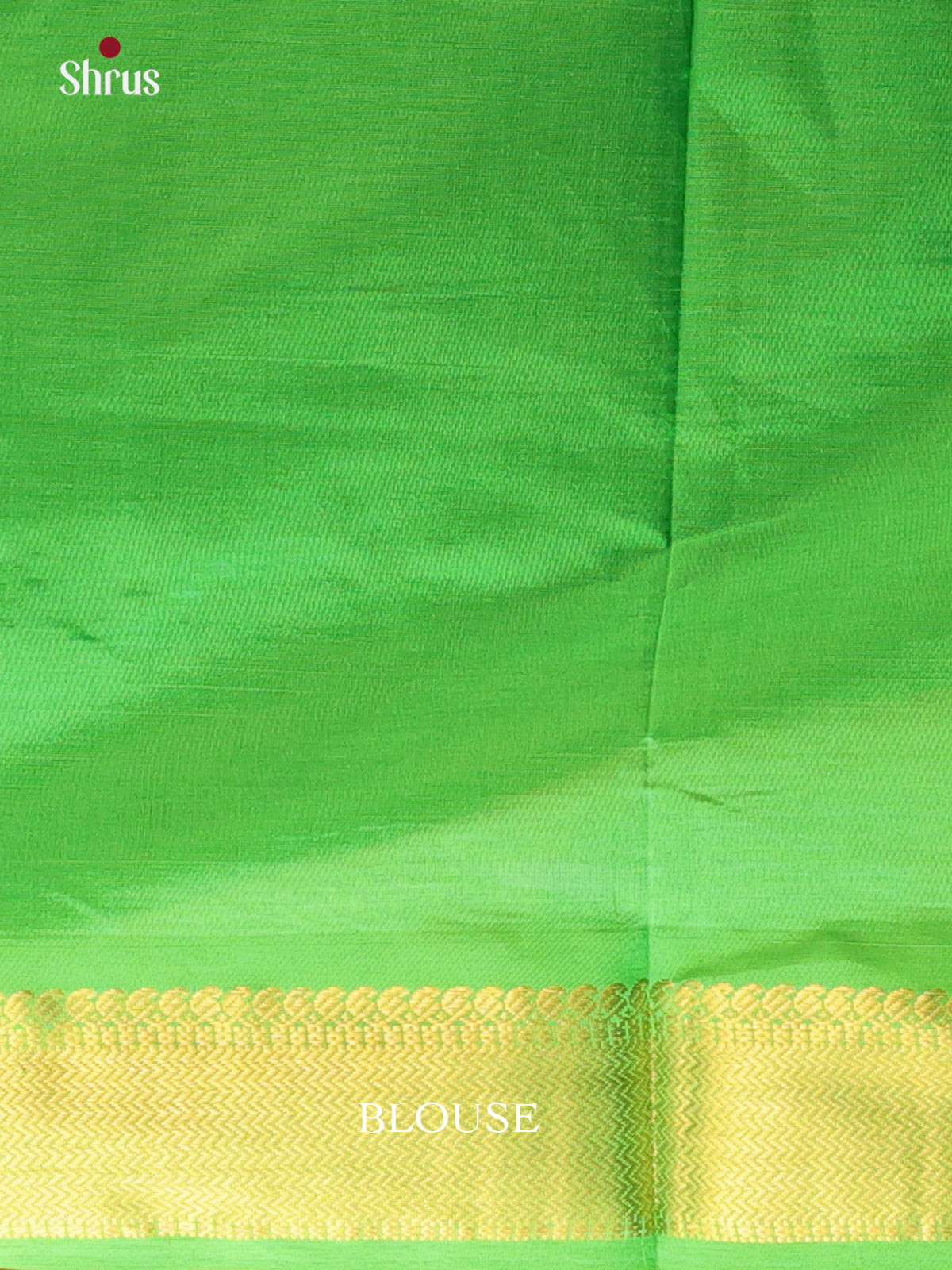 Blue and Orangish Pink Kanchipuram silk Saree With Zari Woven Floral Buttas