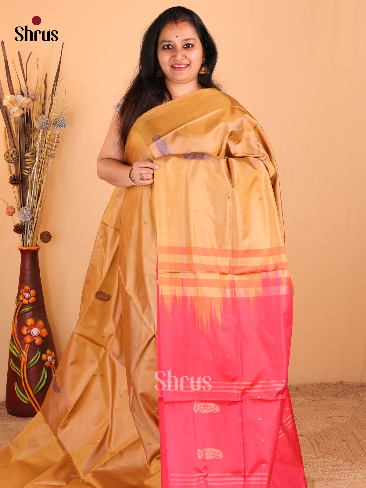 Dark Mustard & Pink- Banana Pith without blouse Saree