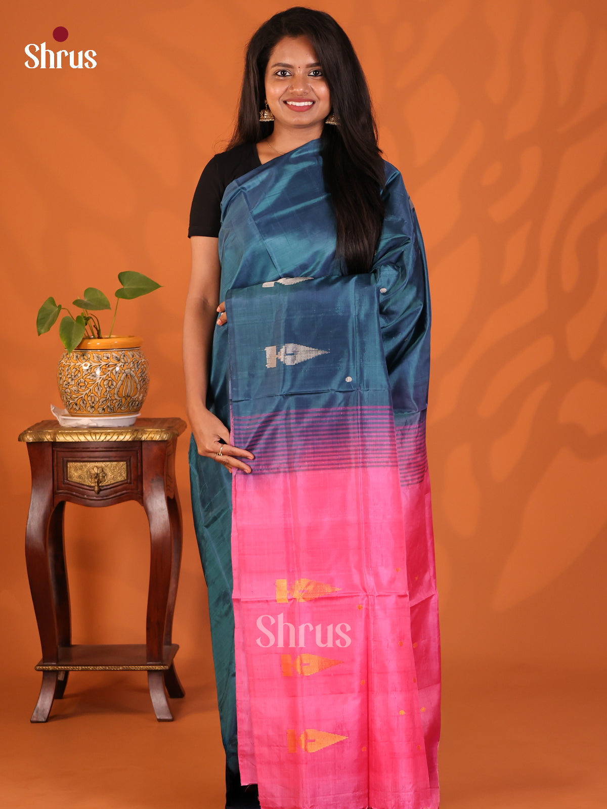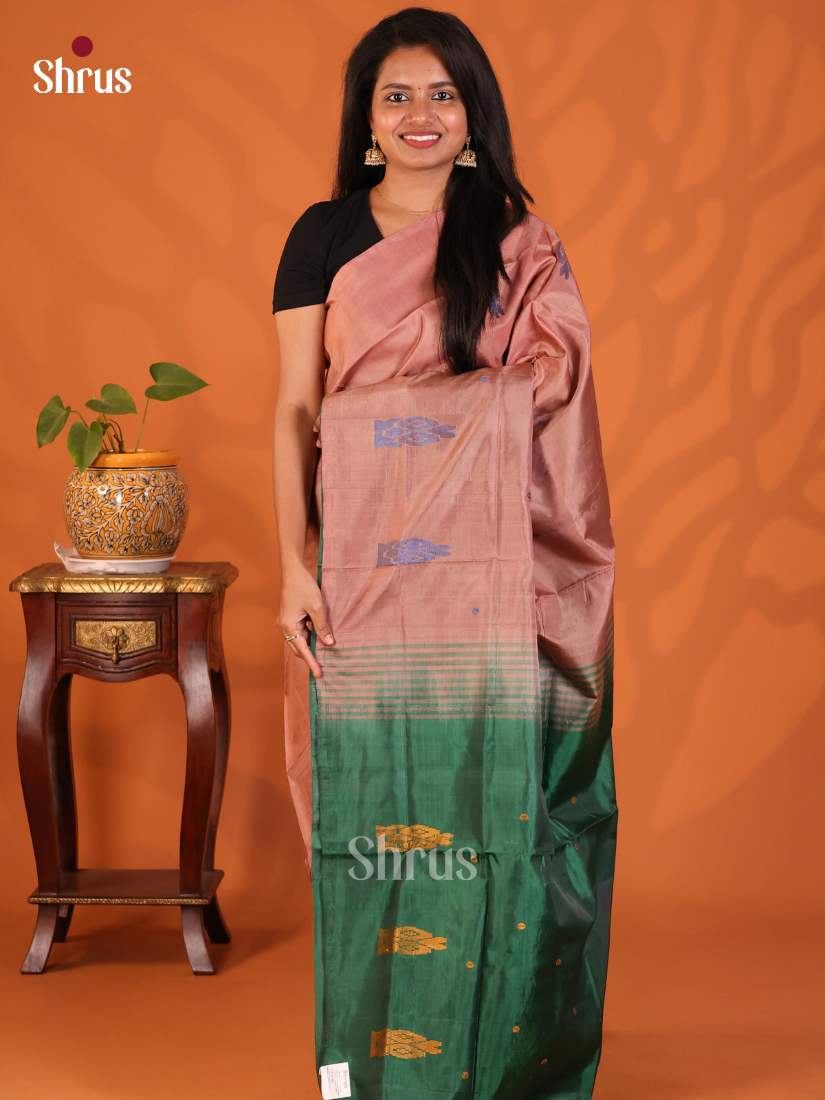 Reddish pInk & Elachi Green - Banana Pith Saree
