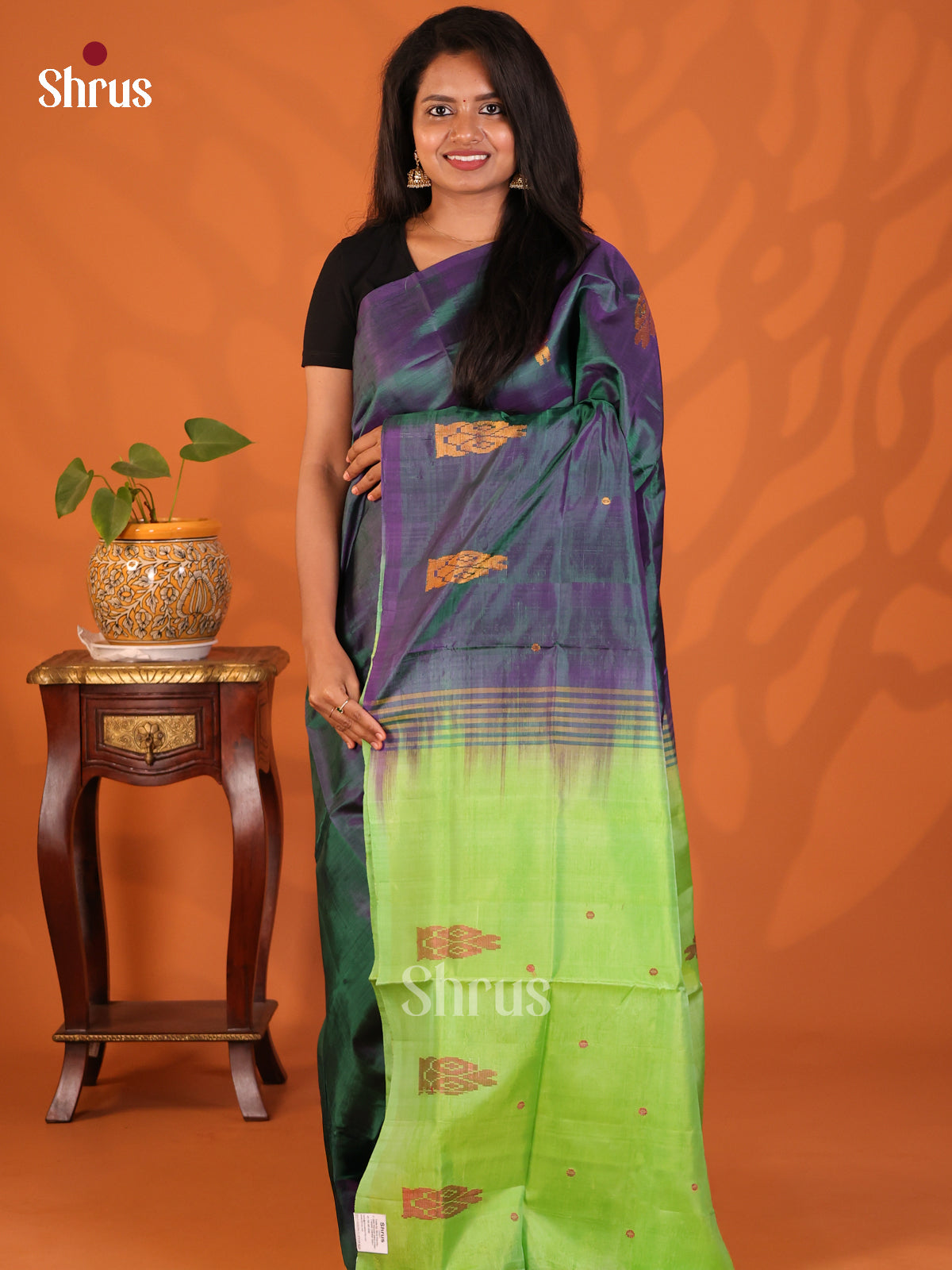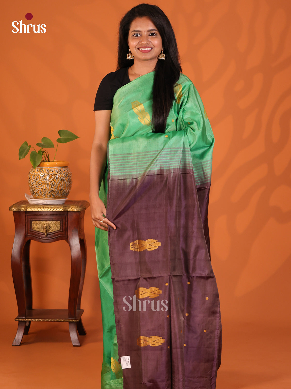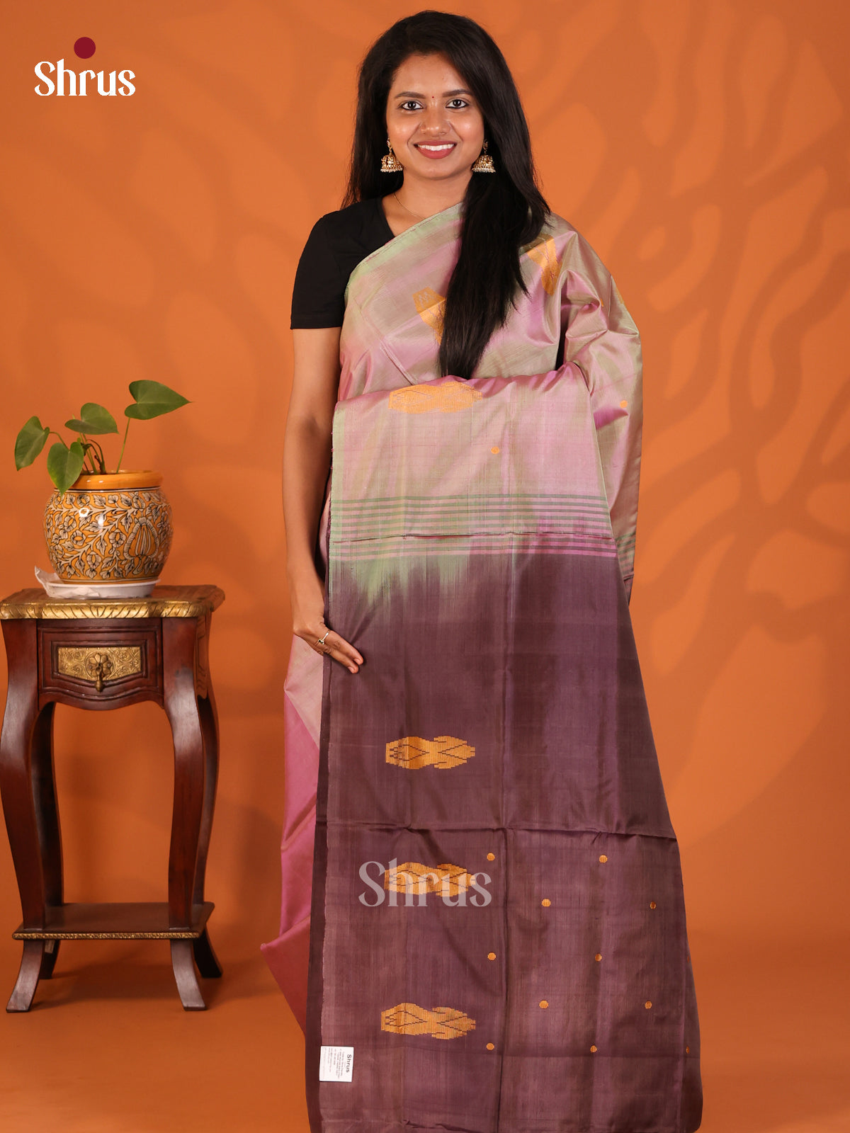 Dusty Brown & Purple - Banana Pith without blouse Saree