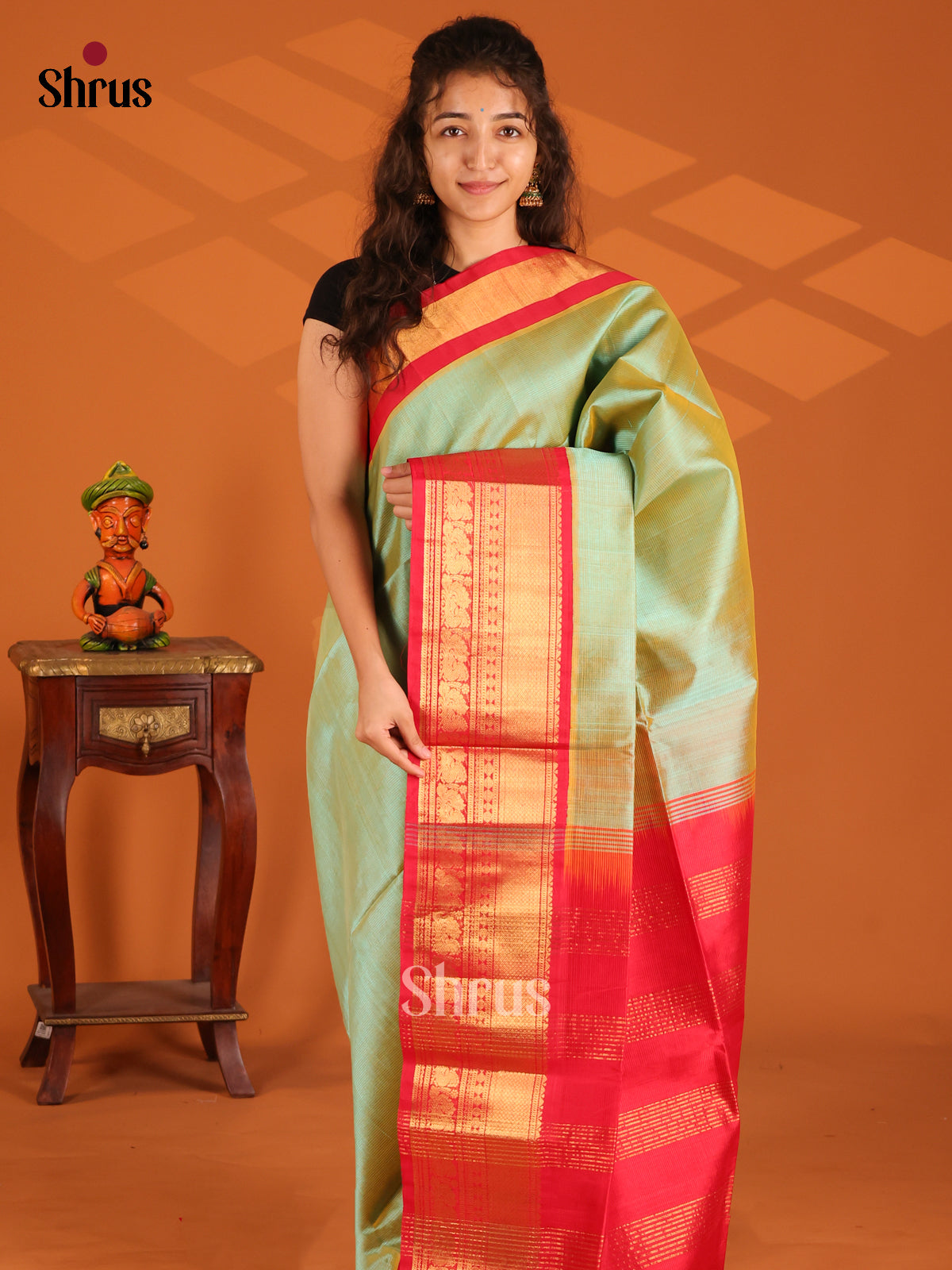 Double Shaded Green Silk Cotton Saree with plain body & maroon zari border