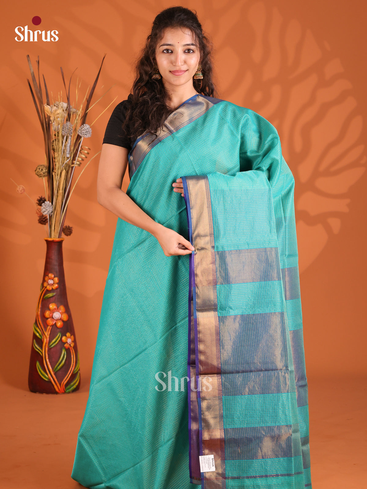 Mystique Teal & Blue Maheshwari silkcotton Saree with zari buttas