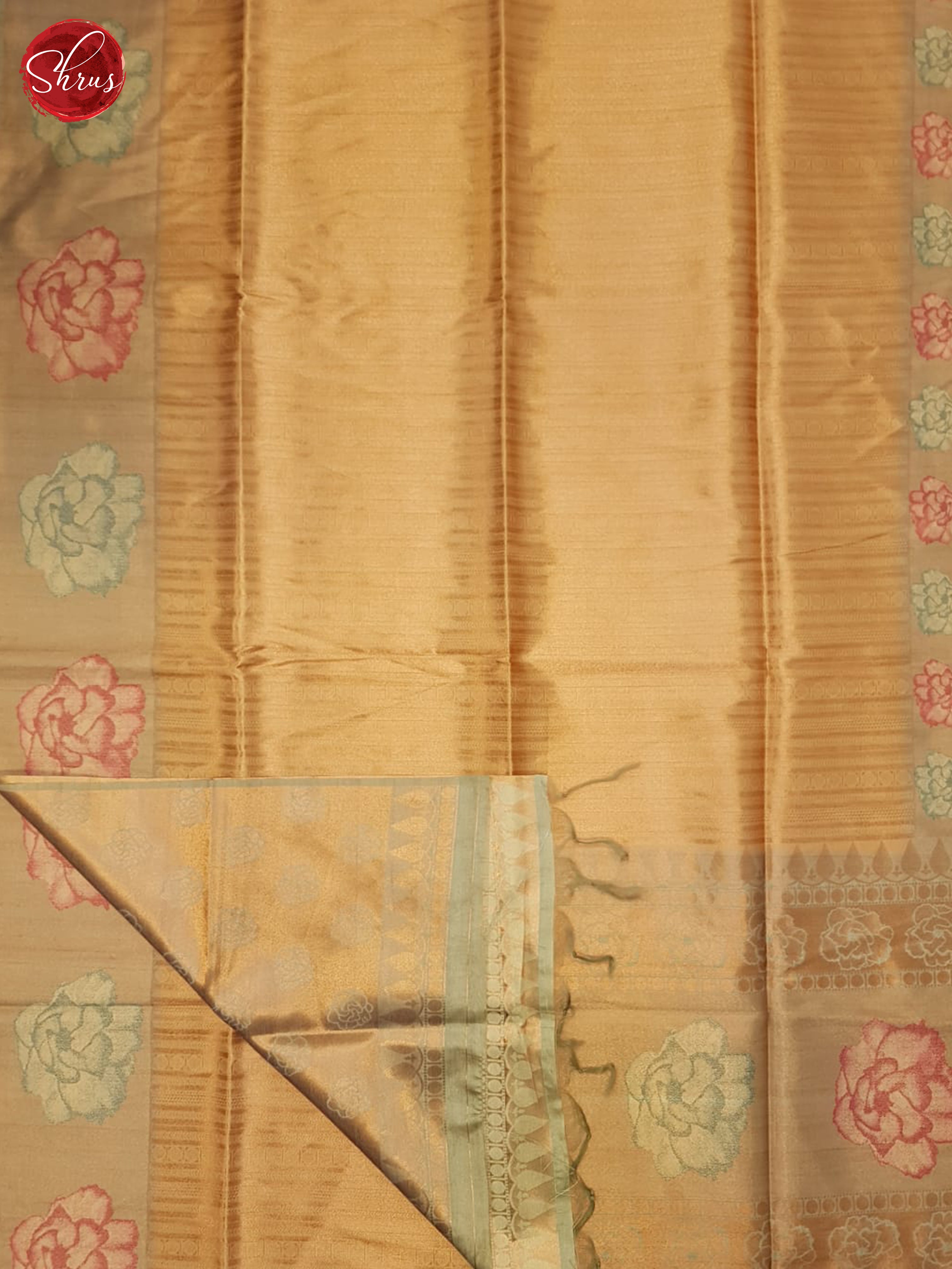 Beautiful Copper Semi Tussar saree enchants with zari stripes on the body & bounded with self border with floral .The beautiful self zari brocade Pallu & comes with Plain self blouse with border Completes the ensemble