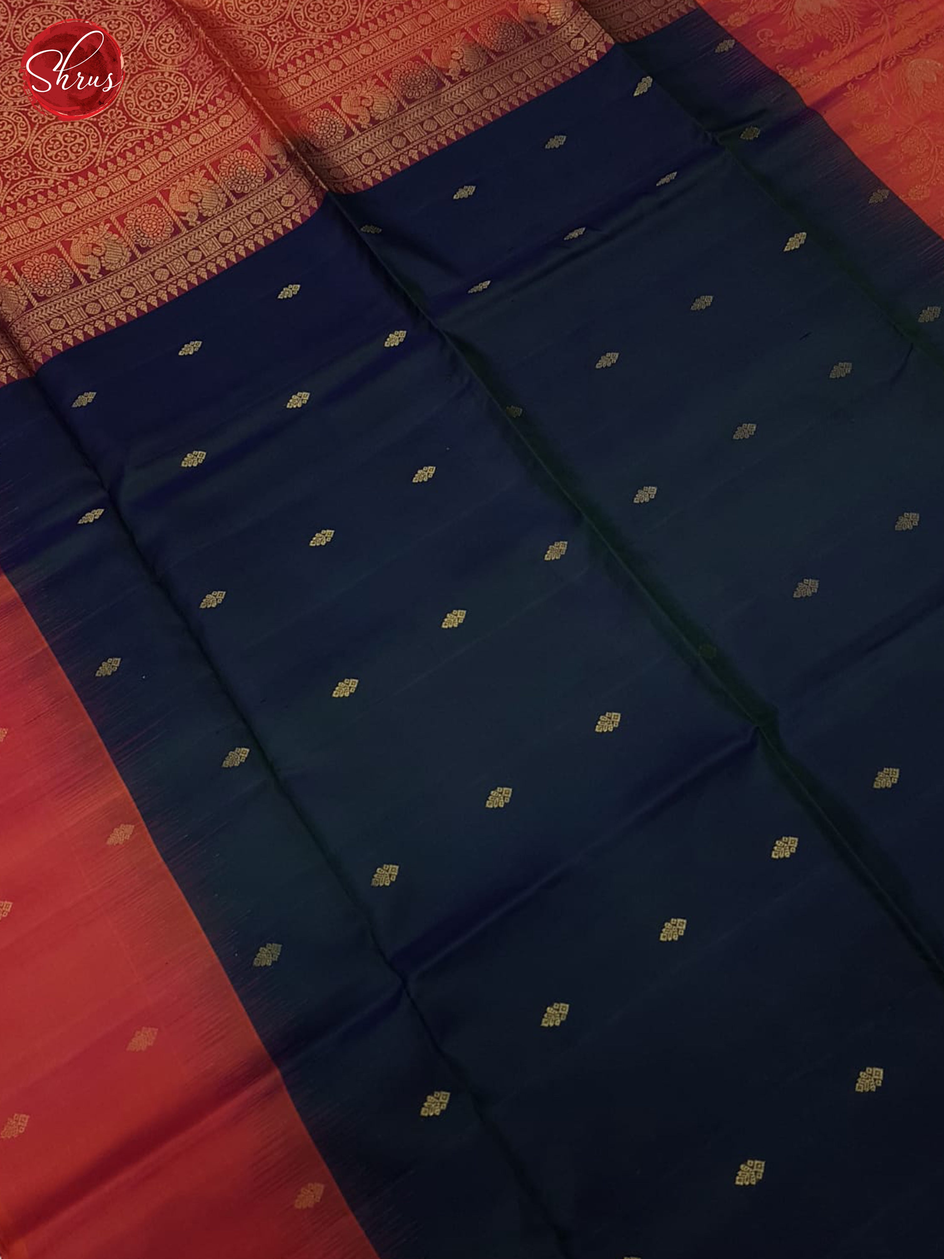 Elegant blue Soft Silk Saree dazzle with gold zari woven buttas on the body . The delightful weave is beautifully complemented with a pink zari border and art Zari woven brocade pallu . The plain pink Blouse is a perfect finish