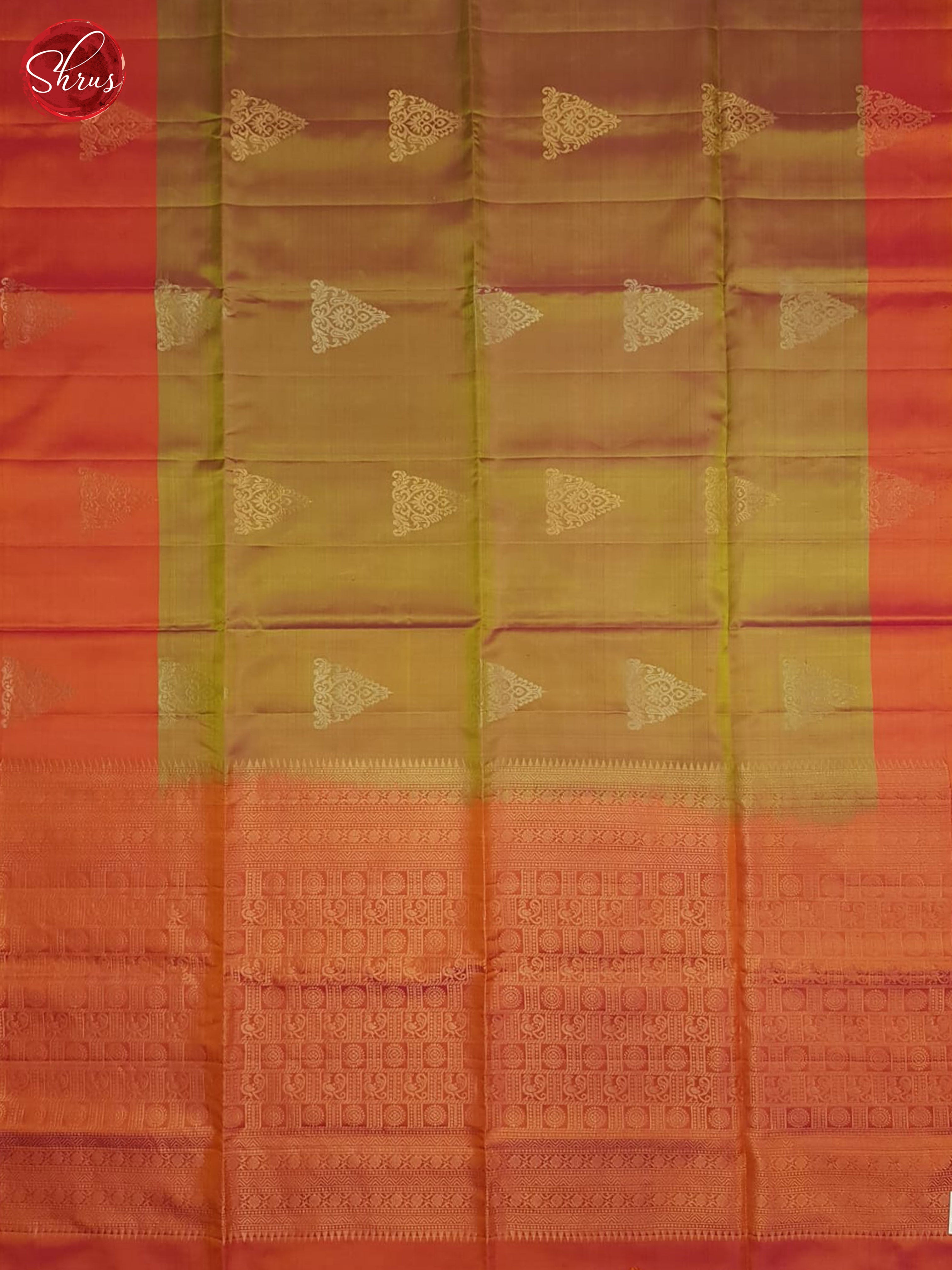 Double shaded greenish brown and Orange- Soft Silk Saree