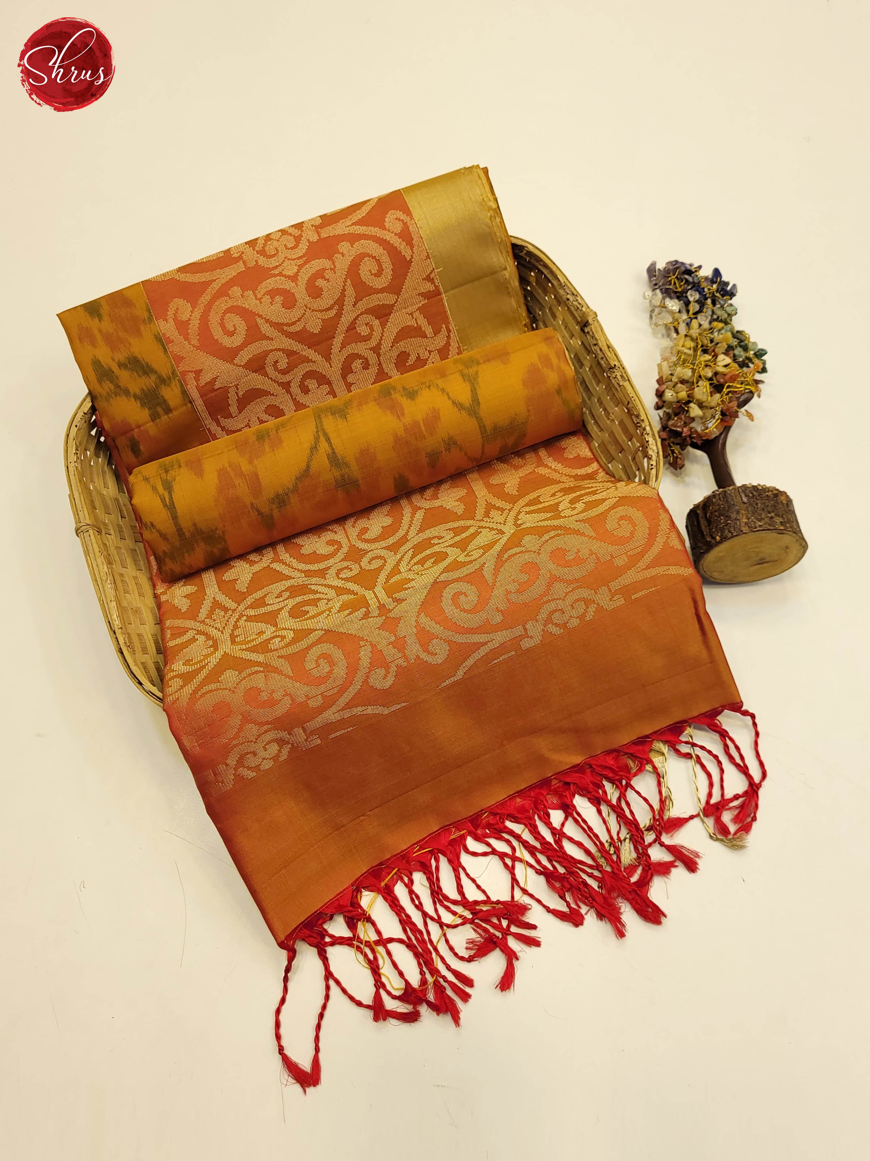 Mustard and Orange-Soft silk Saree