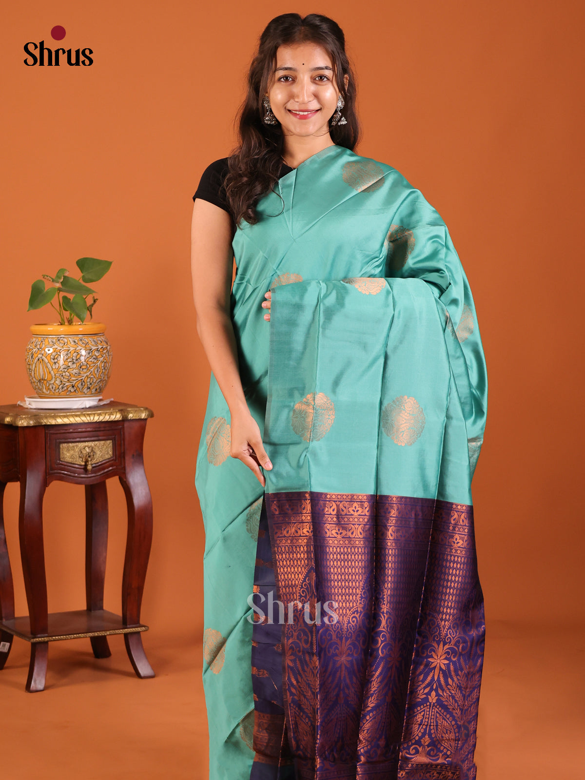 Teal Blue & Blue - Semi Georgette with zari butta brocade on the body & Contrast Zari Border