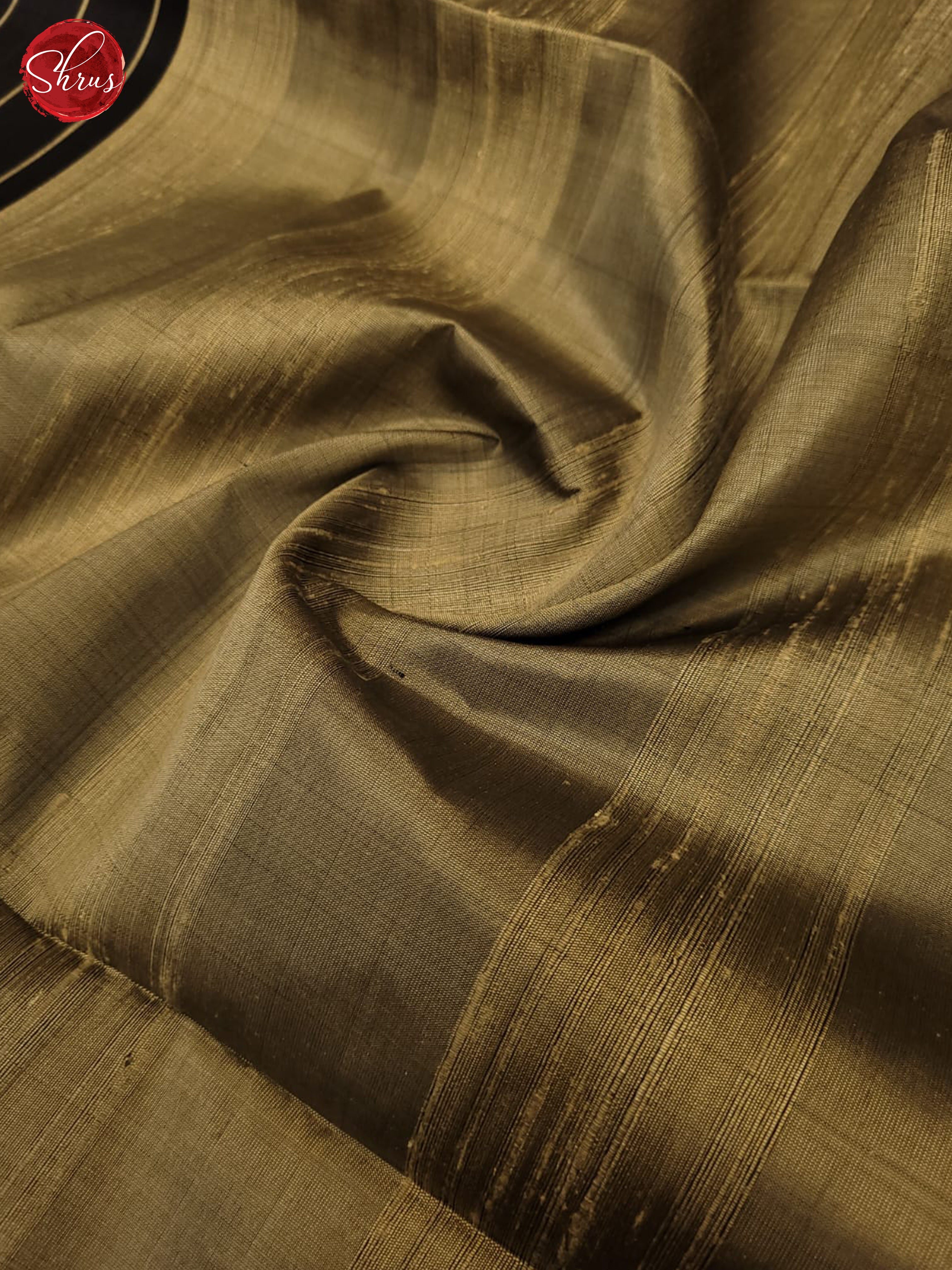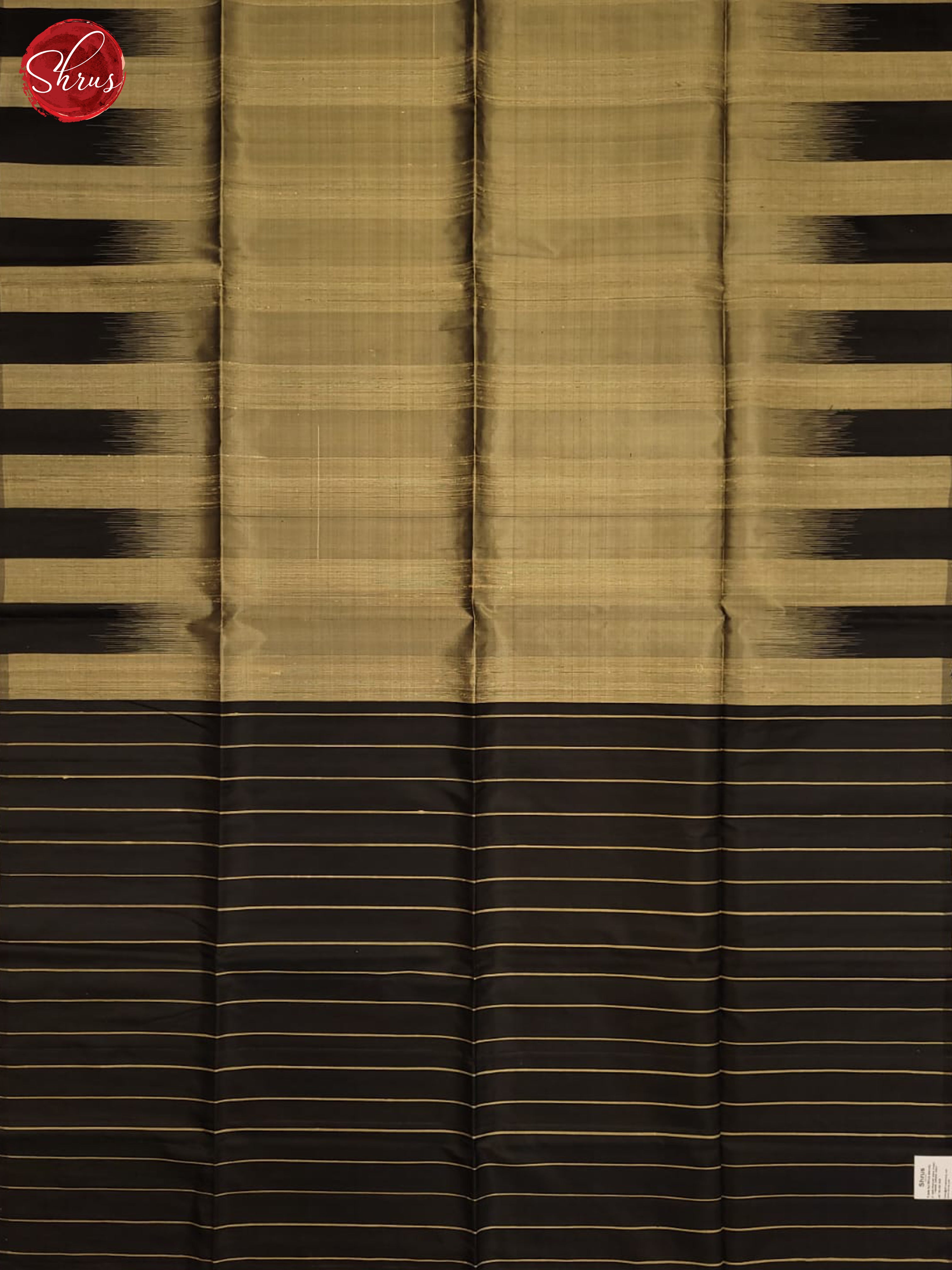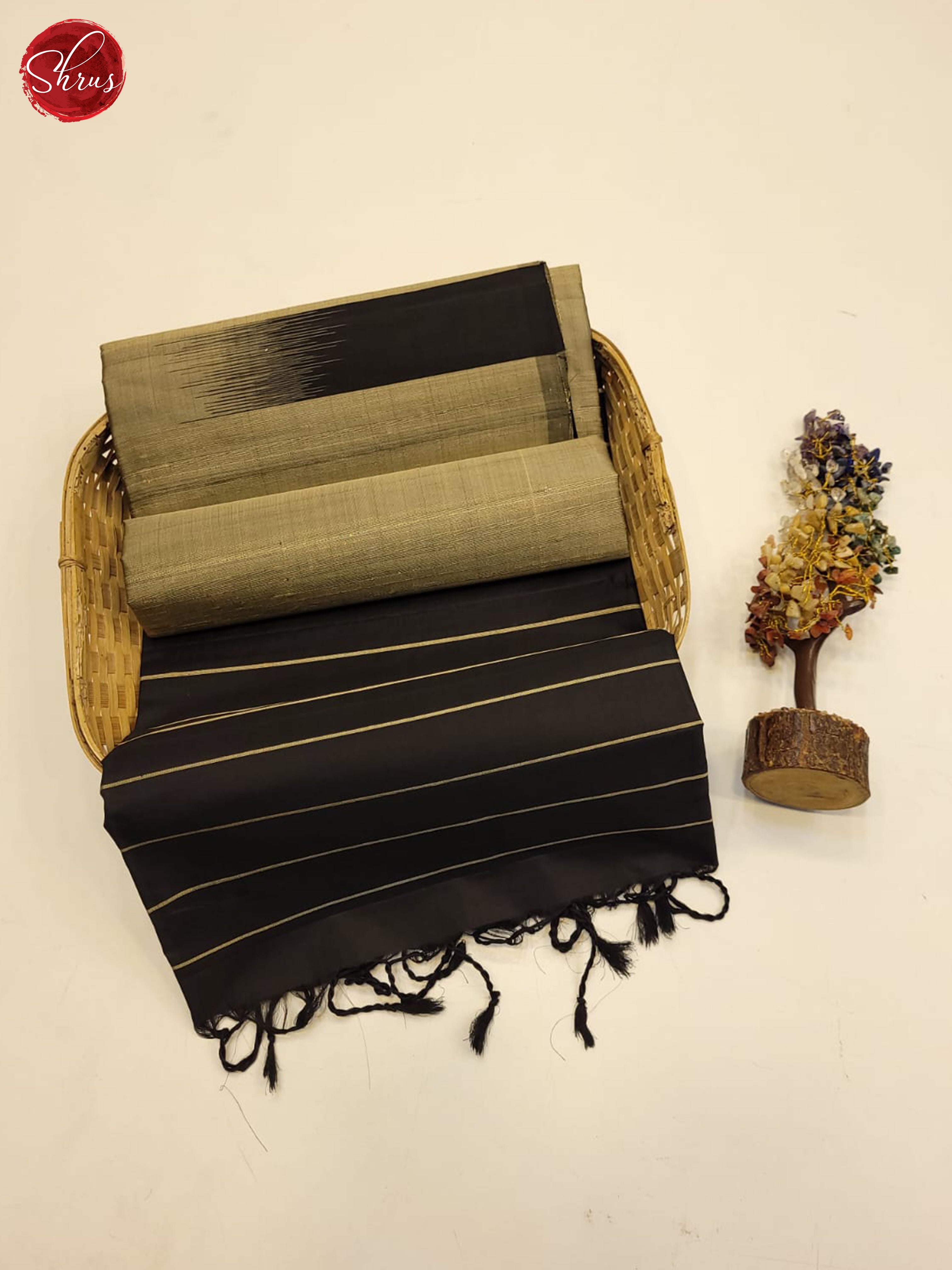 Elegant Beige Soft Silk Saree enchants with plainbody . The delightful weave is beautifully complemented with contrast Black strapes Border . The richBlack Pallu with floral brocade And plain Blouse is a perfect finish.