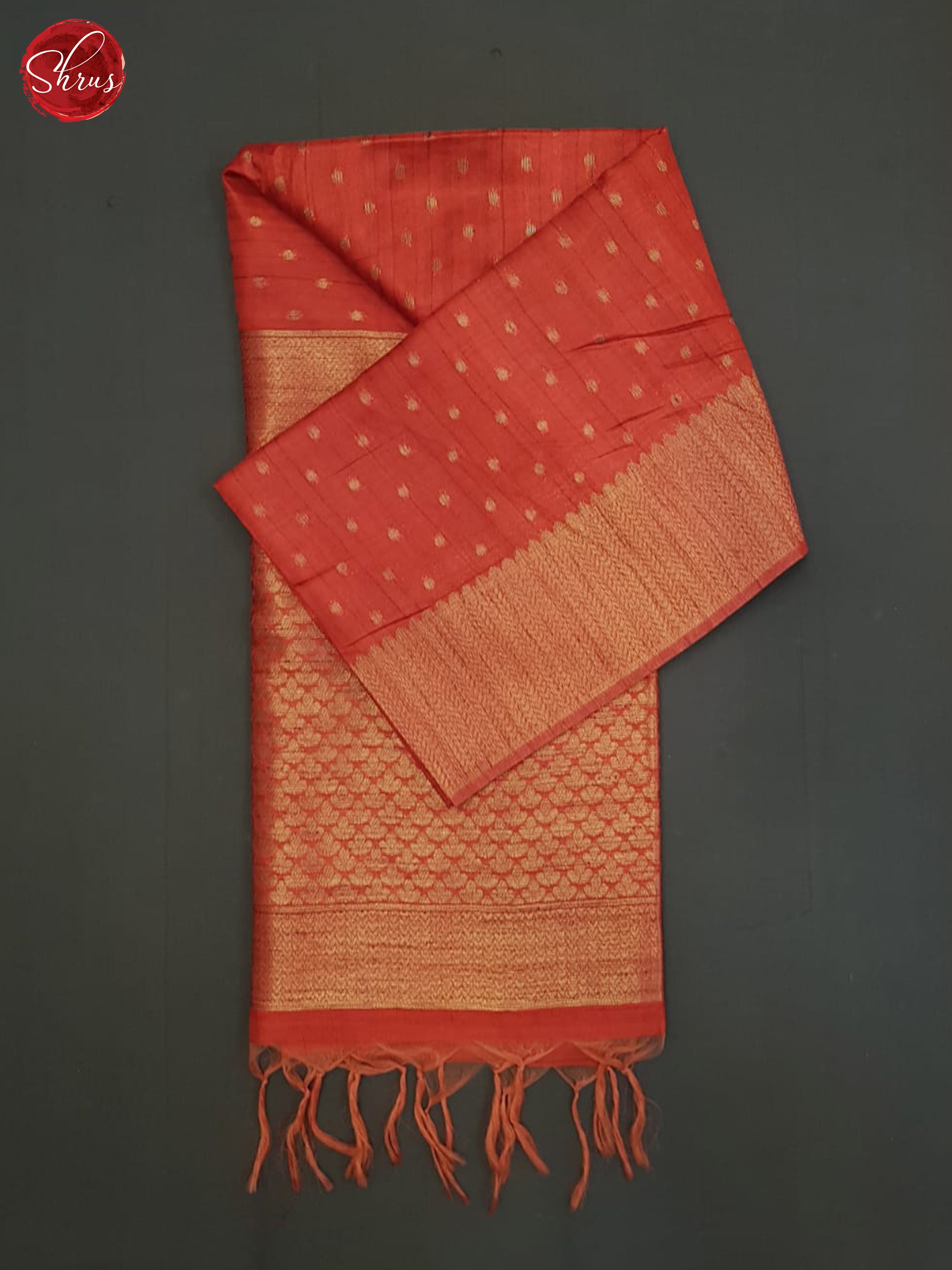 Charming Red Semi tussar saree with zari buttas on the body & bounded with self zari border & pallu gives a classy look . A self plain Blouse with zari border completes this ensemble.