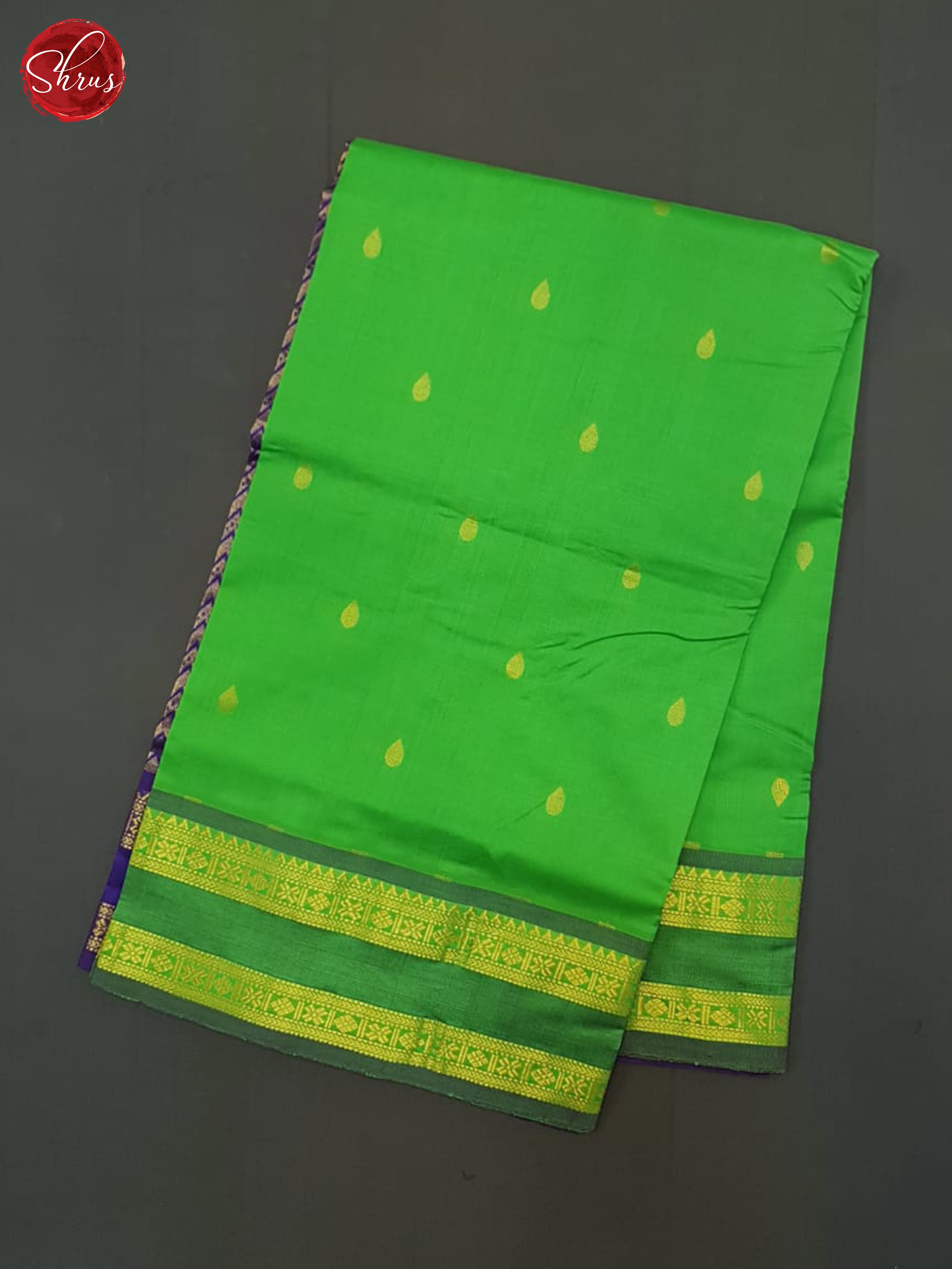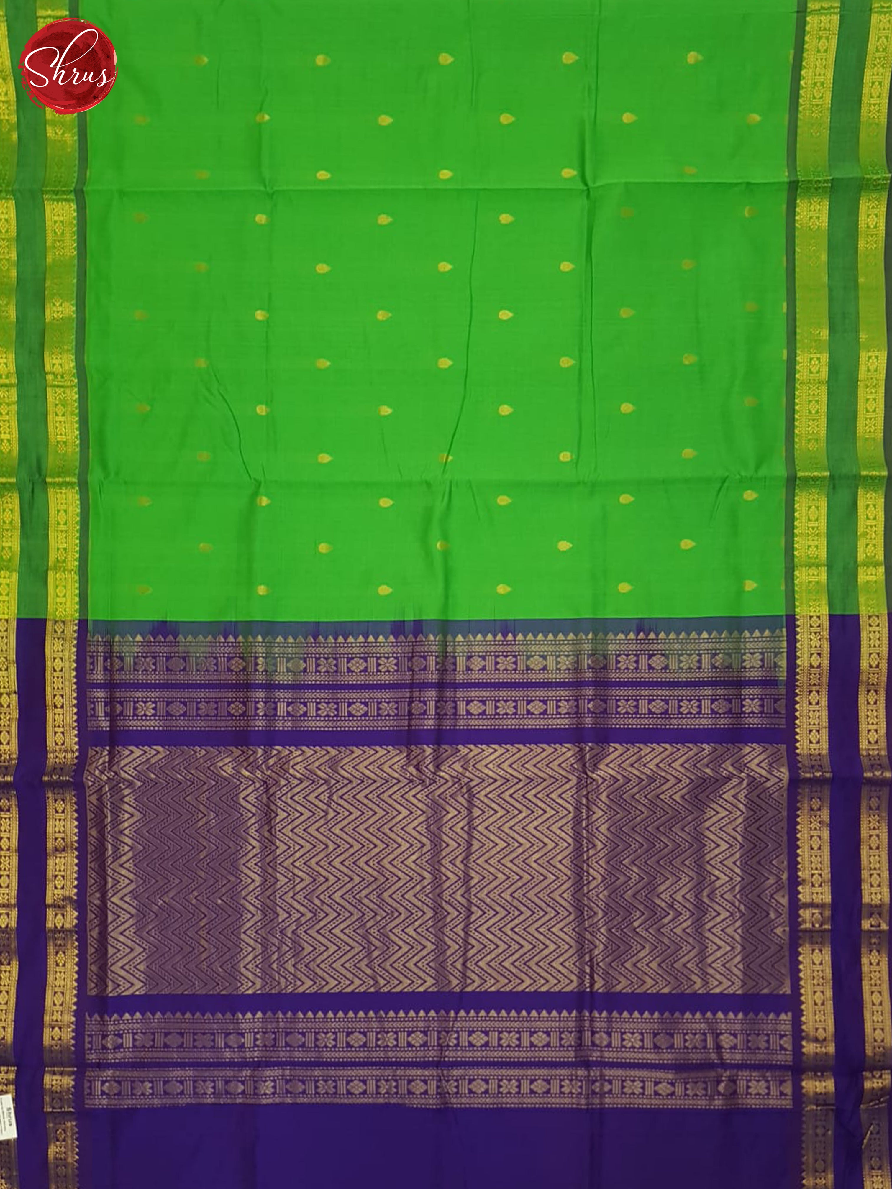 Beautiful Green Silk Cotton (Half-Pure)Saree enchants with zari buttas on the body & bounded with self zari border gives a classy look .The Splendid Contrast Blue zari brocade pallu & plain blouse with zari border lends compliments