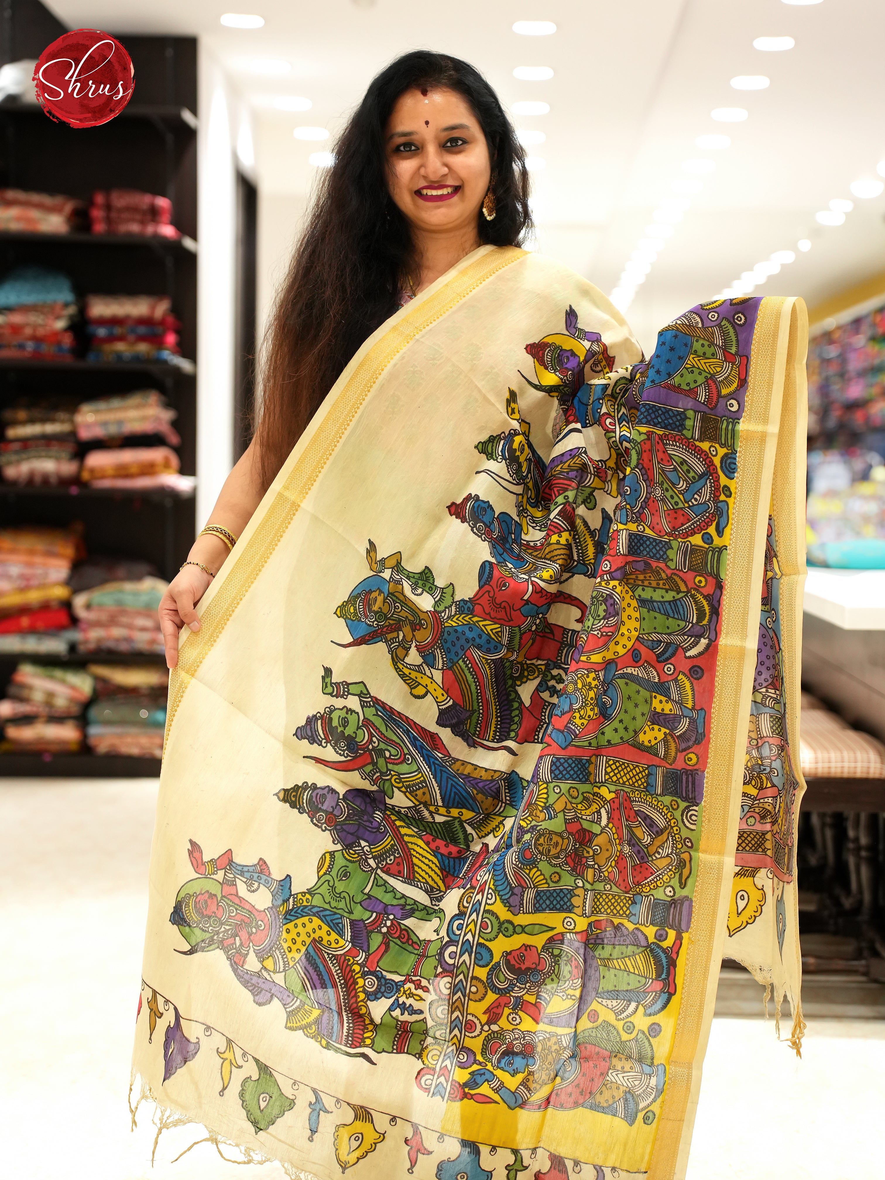 Cream - Pen kalamkari Dupatta