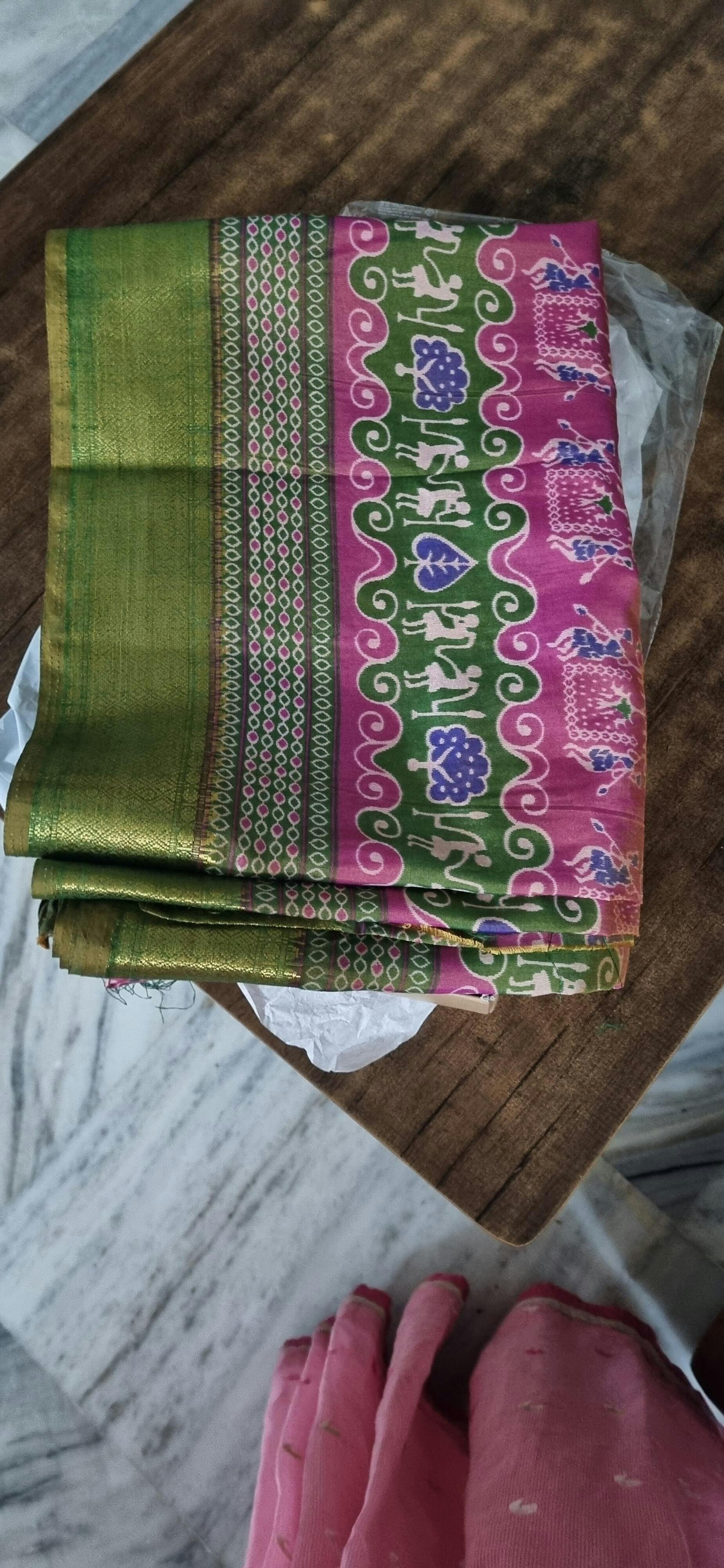 Pink & Green - Semi Patola Saree