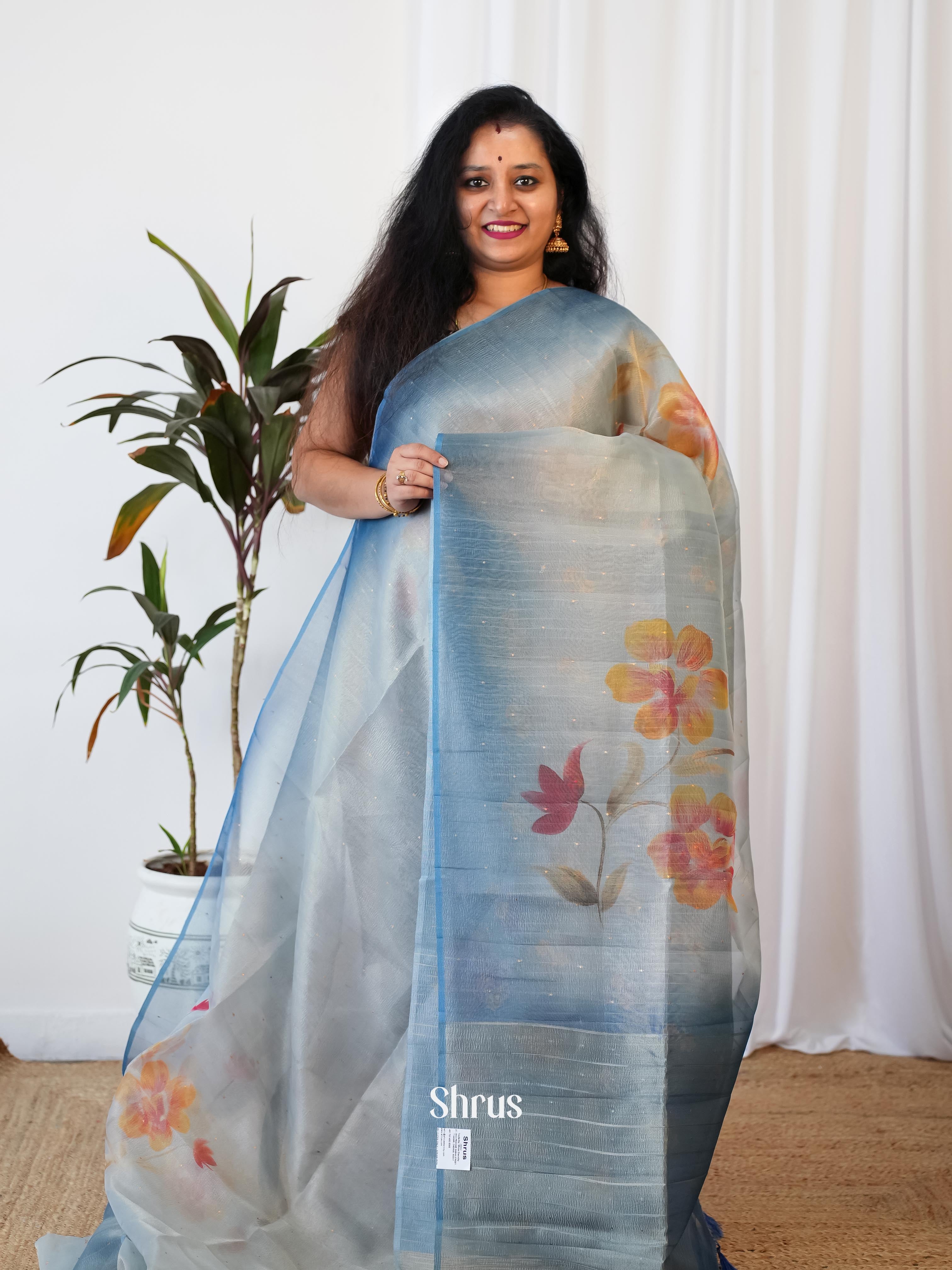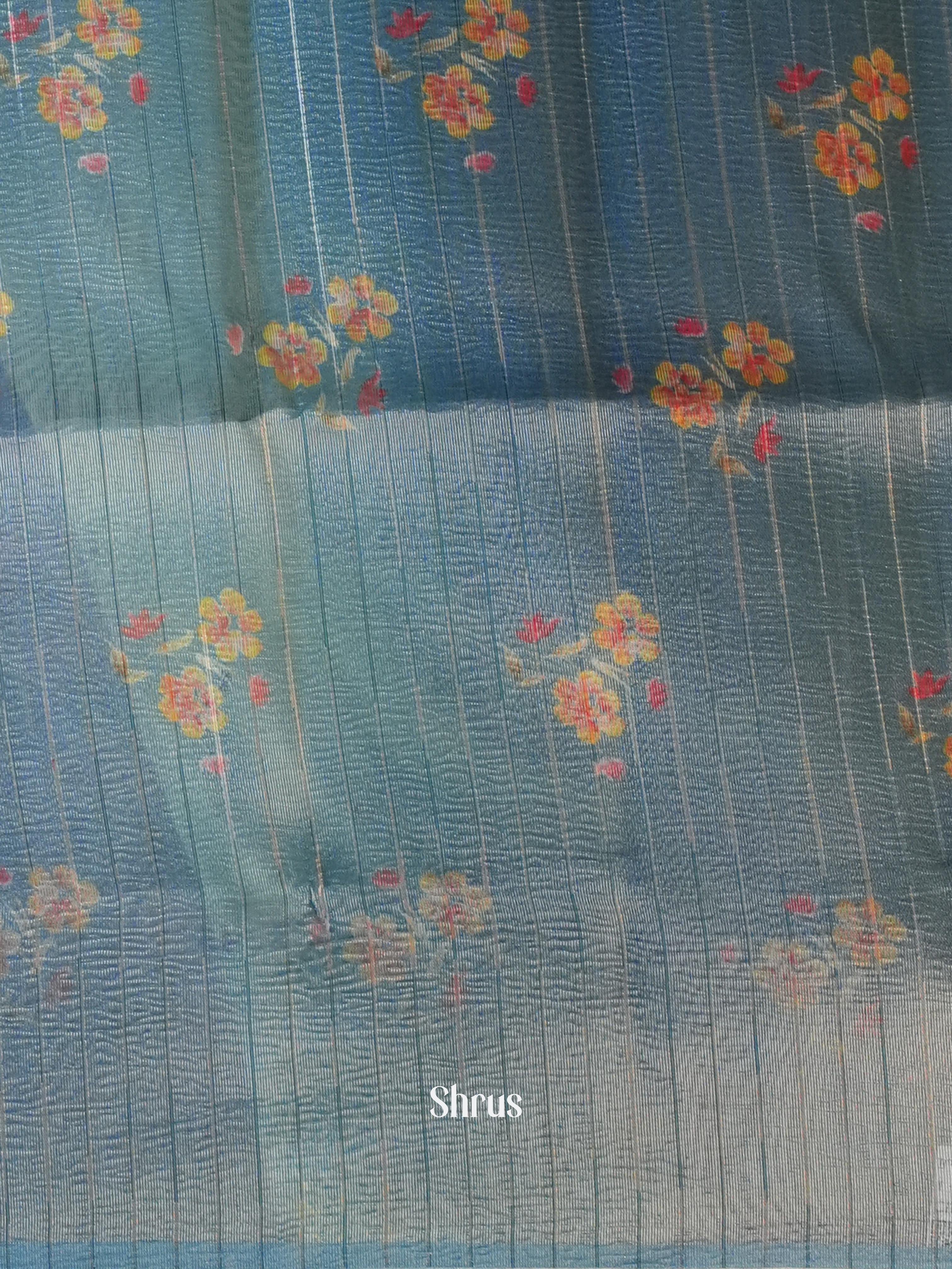 Pretty Blue Bamboo Silk Saree boasts an intricate floral digital print , zari stripes on the body. The self zari Pallu add a charming touch. An attached self blouse