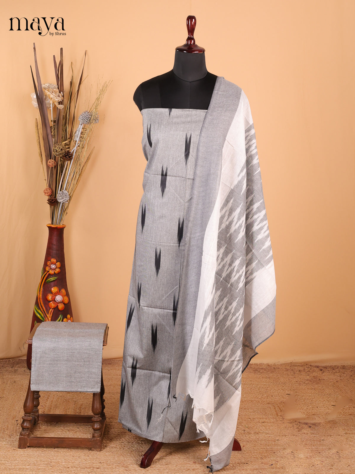 Grey - Cotton Salwar Suit Unstitched Top, Bottom & Dupatta - CJS11043