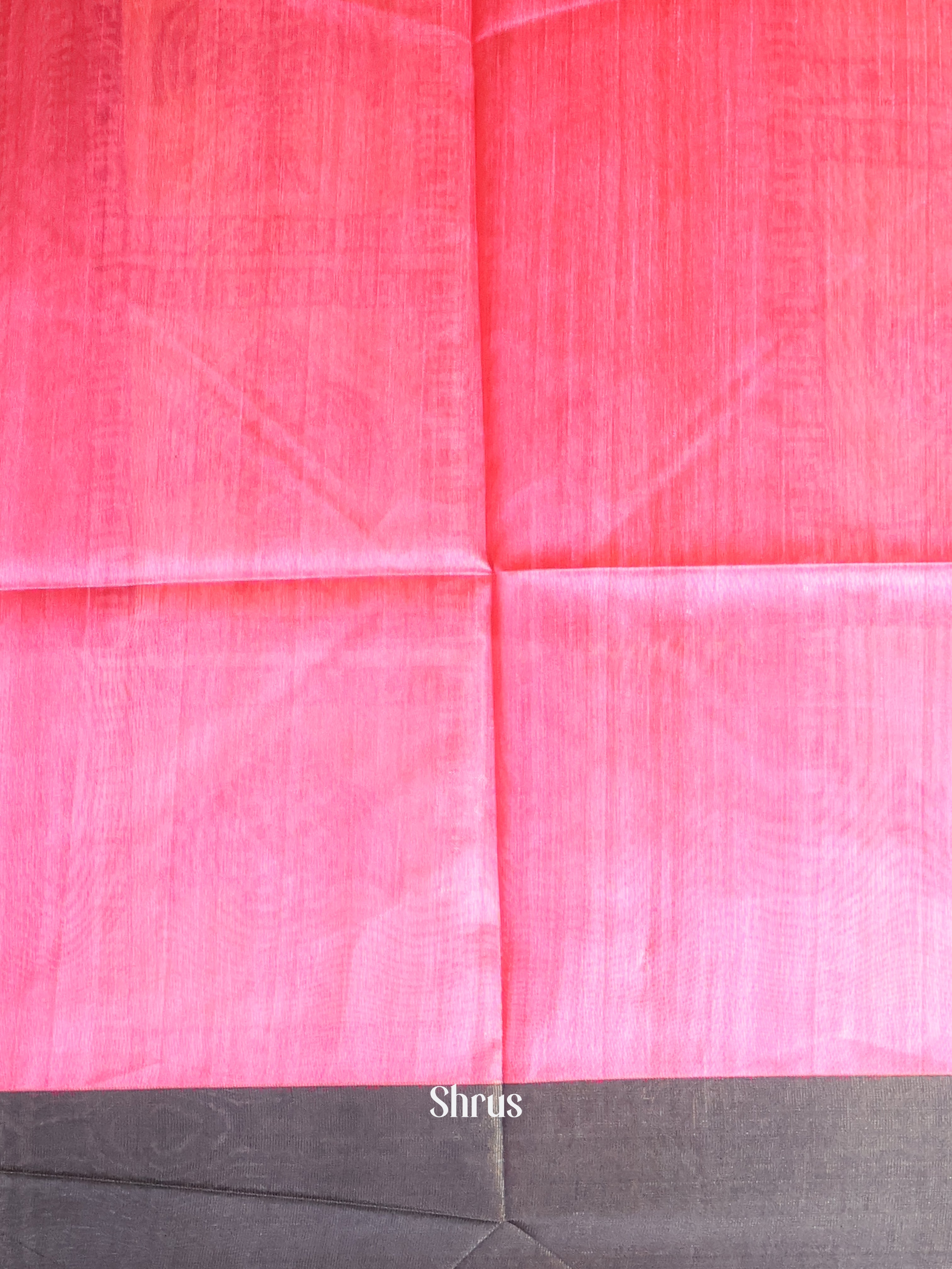 Elegant Green Champa Semi Tussar Saree features an enchanting plain body & bounded with Black printed, zari border . The saree also includes a contrast zari striped Pallu and a matching Pink blouse to complete the ensemble.
