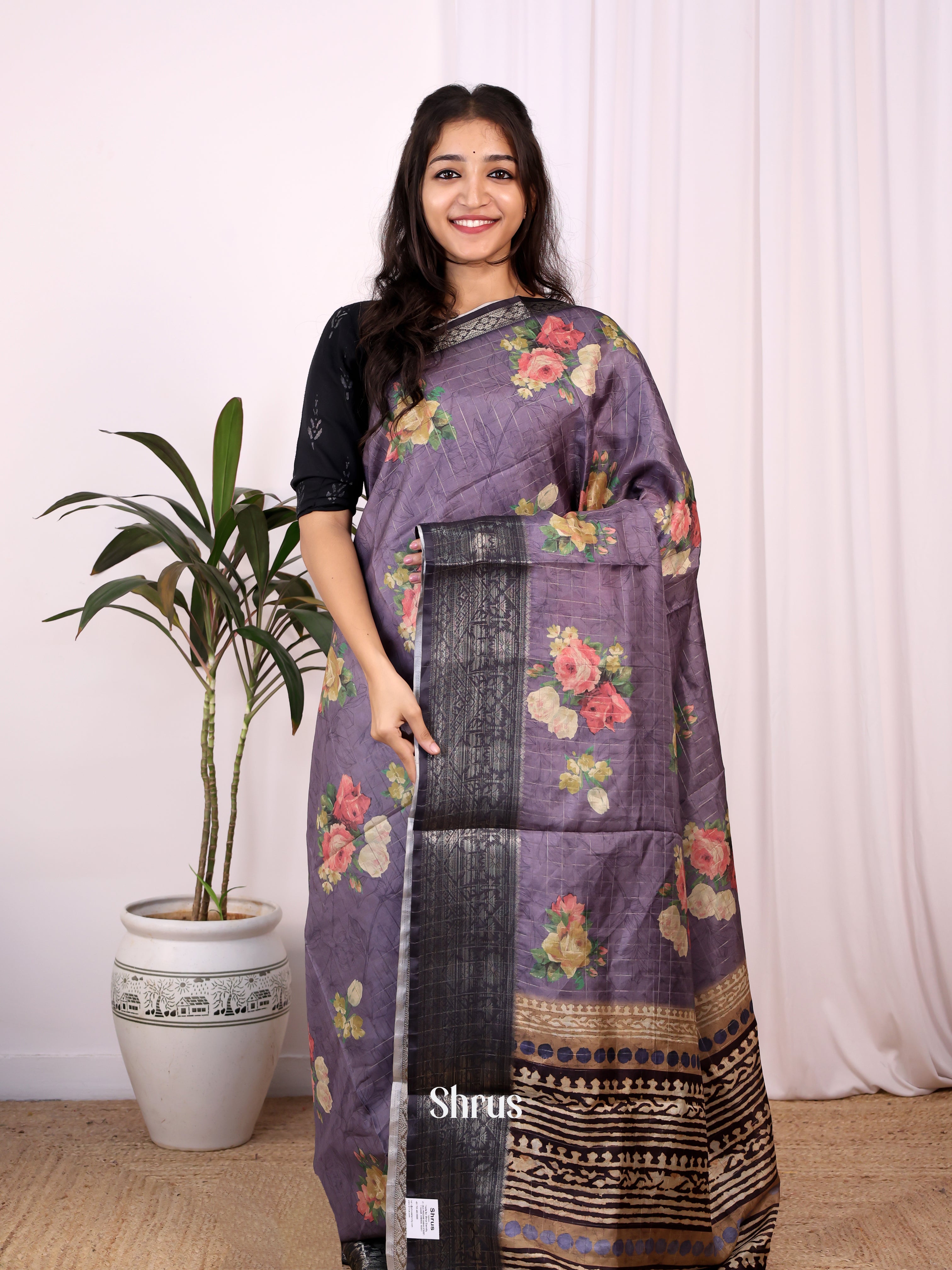 Pretty Purple Semi Dola silk Saree features exquisite floral prints , zari chceks and is highlighted by a contrast zari border. The contrast printed pallu adds an elegant touch, while the matching blouse gives a fashionable twist to this magnificent garment