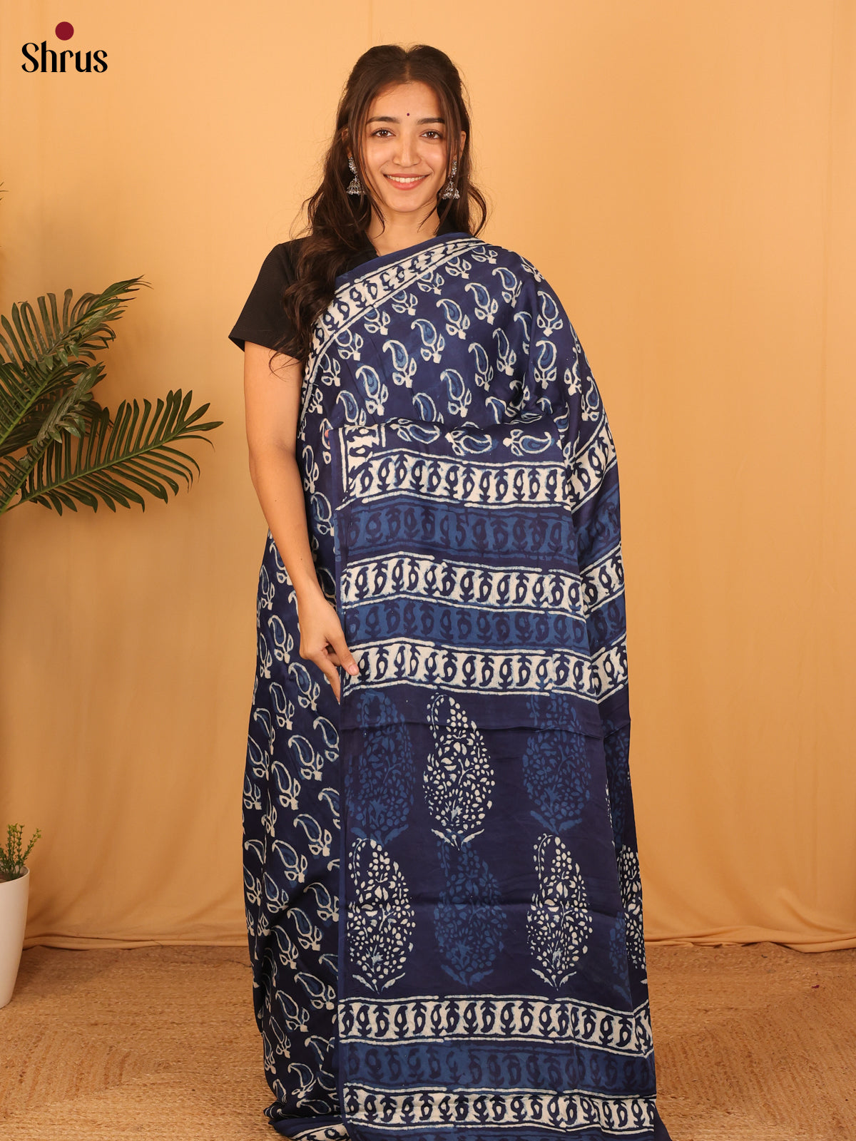Pretty Blue Modal Silk Saree with hand block printing that adds a touch of charm. The self-printed Border & pallu making it a perfect complement to the saree. Paired with a self Printed blouse, this saree is sure to enchant.