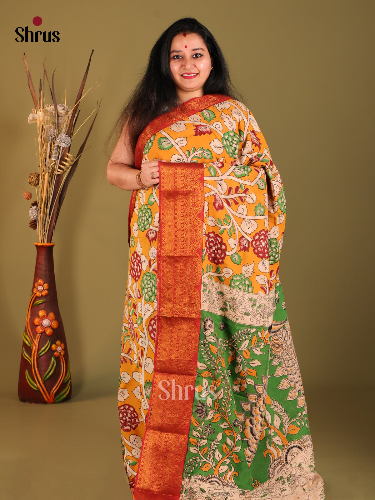 Mustardy Green & Green- Digital Printed Mangalagiri silkcotton Saree