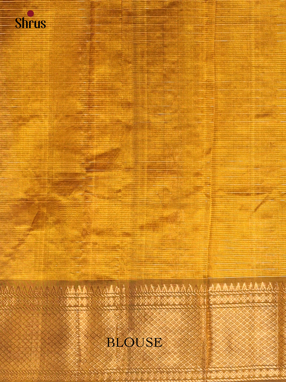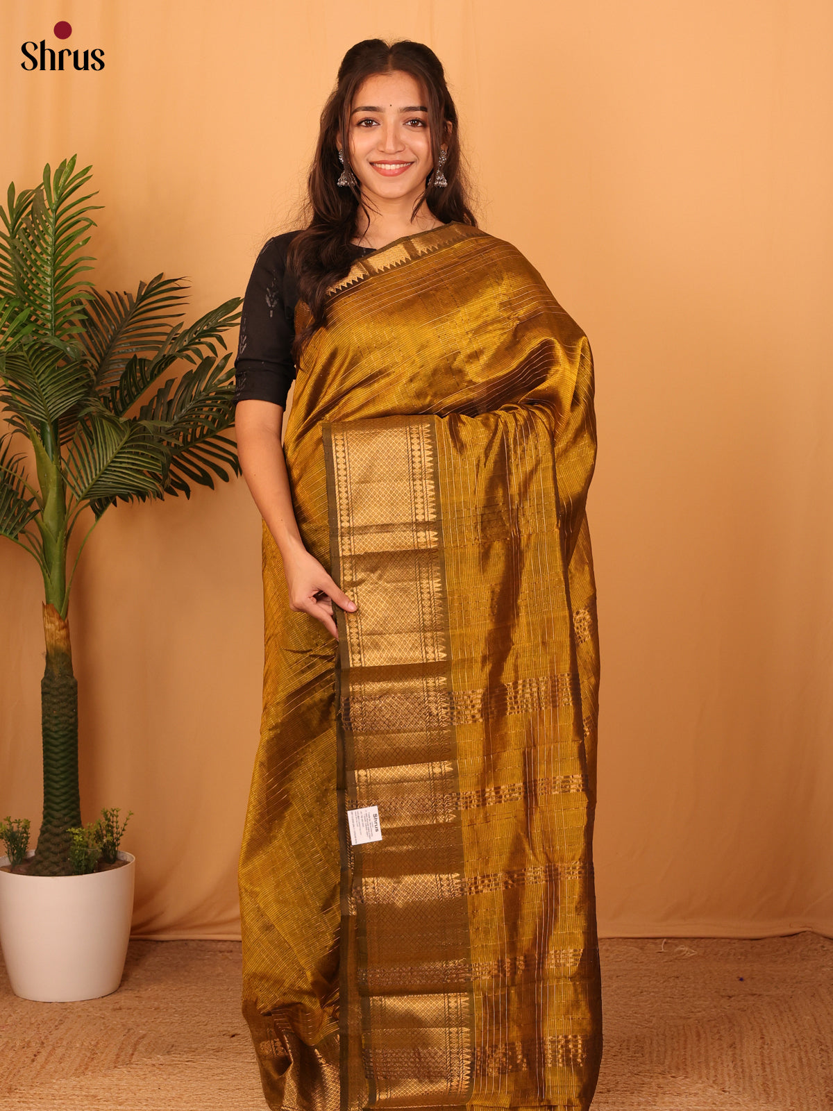 Elegant Mehandi Mangalagiri Silk Cotton saree enchants with zari checks on the body and bounded with self zari border. The self zari striped pallu adds a touch of elegance. Includes a matching self blouse with a zari border for a flawless fit.