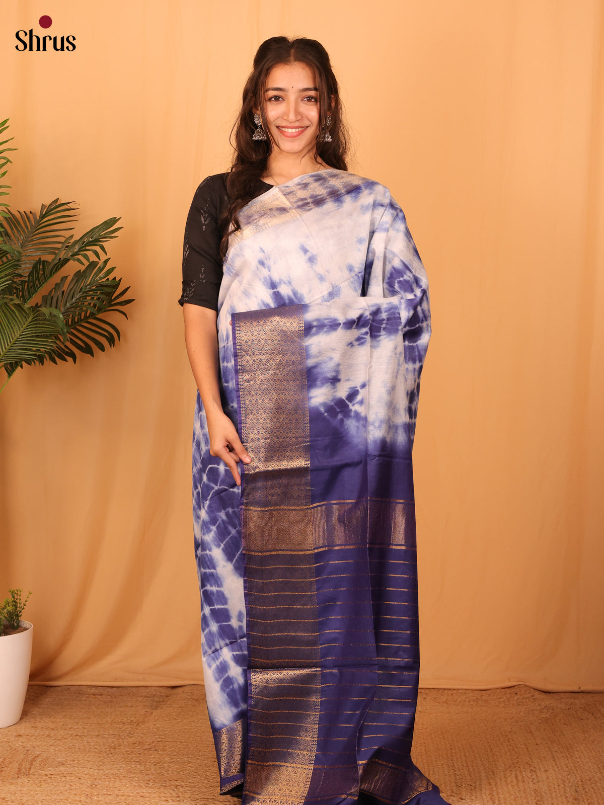 Cream & Violet- Shibori Saree