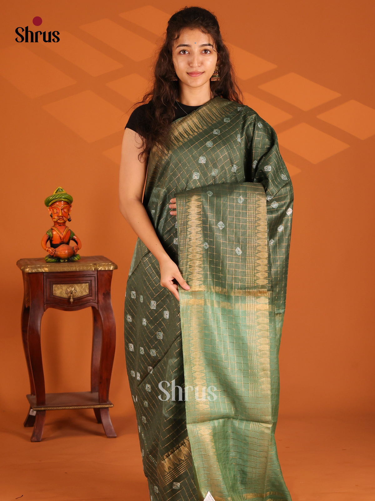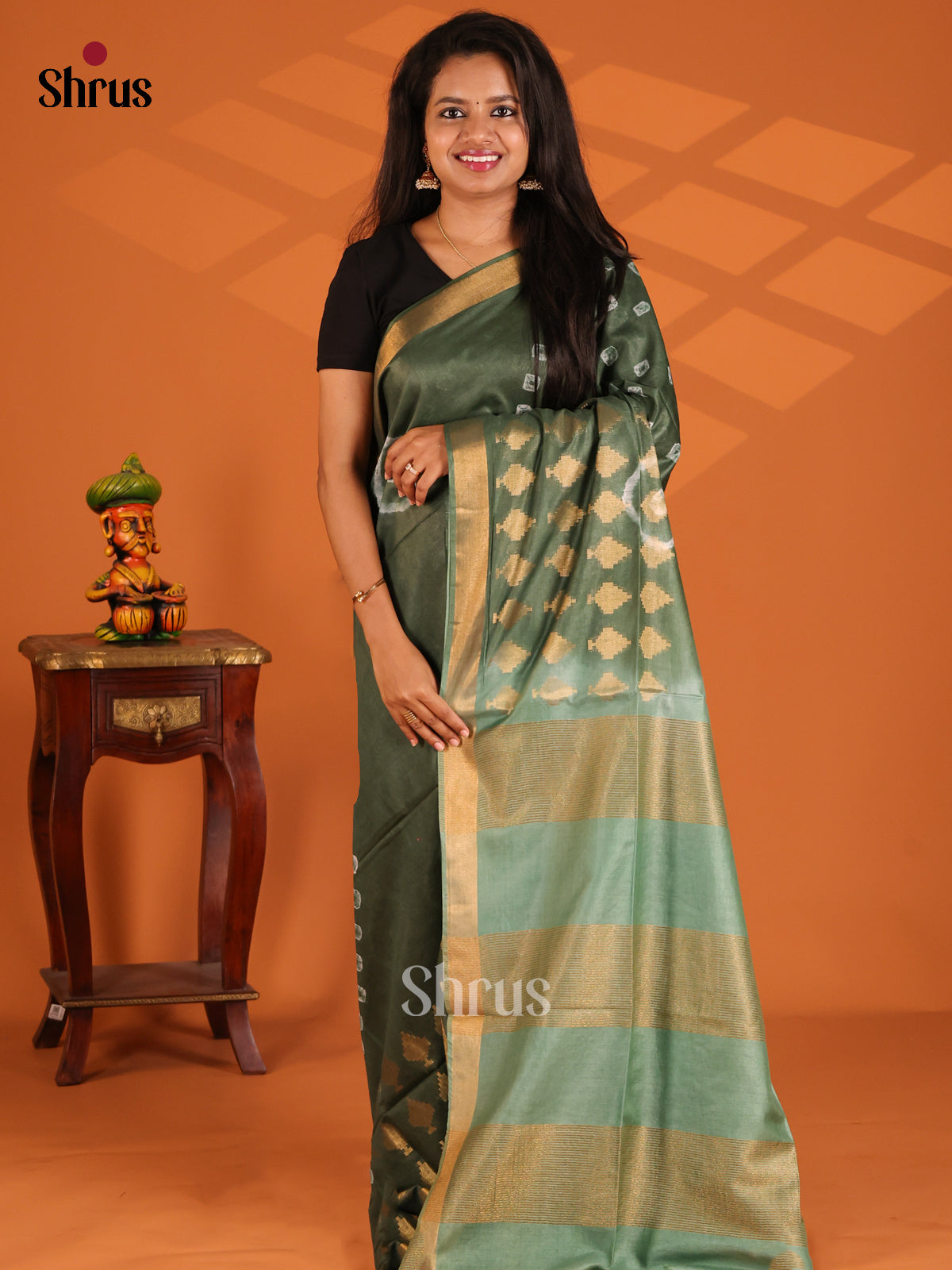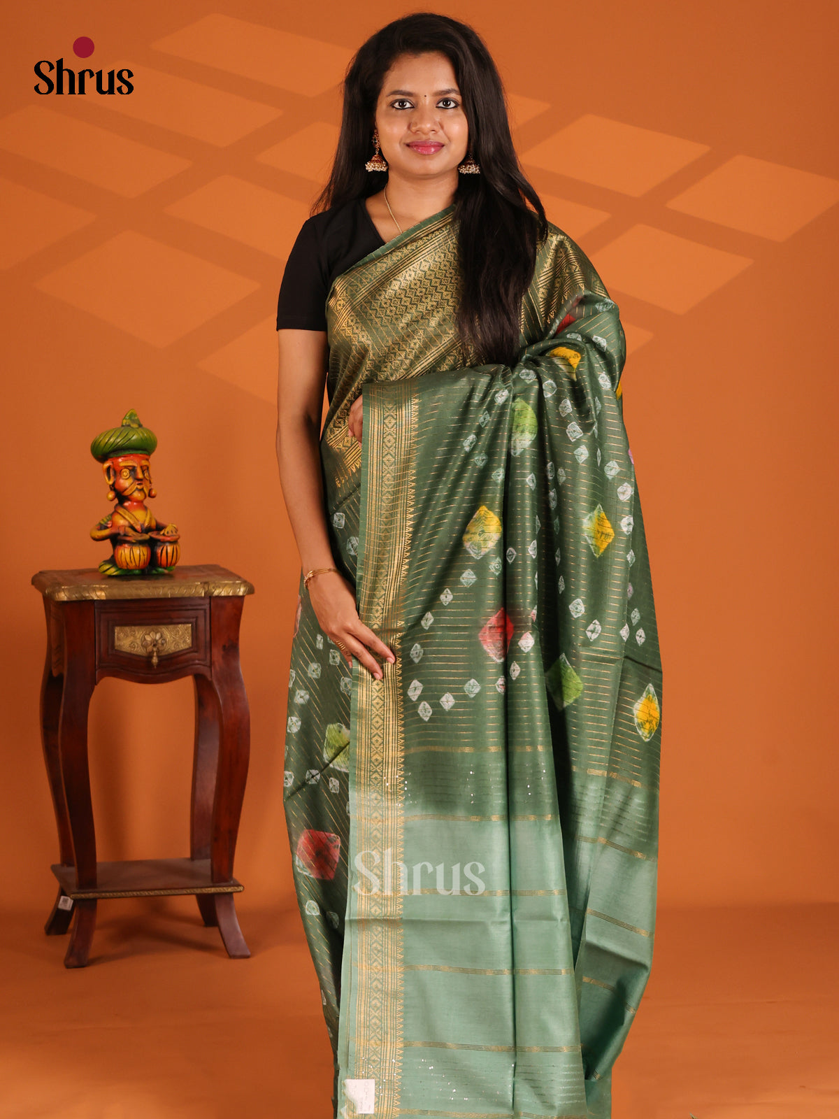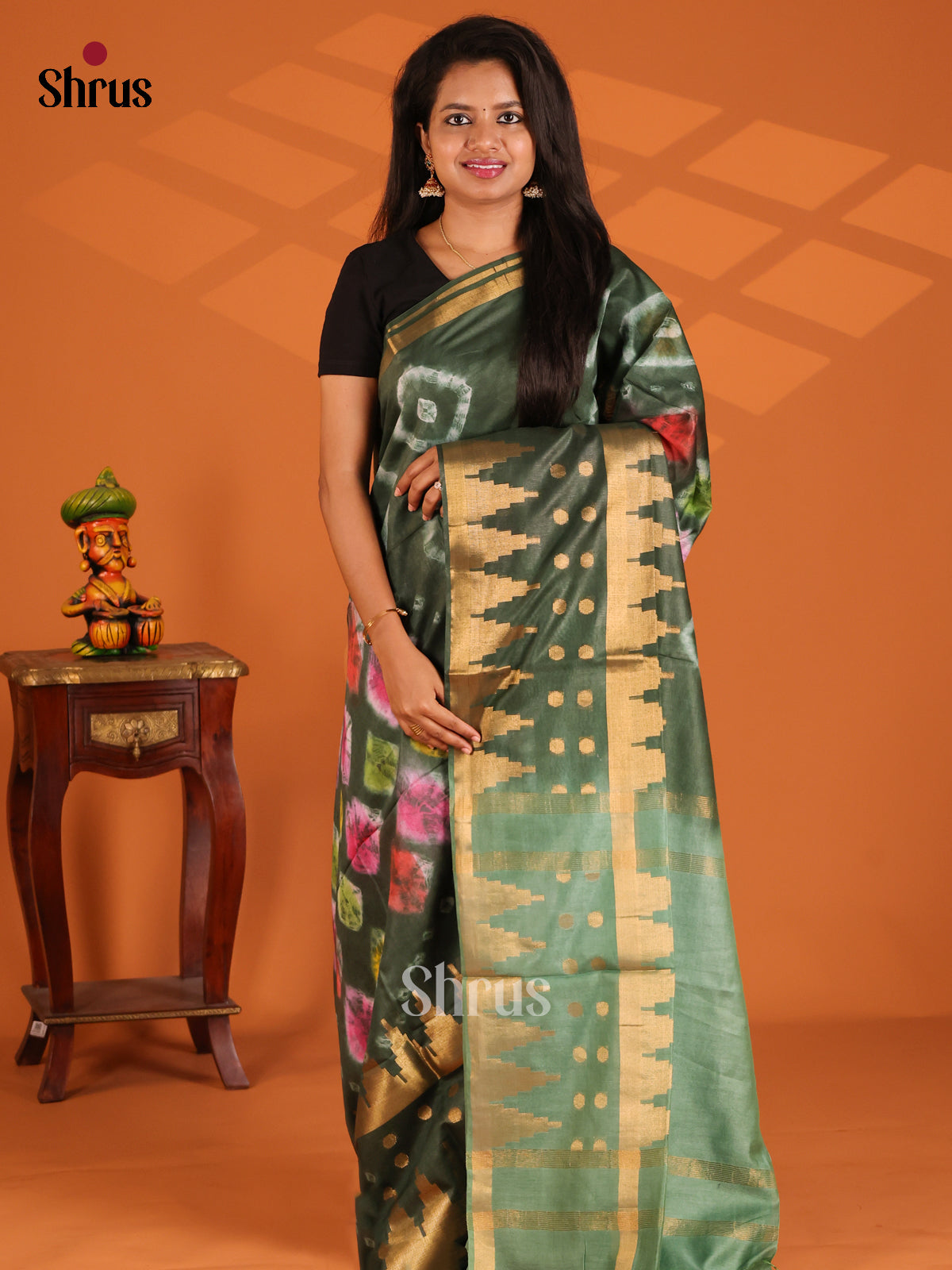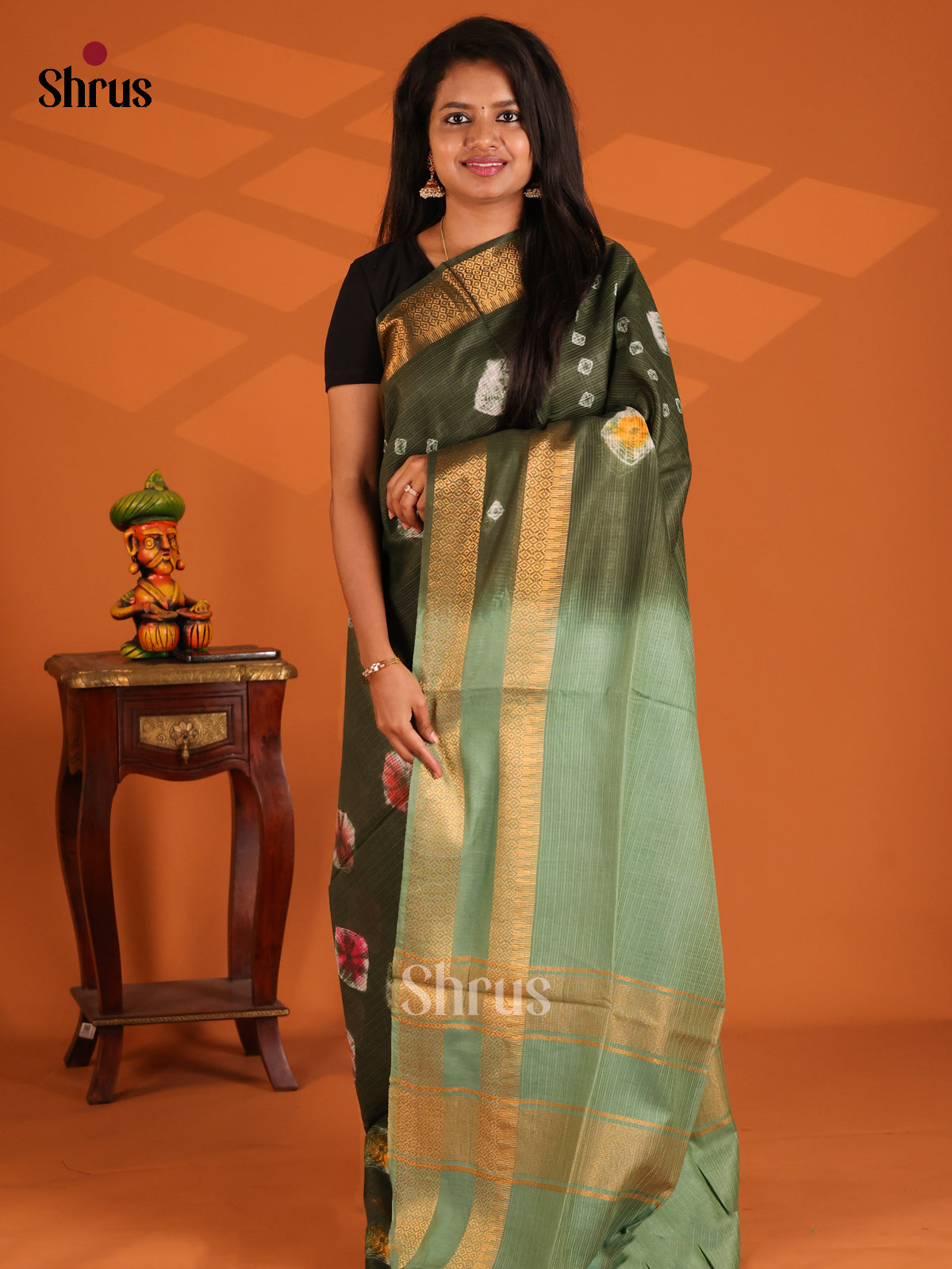 Green & Grey Green - Shibori Saree