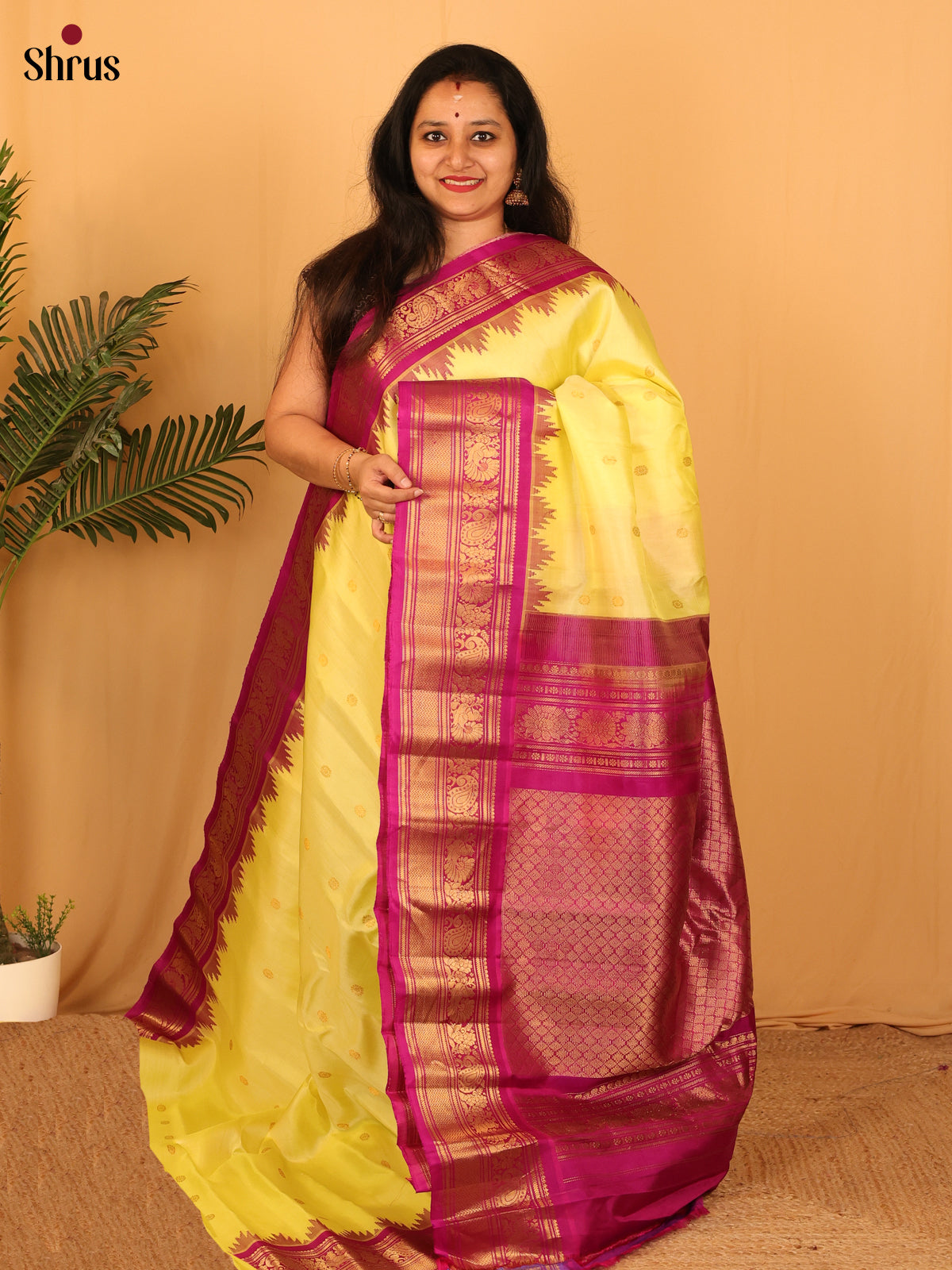 Lemon Yellow & Majenta- Gadwal silk Saree
