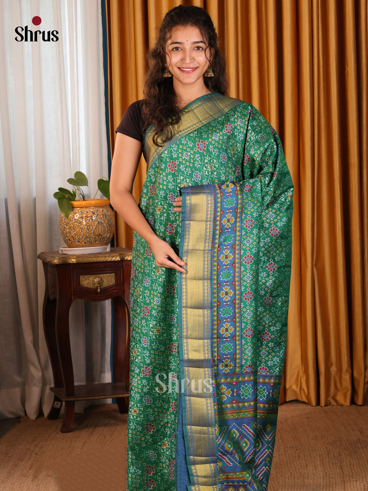 Green & Blue - Semi Patola Saree