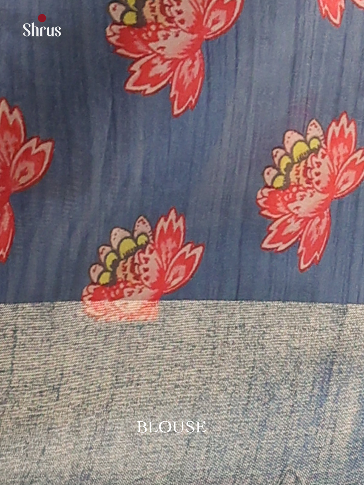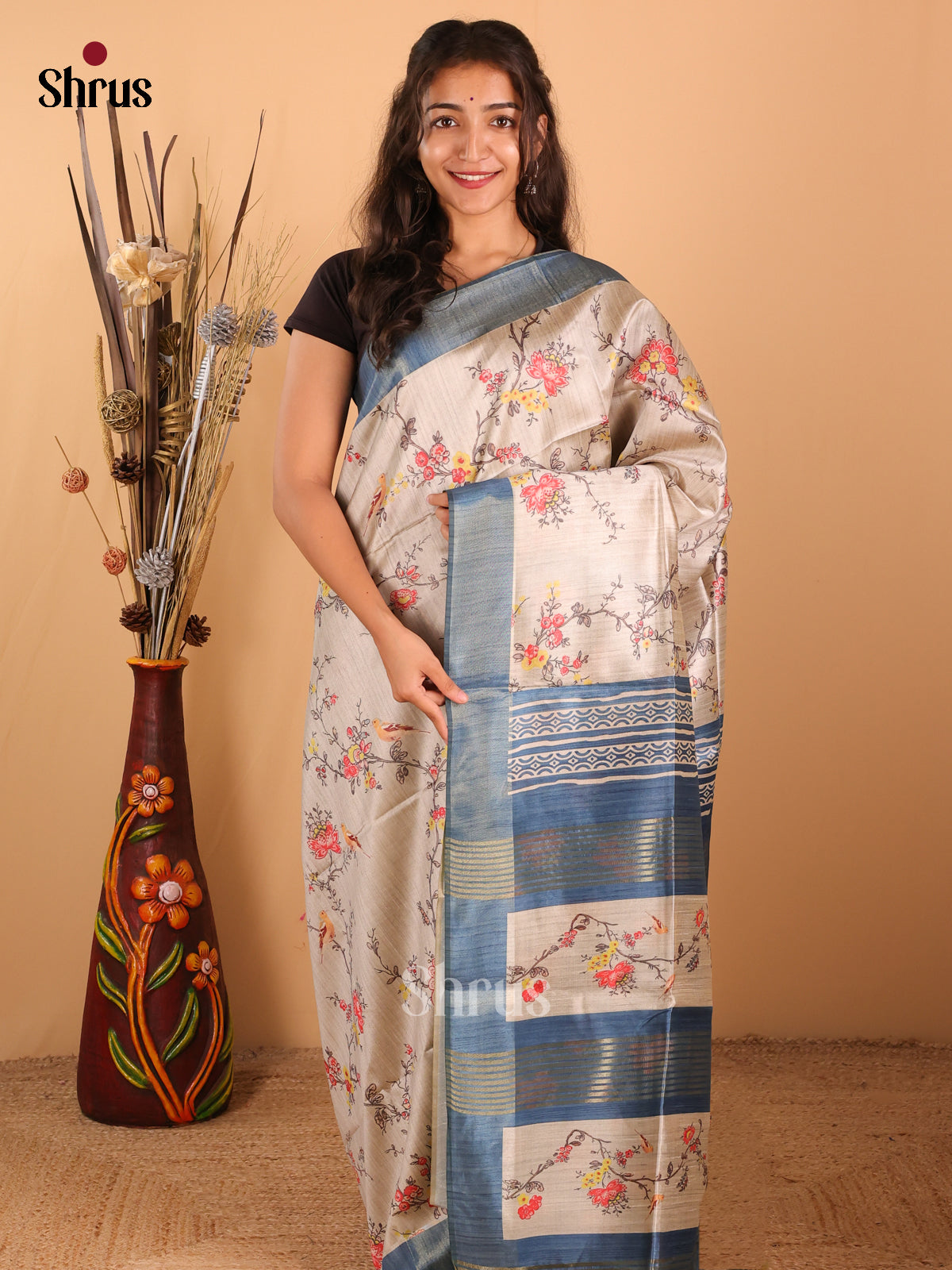 Light grey & Dark pastel blue - Champa Semitussar Saree - DCS11128