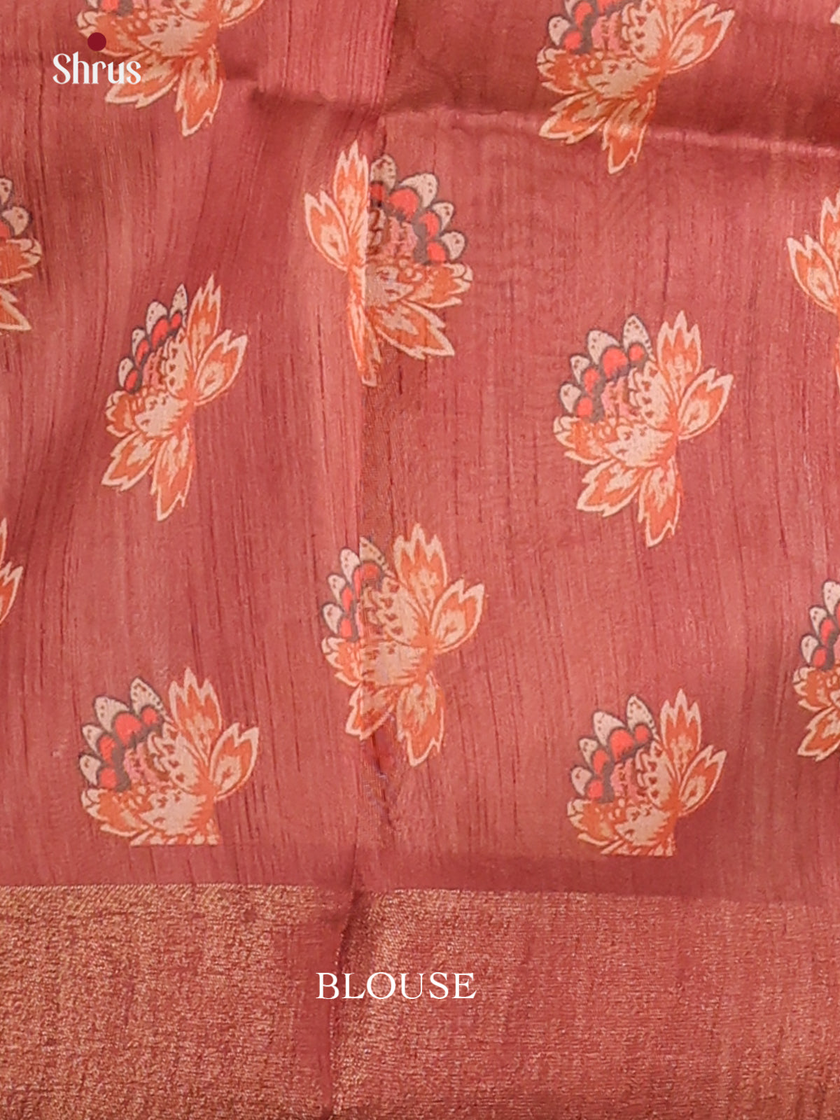 Peachish orange & Brown - Champa Semitussar Saree - DCS11130