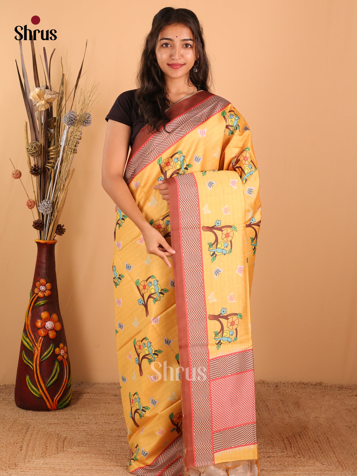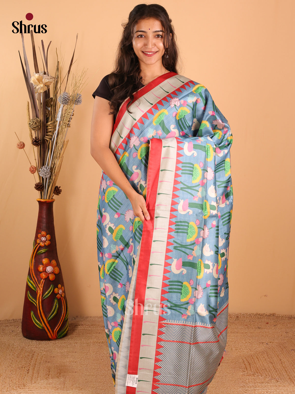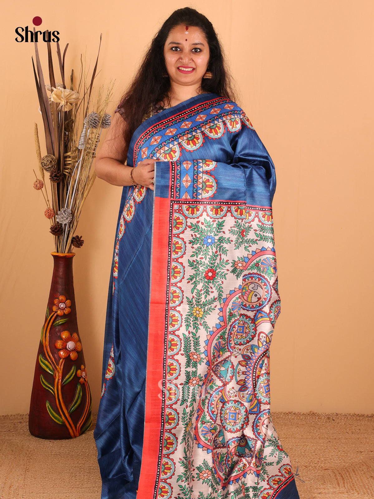Peacock blue & red - Champa Semi Tussar Saree - DCS11134