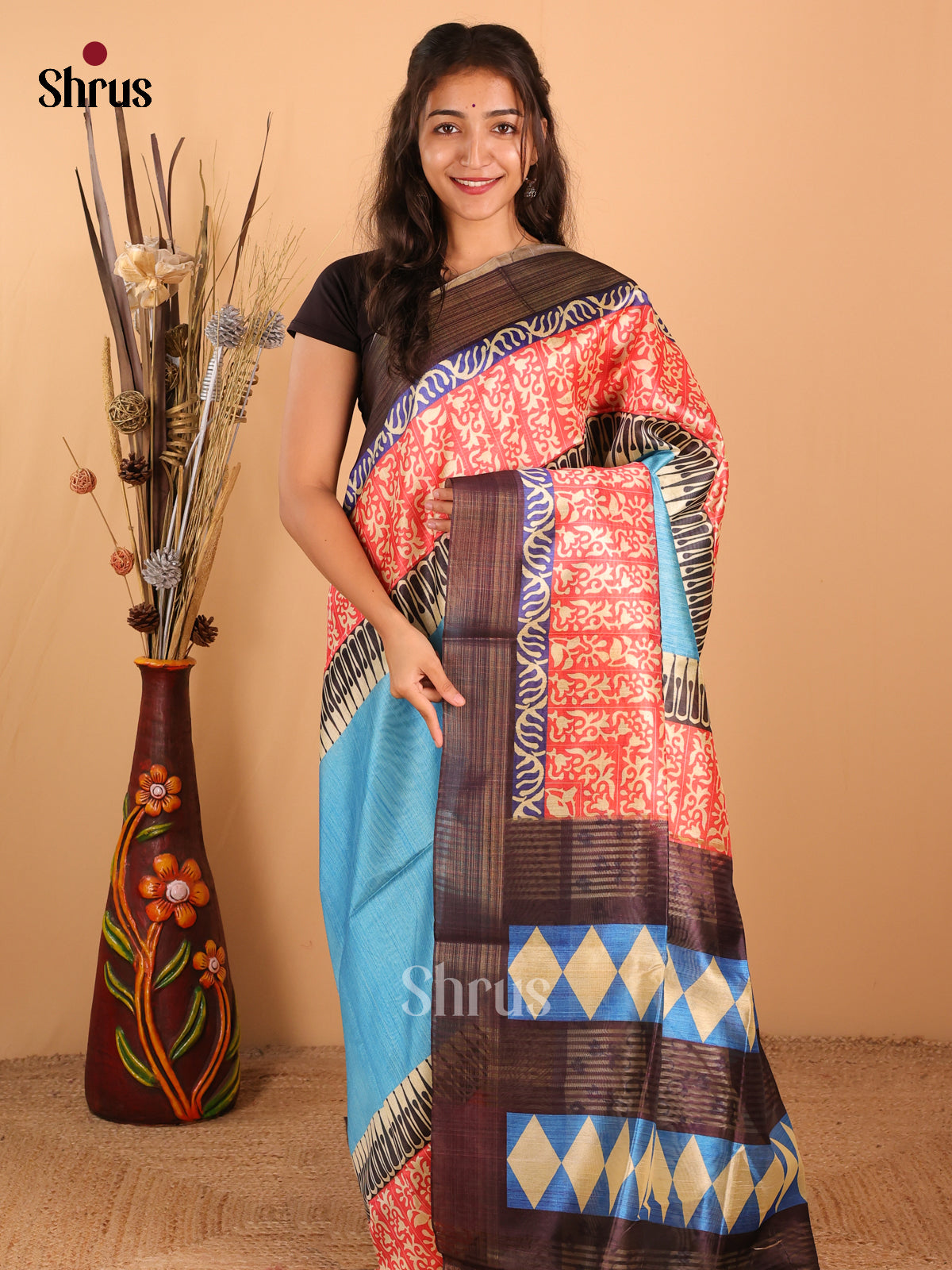 Sky blue & Dark Brown - Champa Semitussa Saree - DCS11153