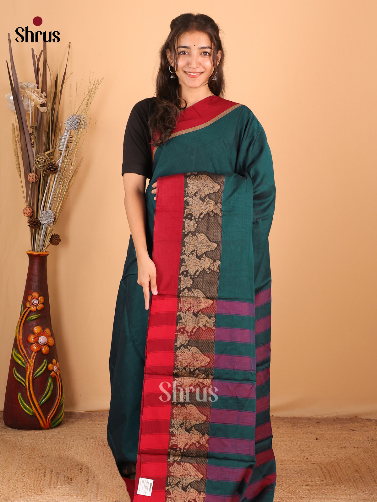 Peacock Blue & Red - Narayanpet Cotton Saree